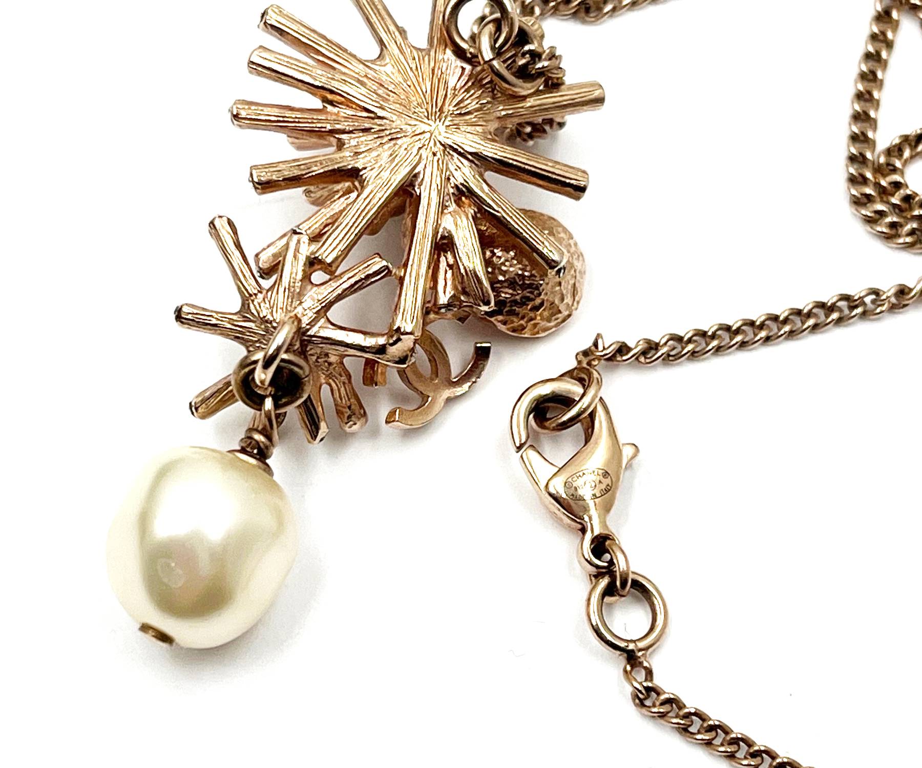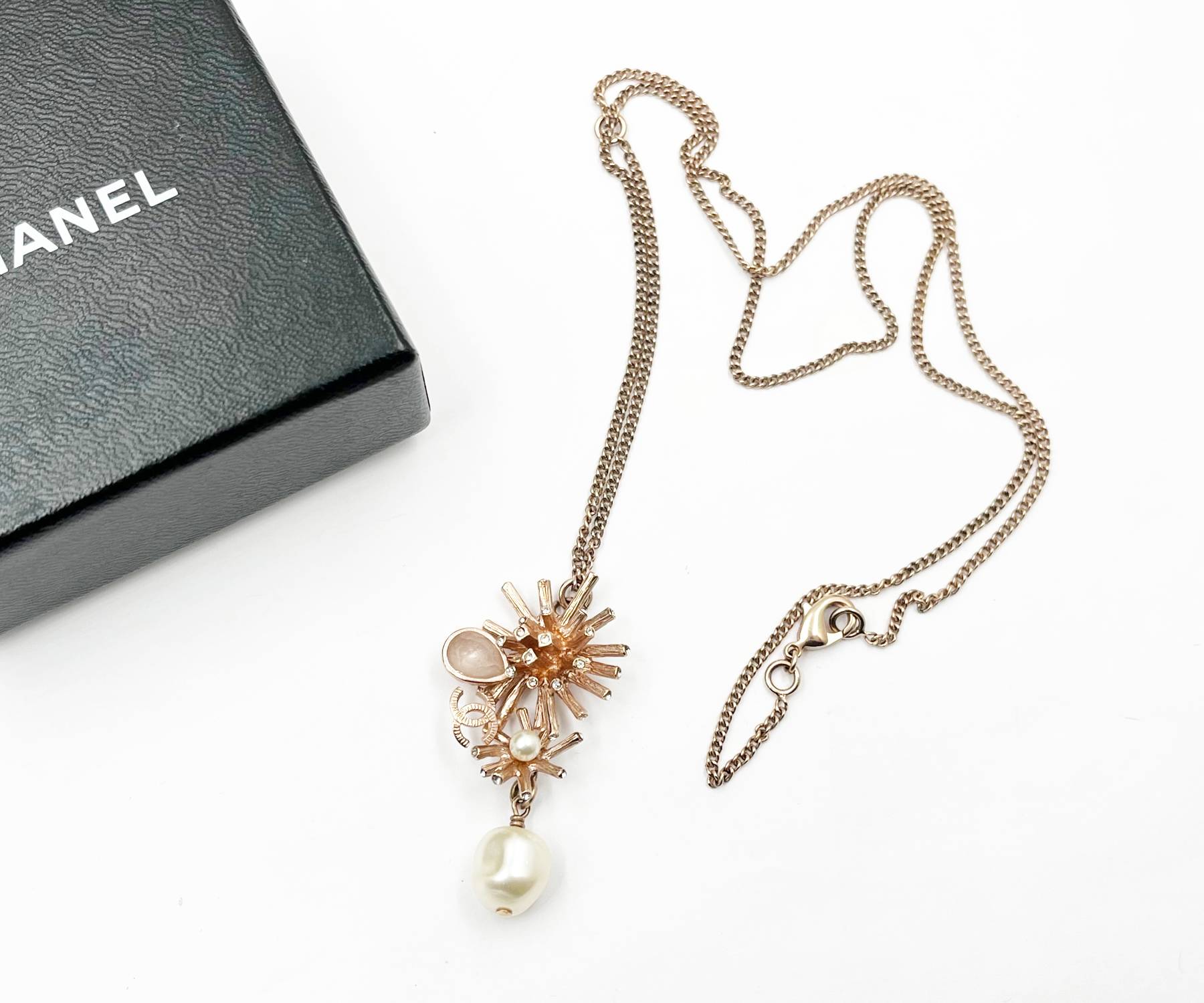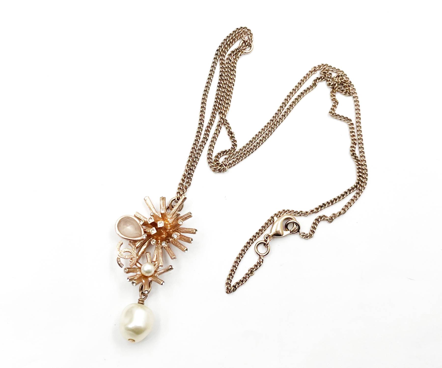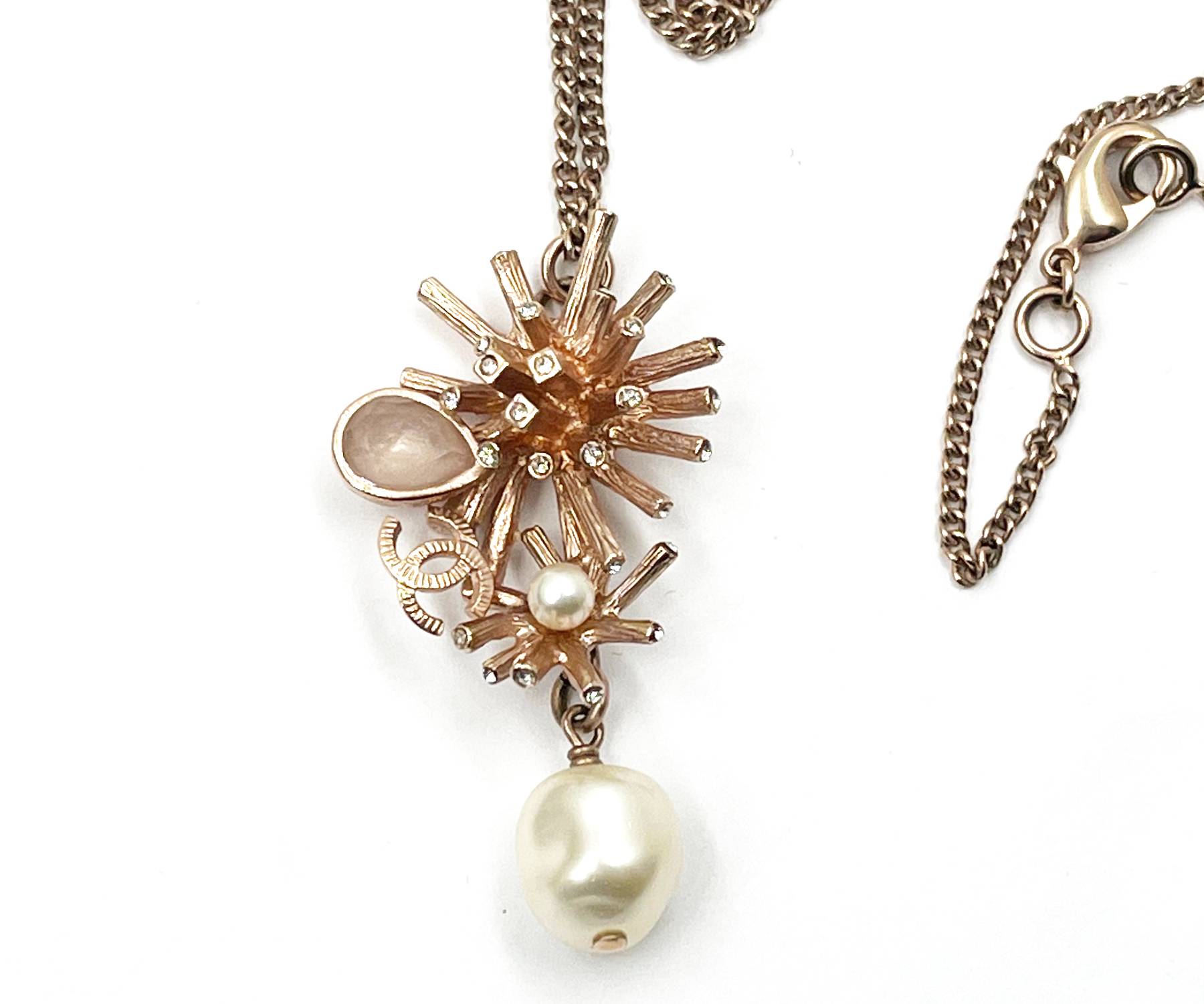 Chanel Rose Gold CC Coral Pearl Dangle Pendant Necklace
