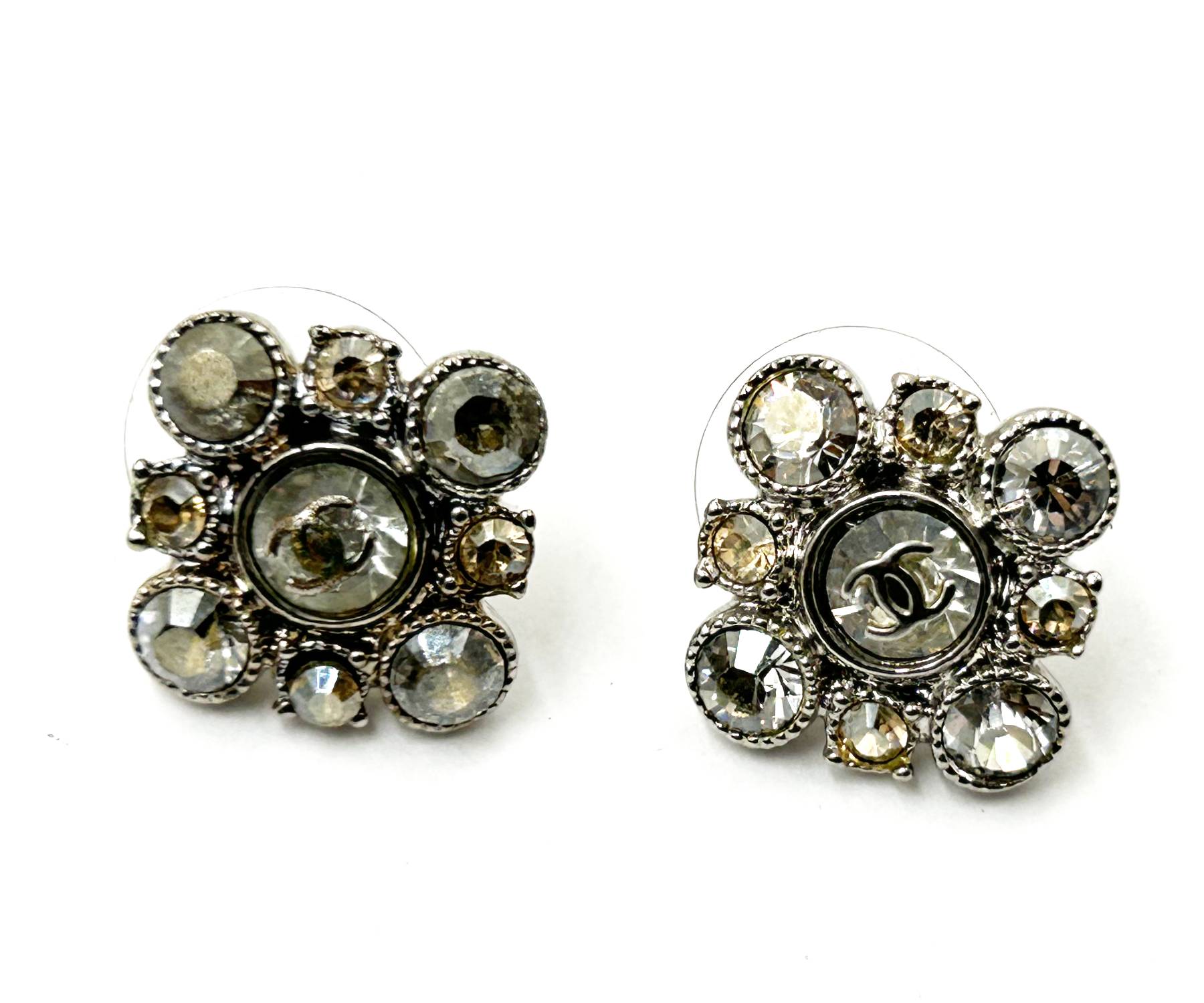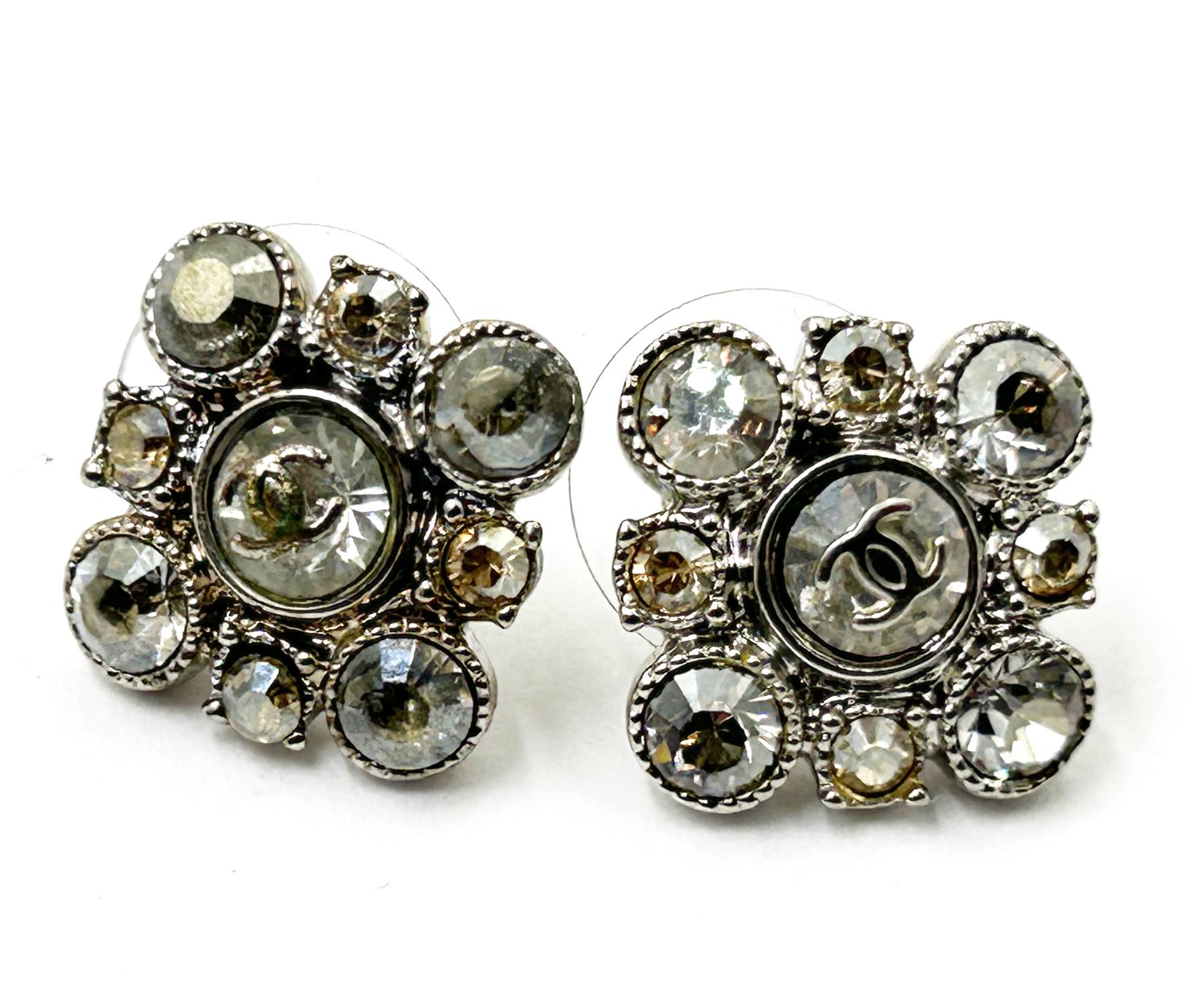 Chanel Silver CC Argyle Crystal Small Piercing Earrings