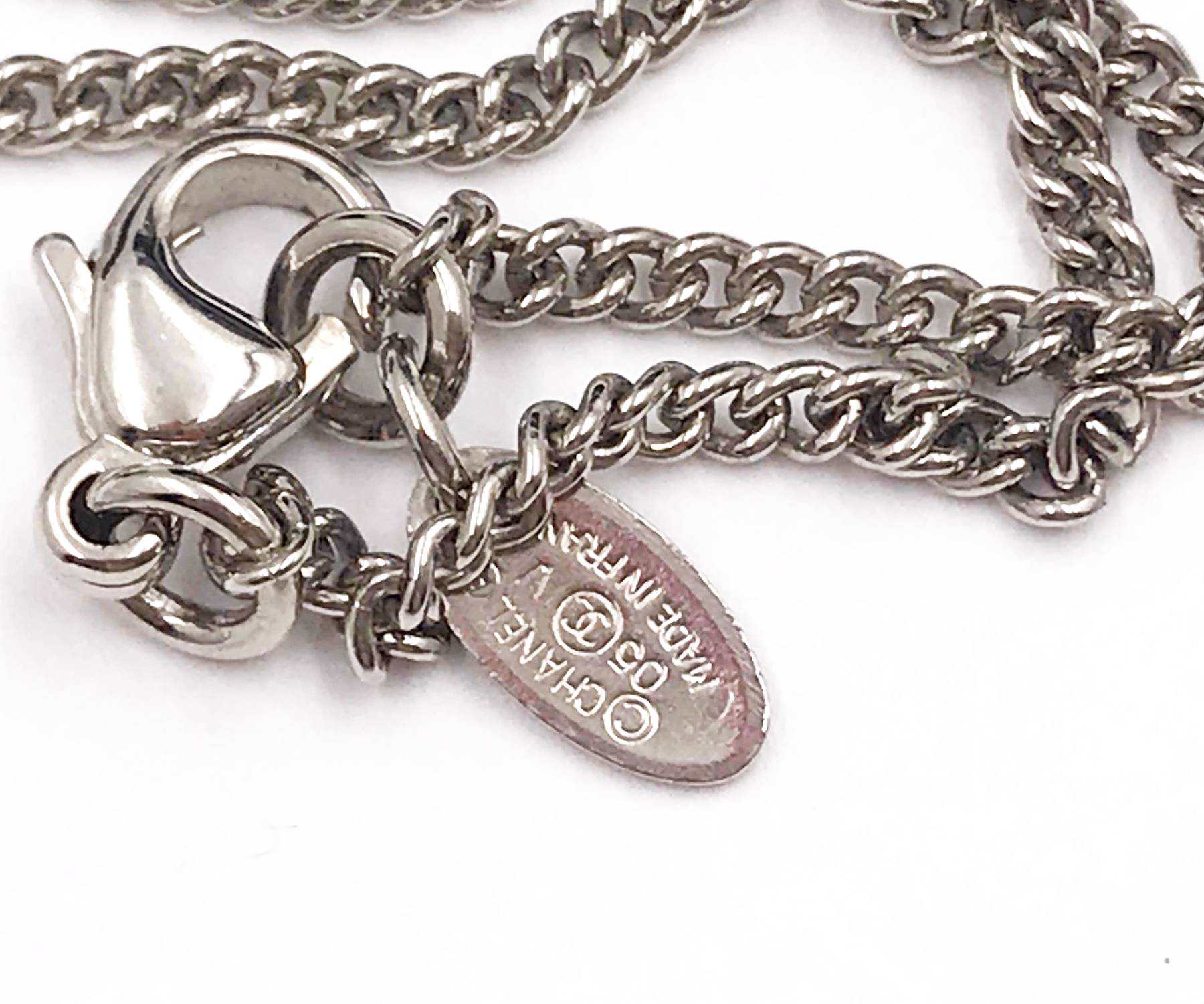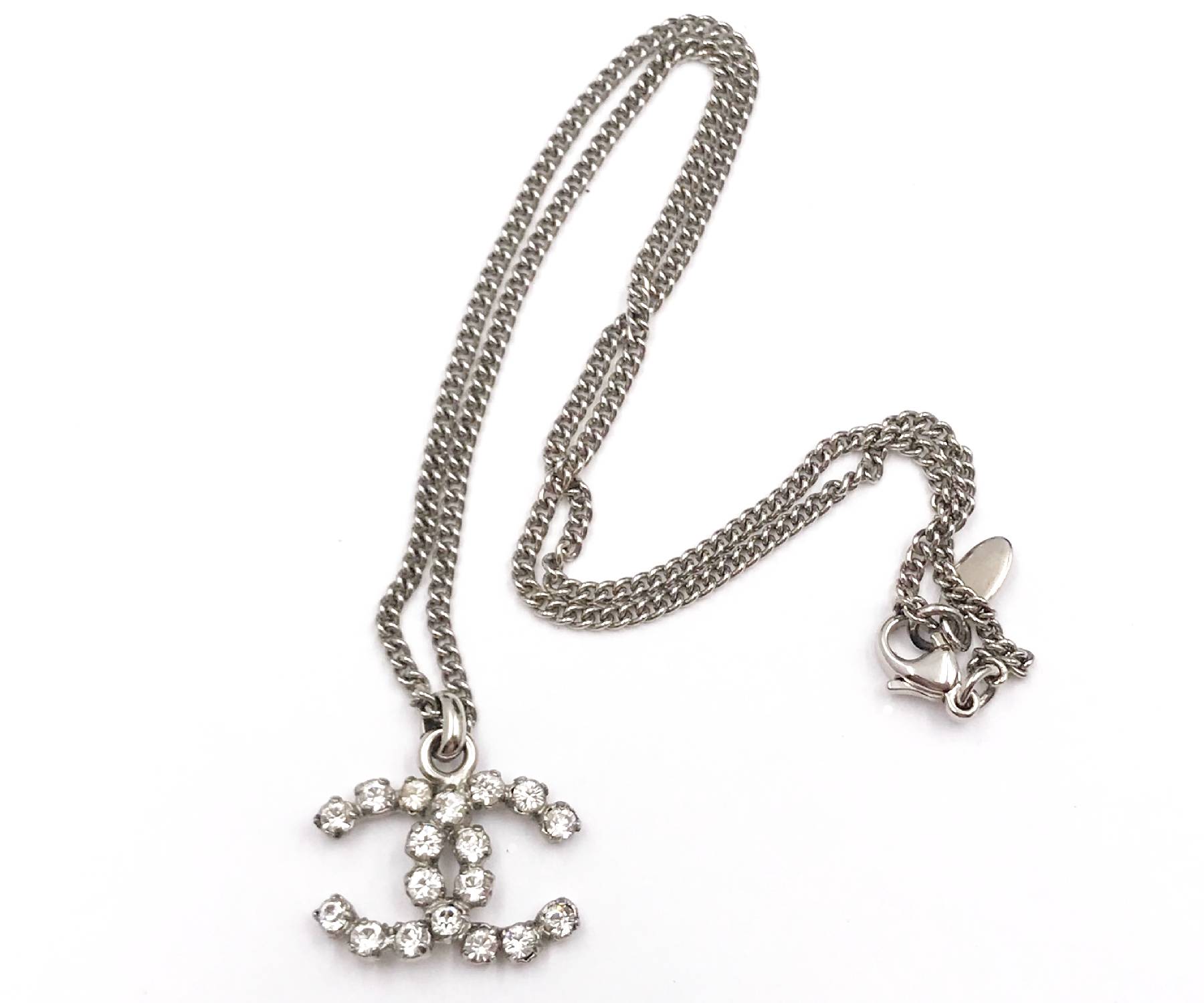 Chanel Silver CC Crystal Rocky Pendant Necklace