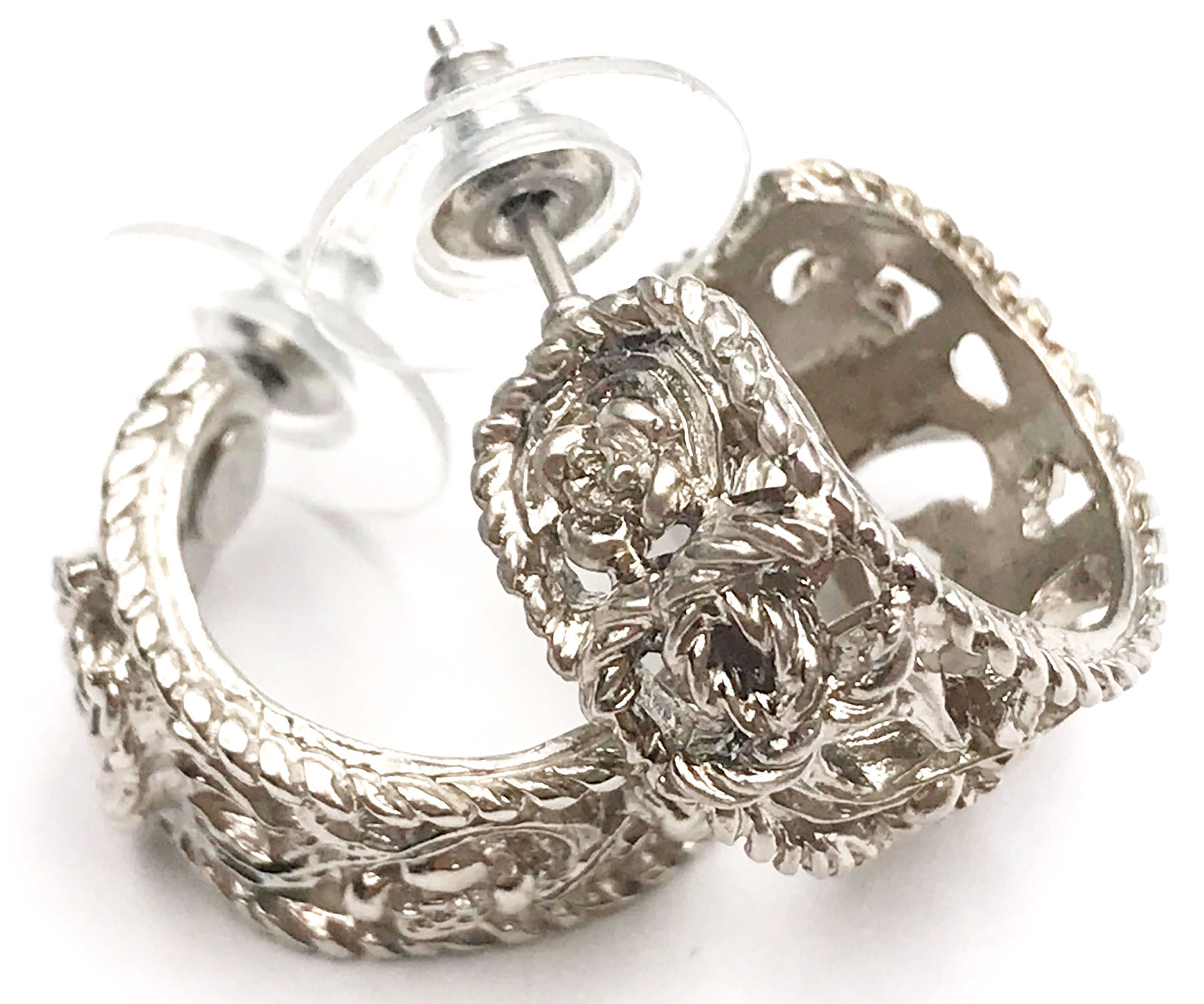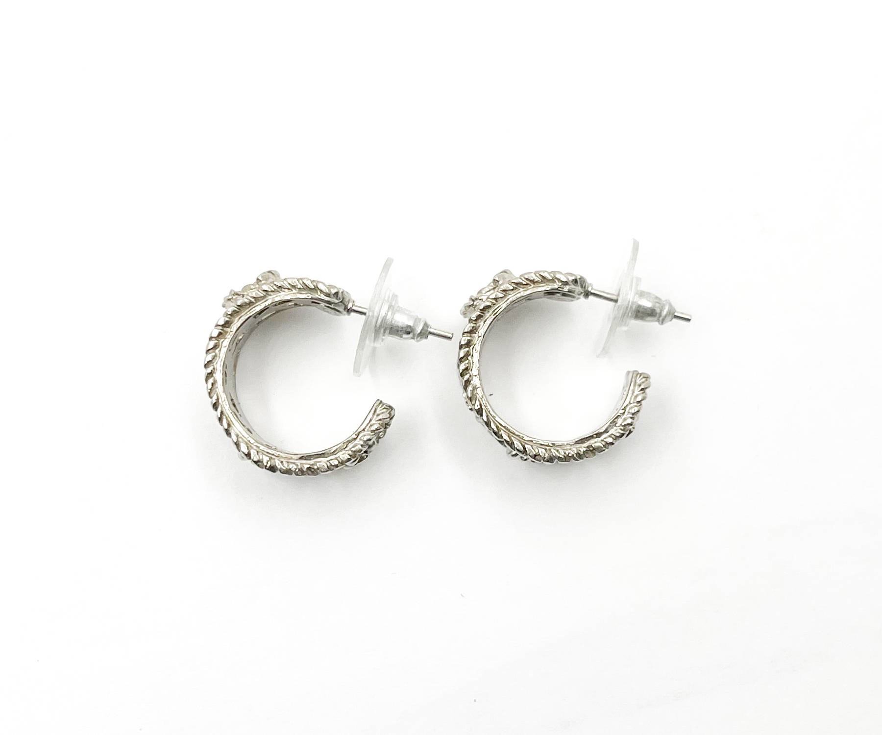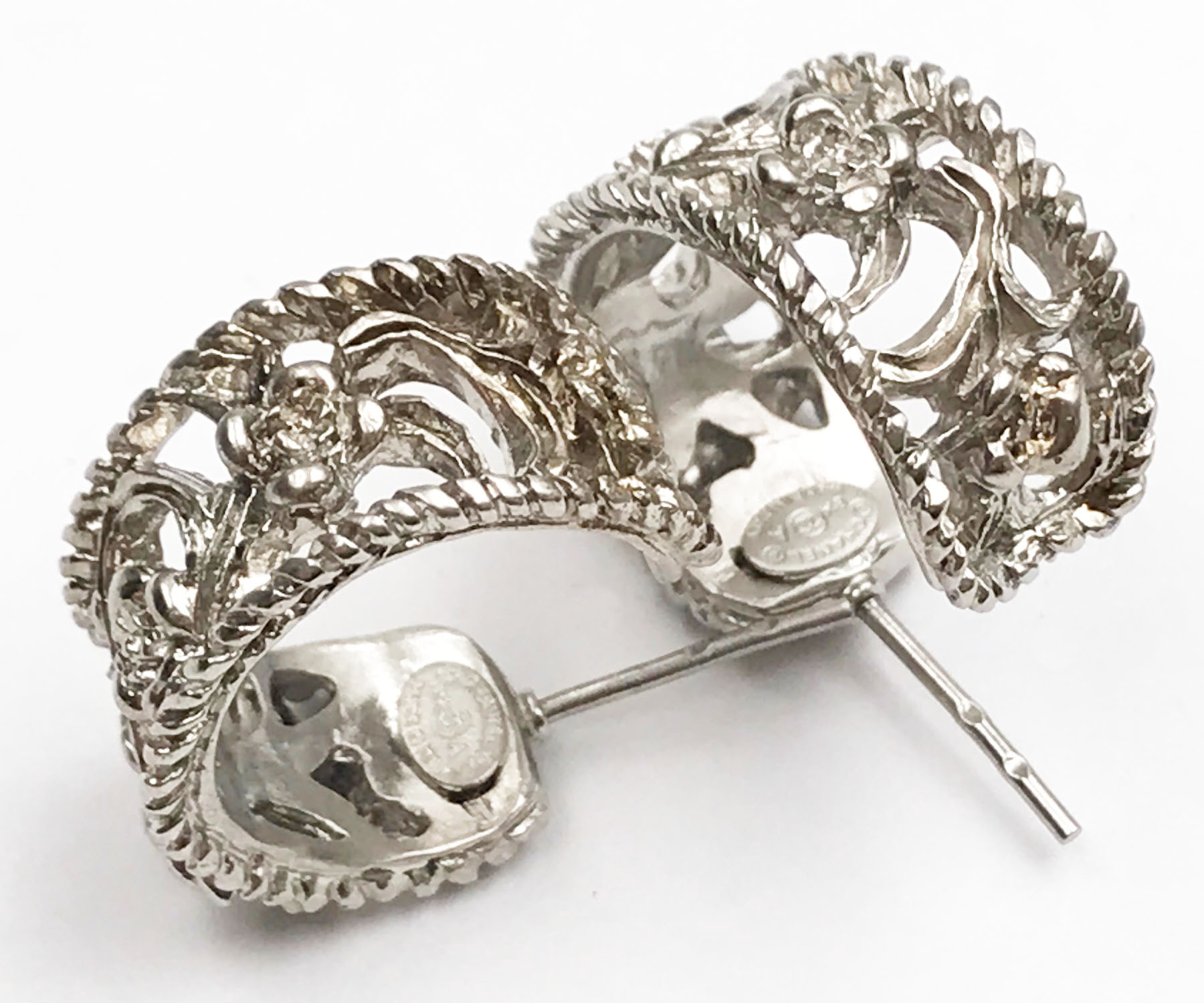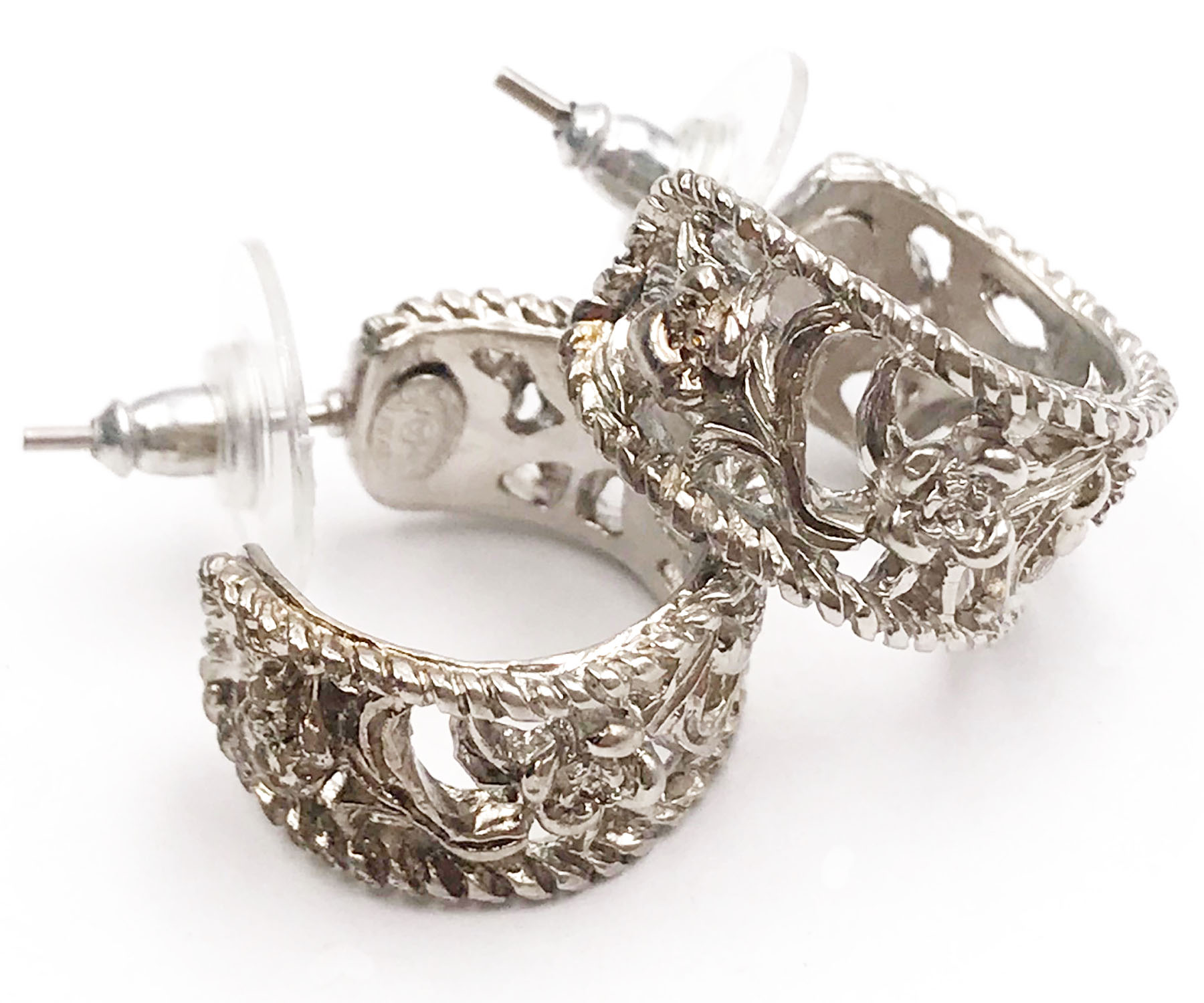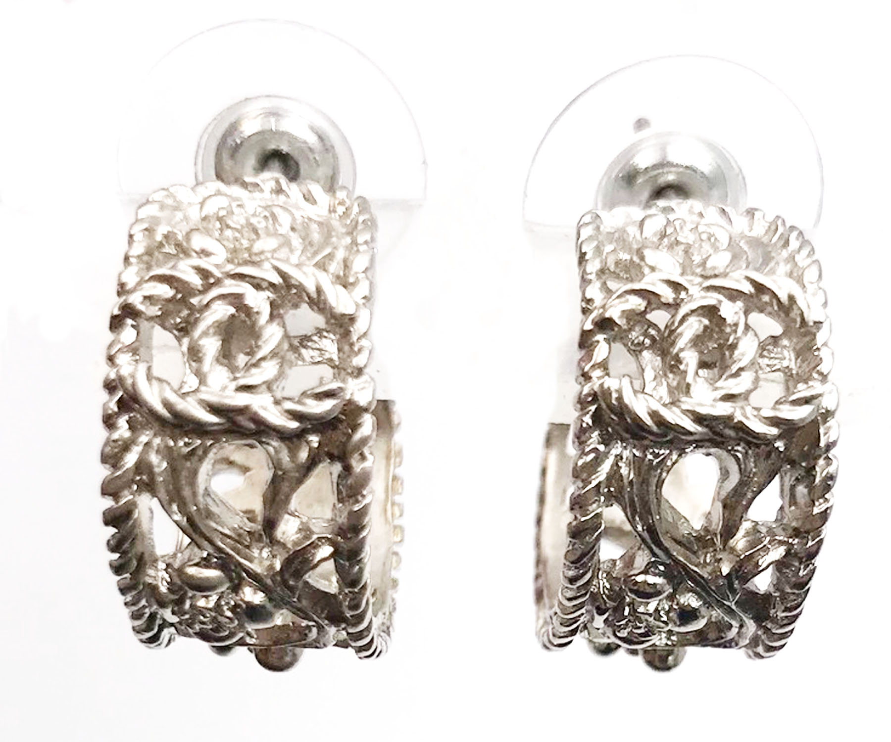 Chanel Silver CC Filigree Cutout Hoop Piercing Earrings