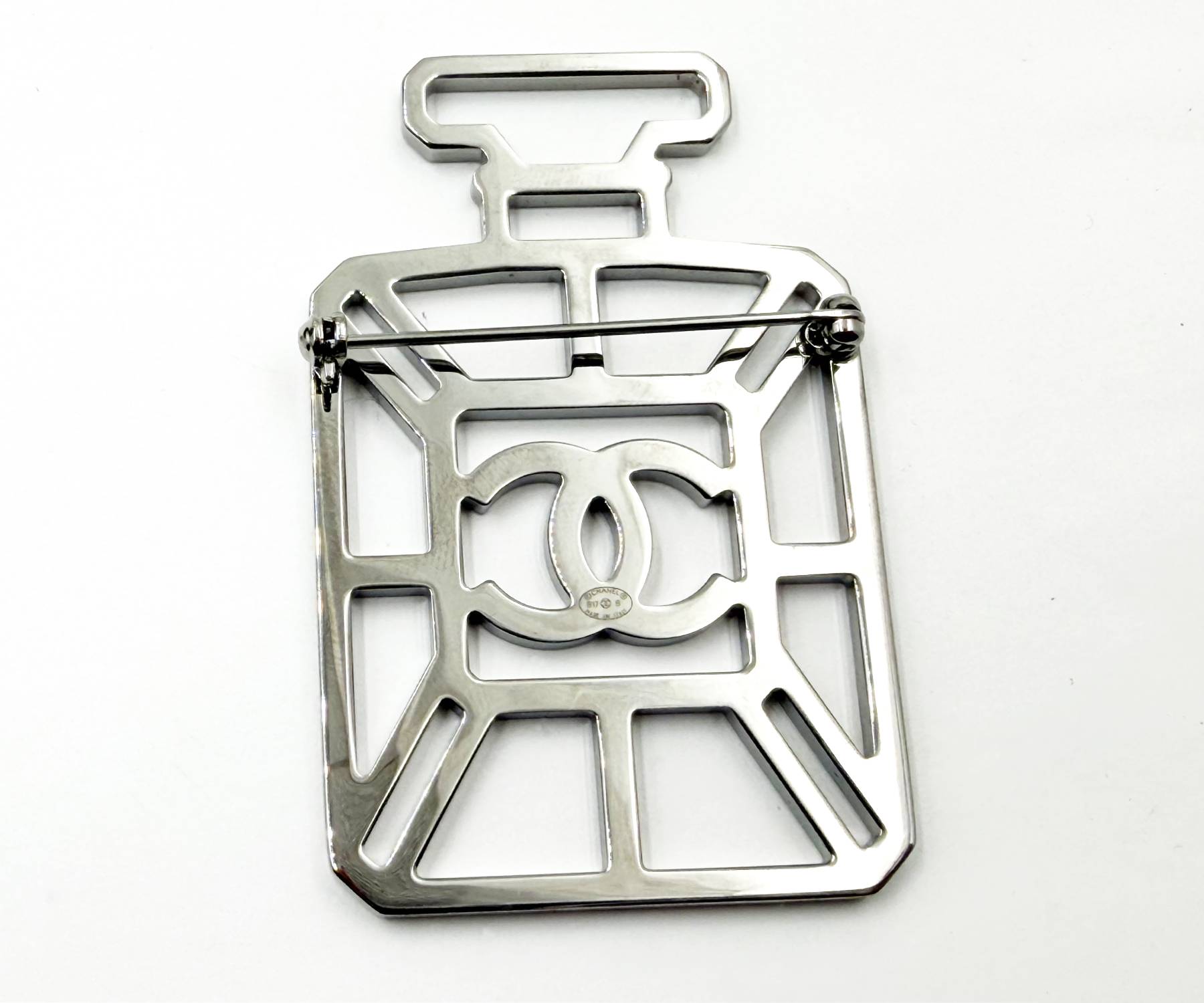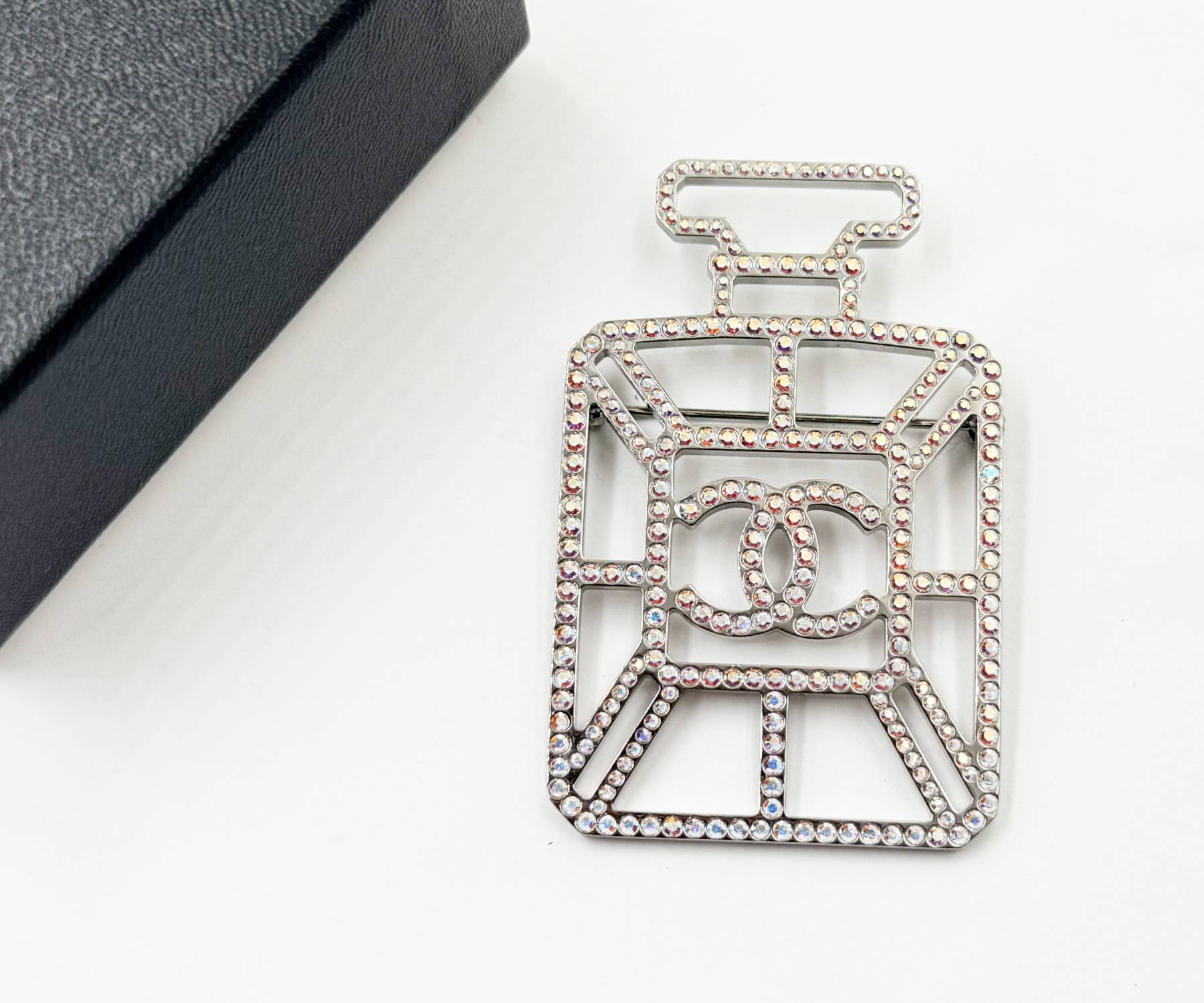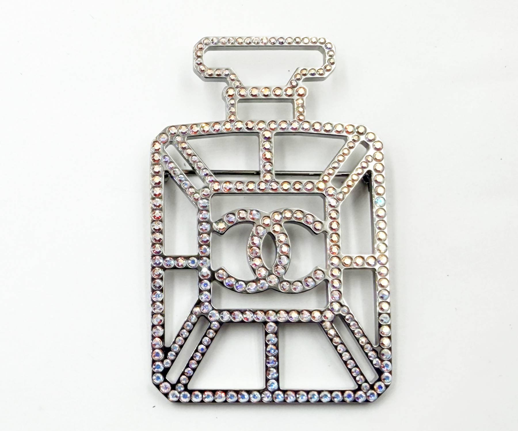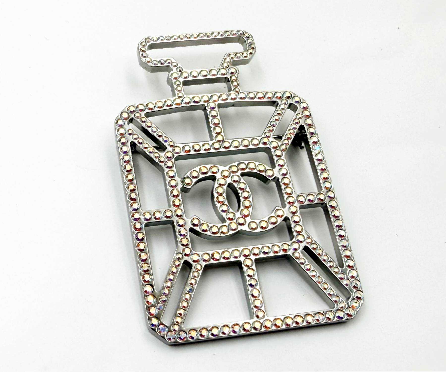 Chanel Silver CC Iridescent Crystal Large Bottle Brooch