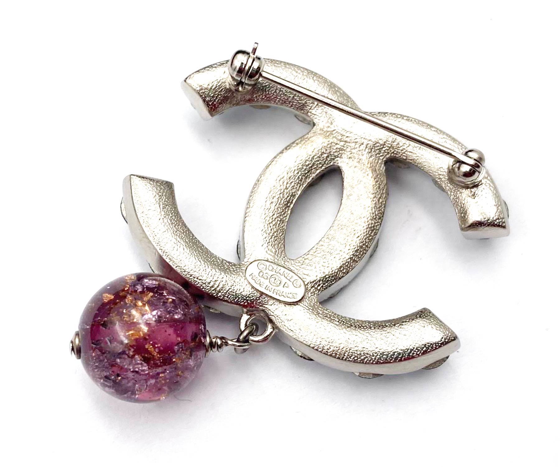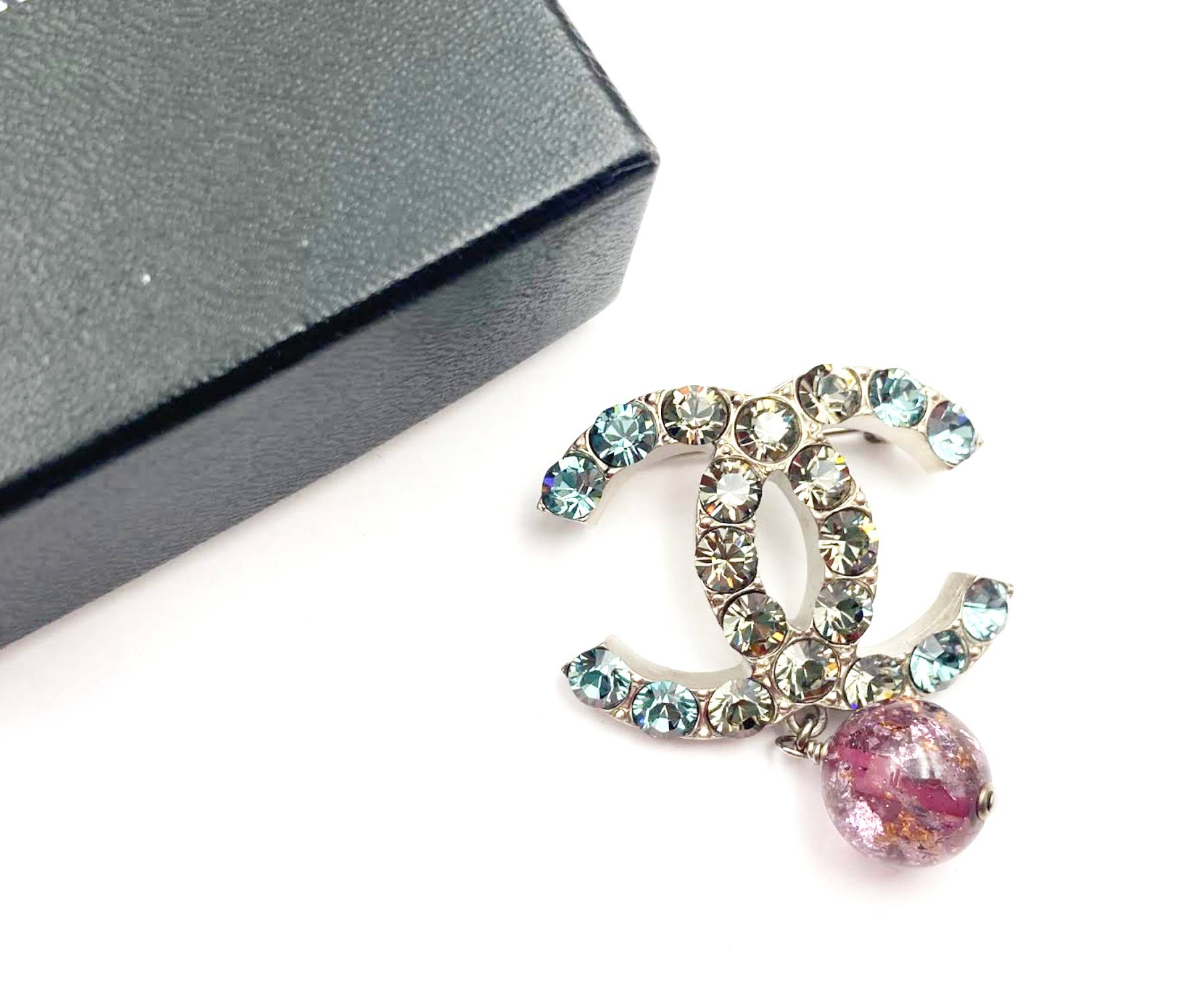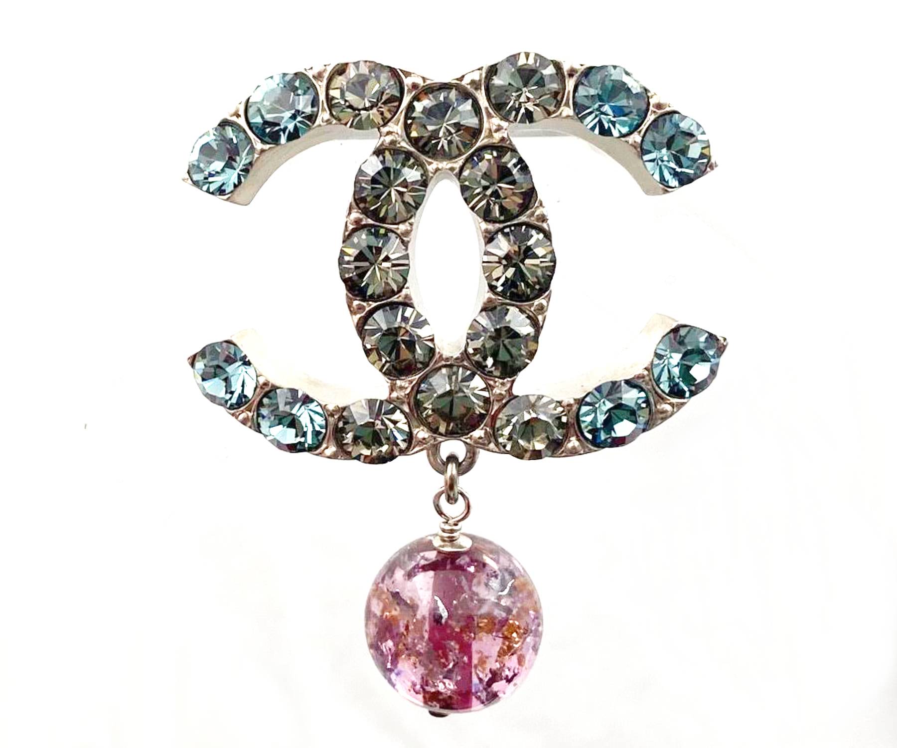 Chanel Silver CC Turquoise Silver Plum Crystal Brooch