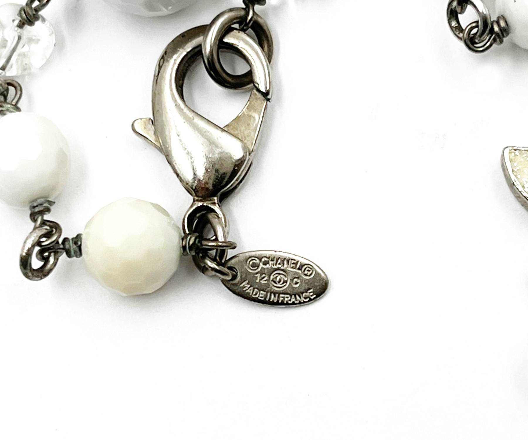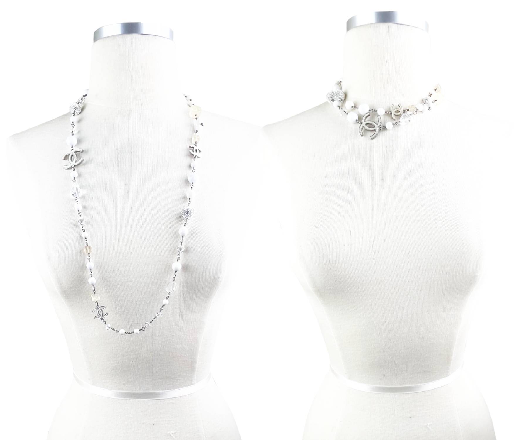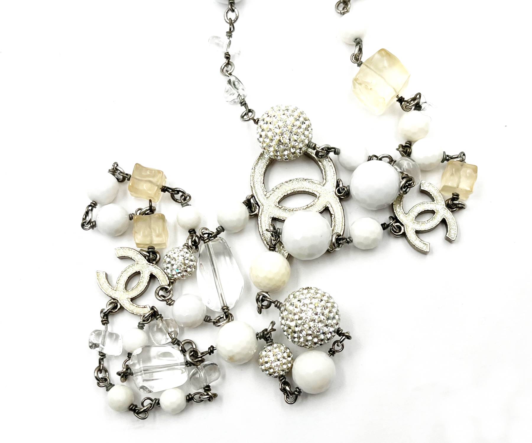 Chanel Silver CC White Iceberg Crystal Ball Pearl Necklace