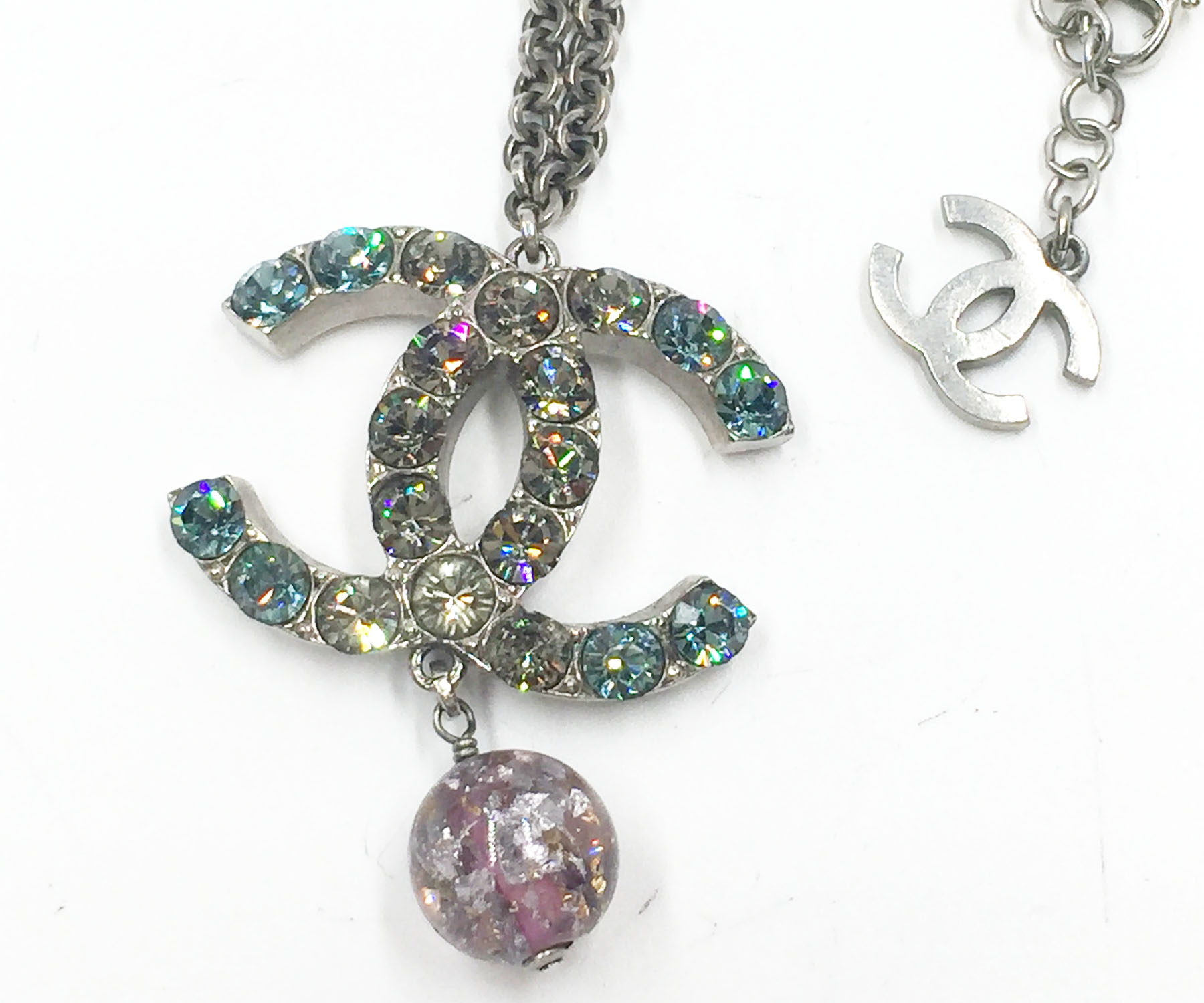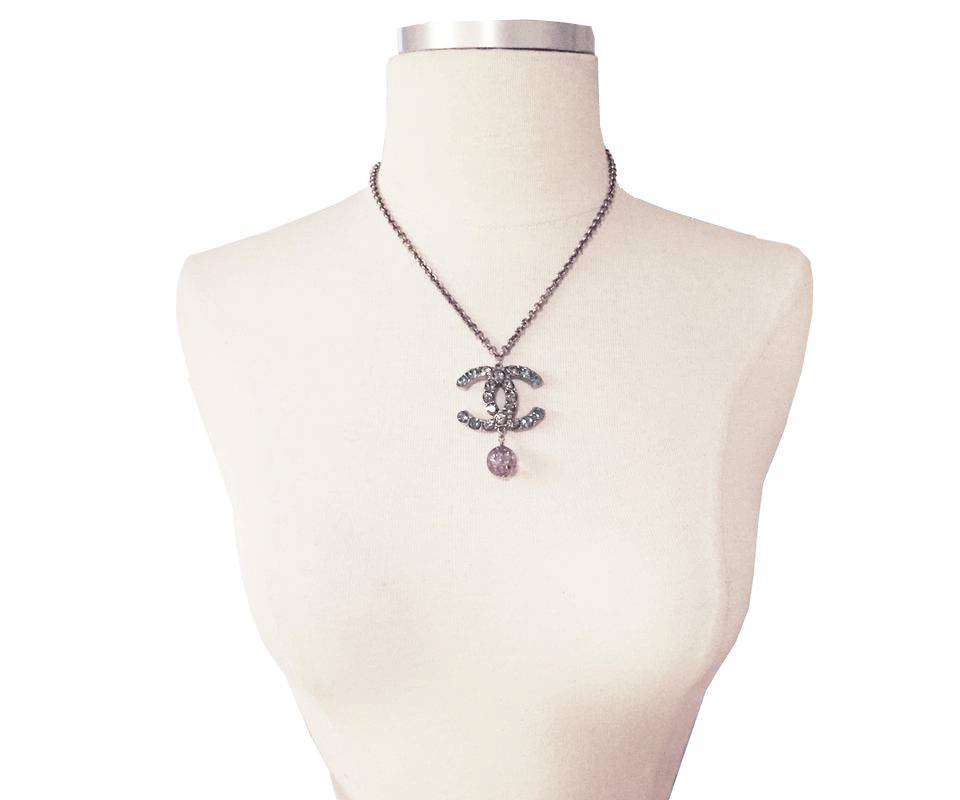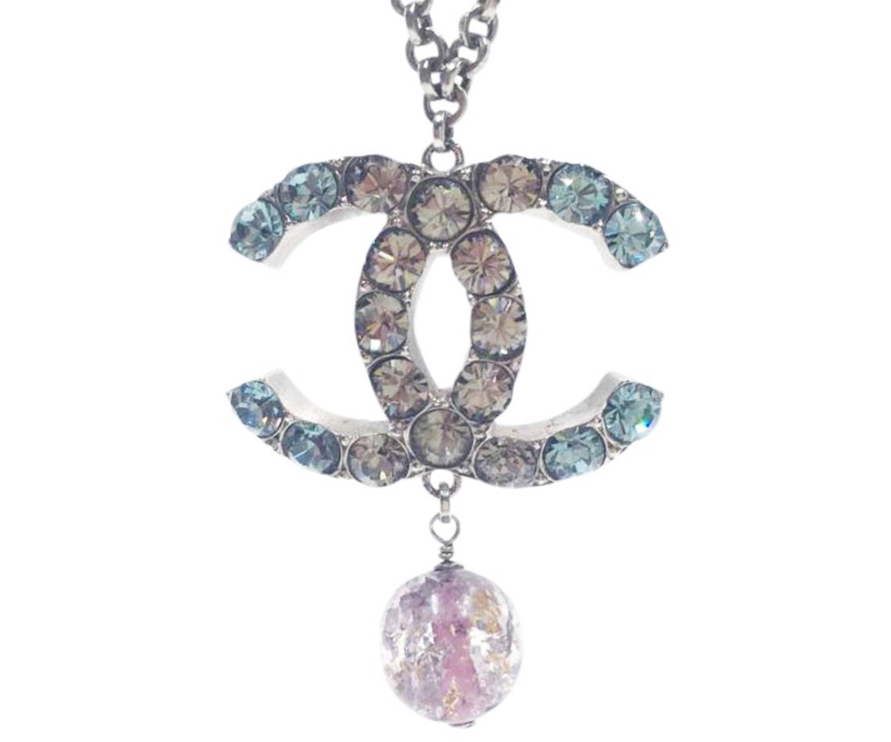 Chanel Turquoise Clear Crystal CC Pink Glass Large Pendant Necklace