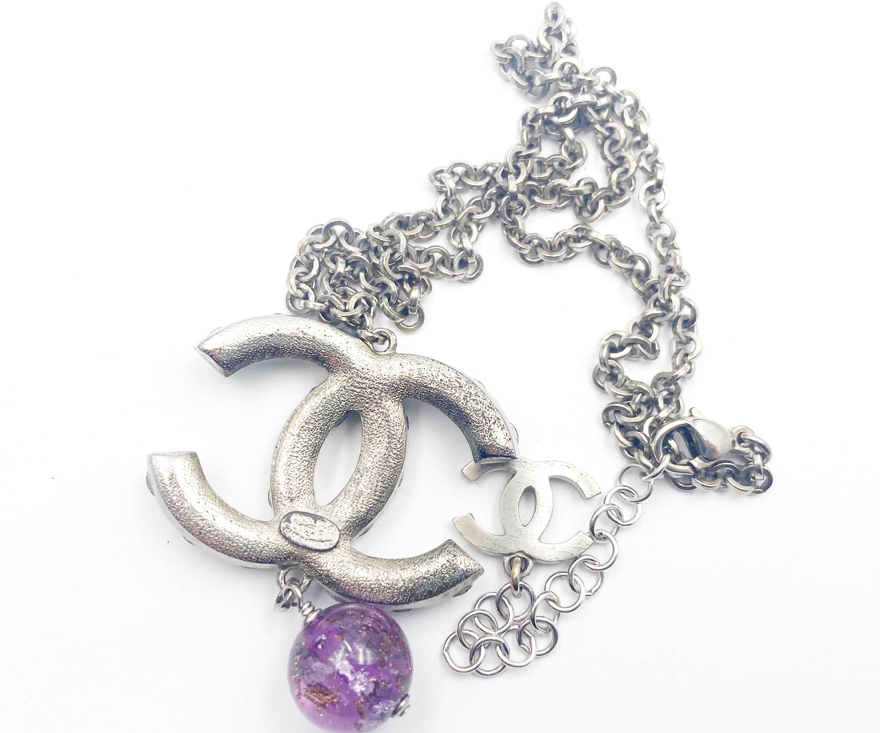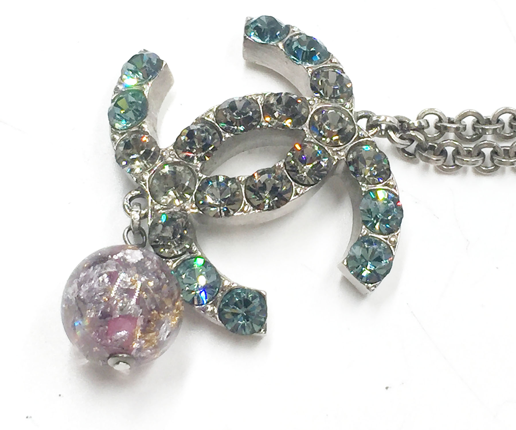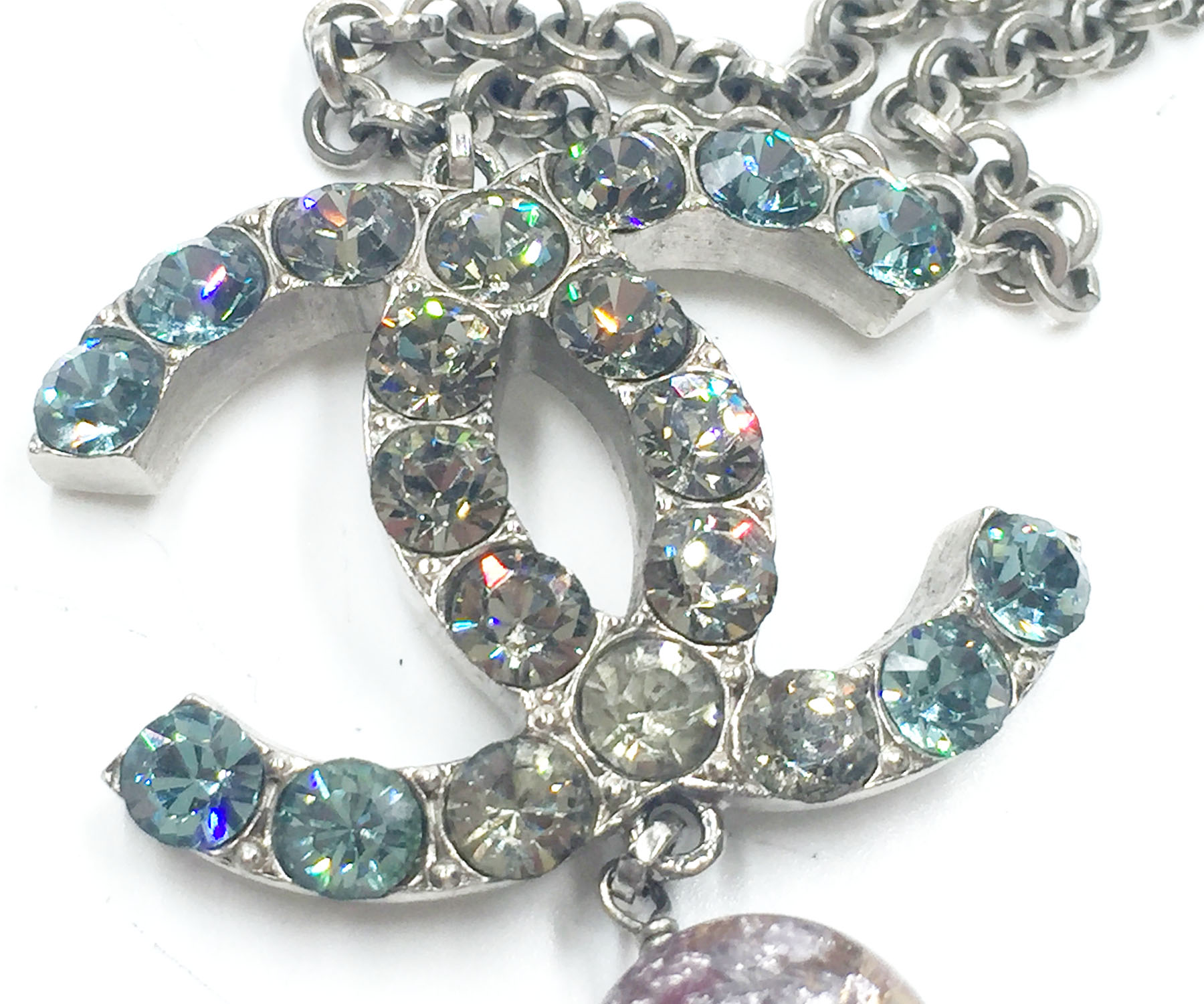 Chanel Turquoise Clear Crystal CC Pink Glass Large Pendant Necklace