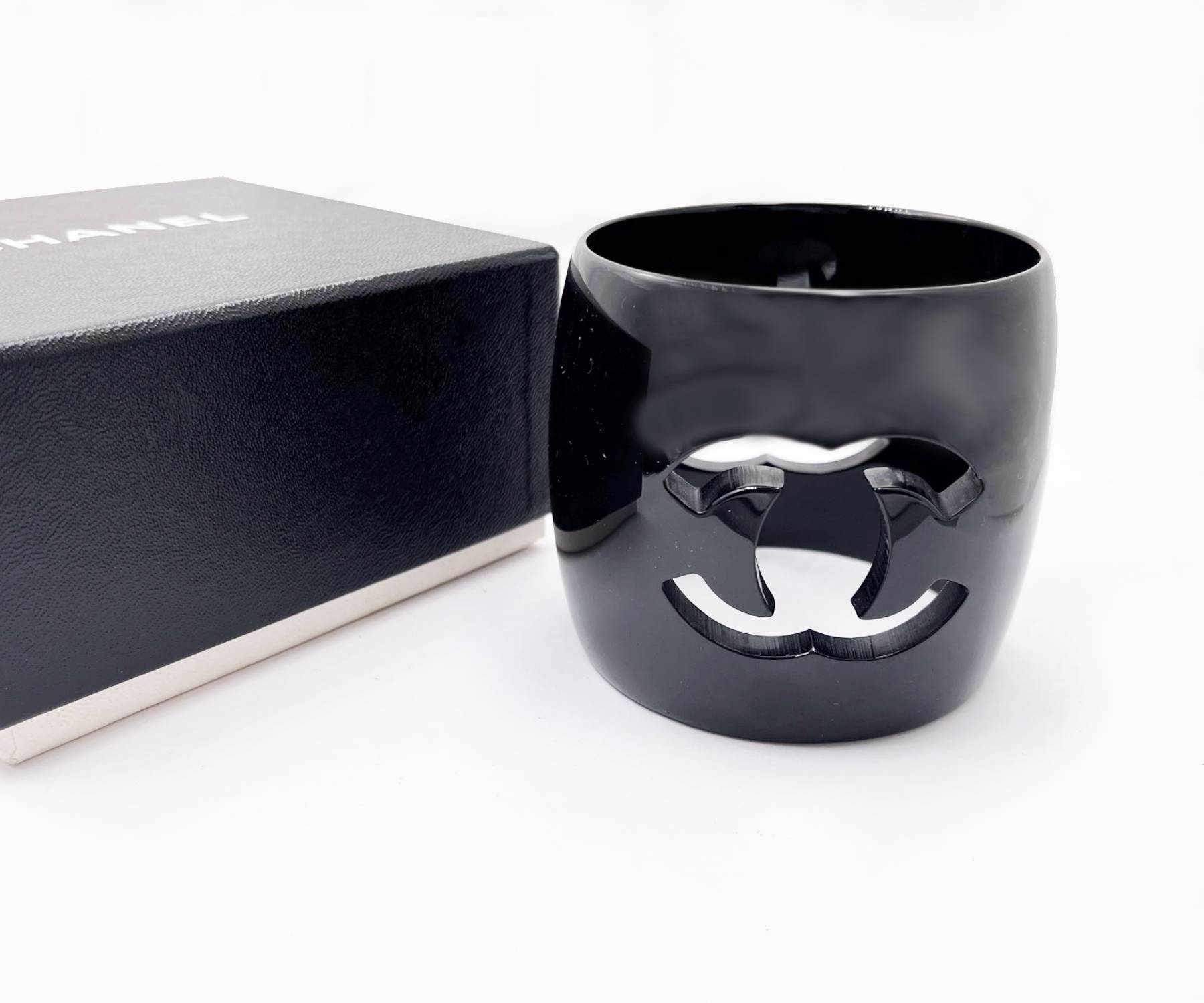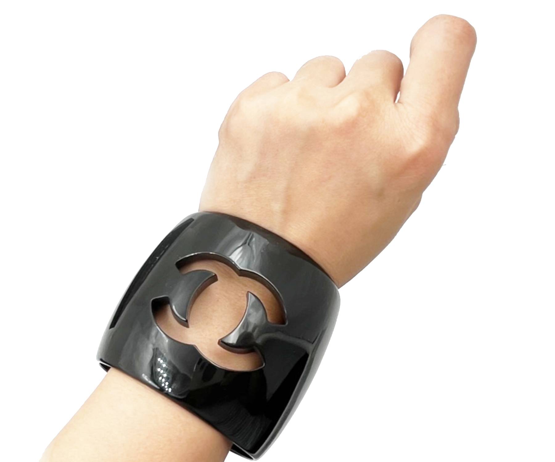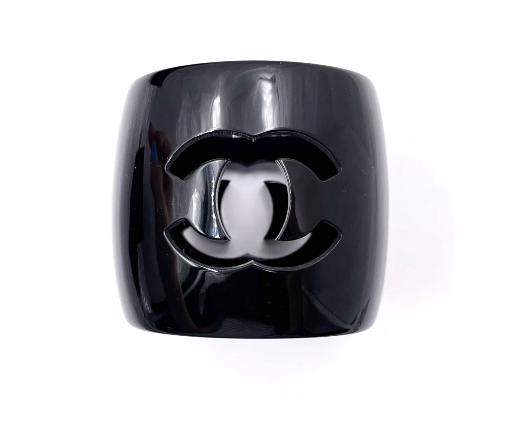 Chanel Vintage Black CC Cutout XL Thick Bangle Bracelet