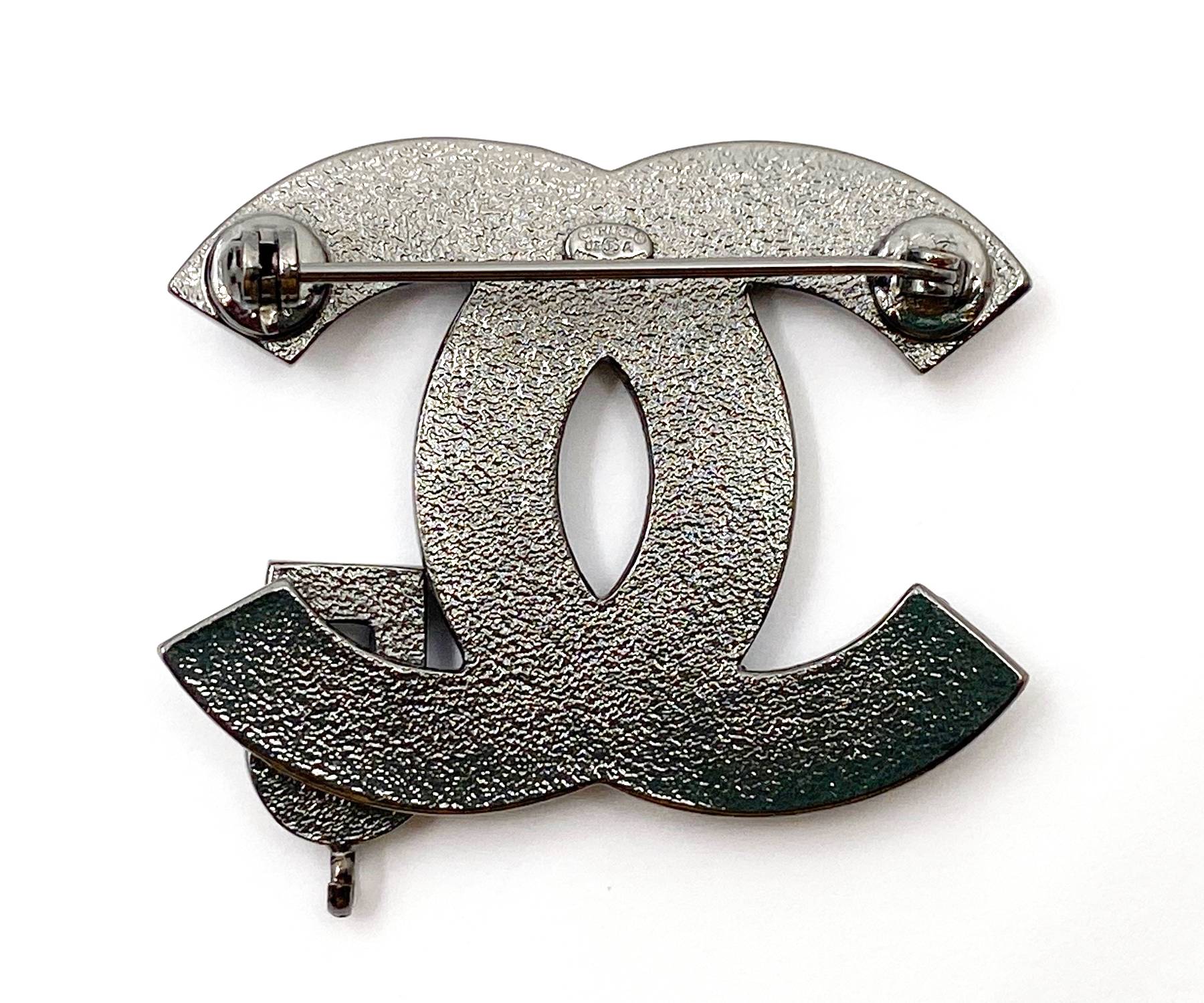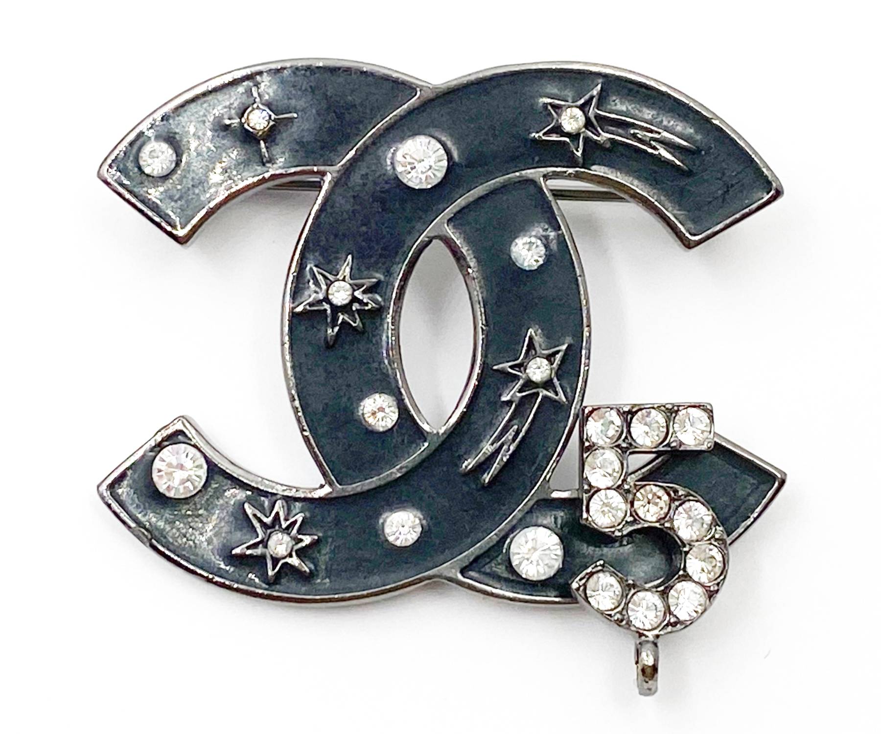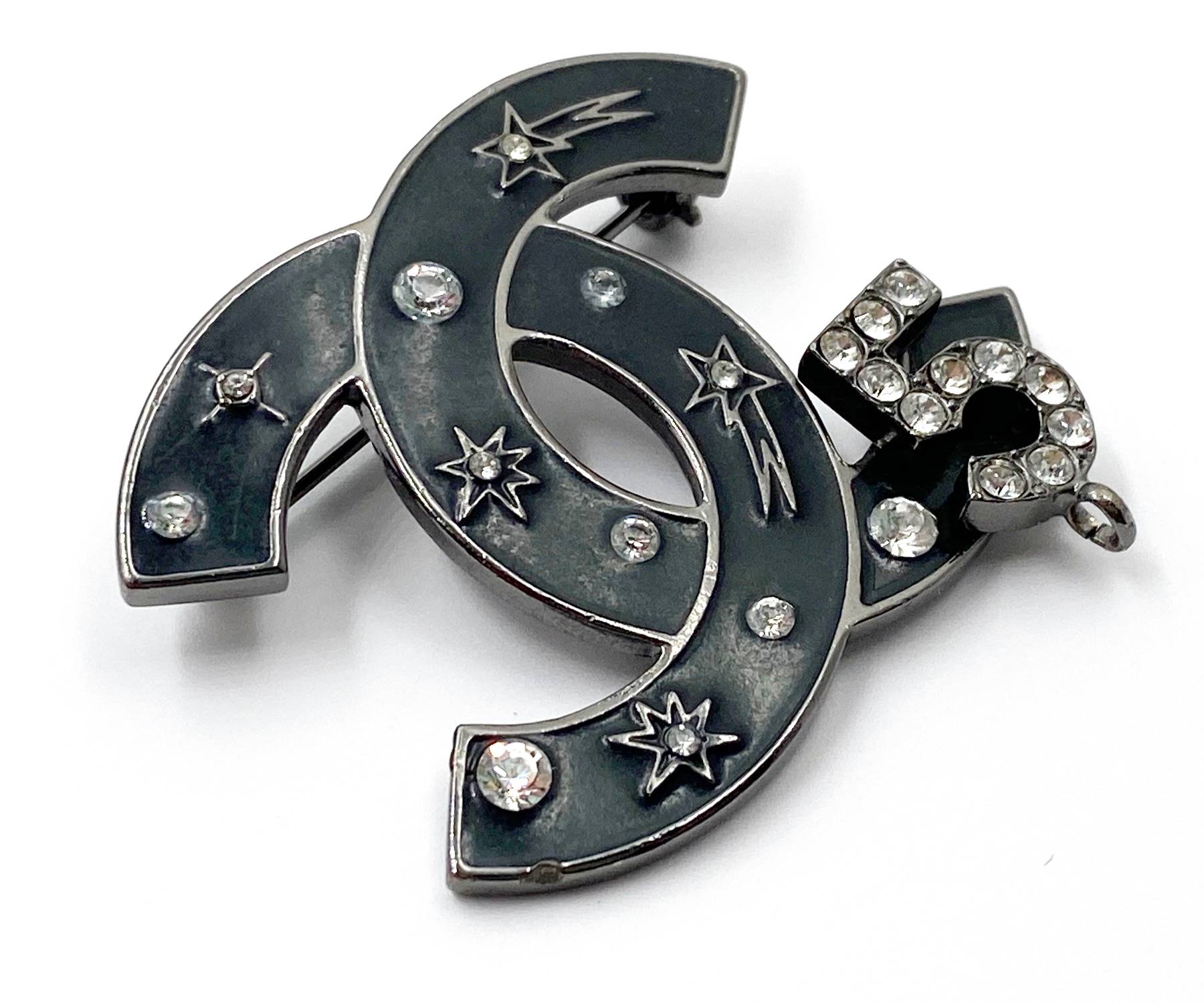 Chanel Vintage Black CC Star Crystal 5 Brooch
