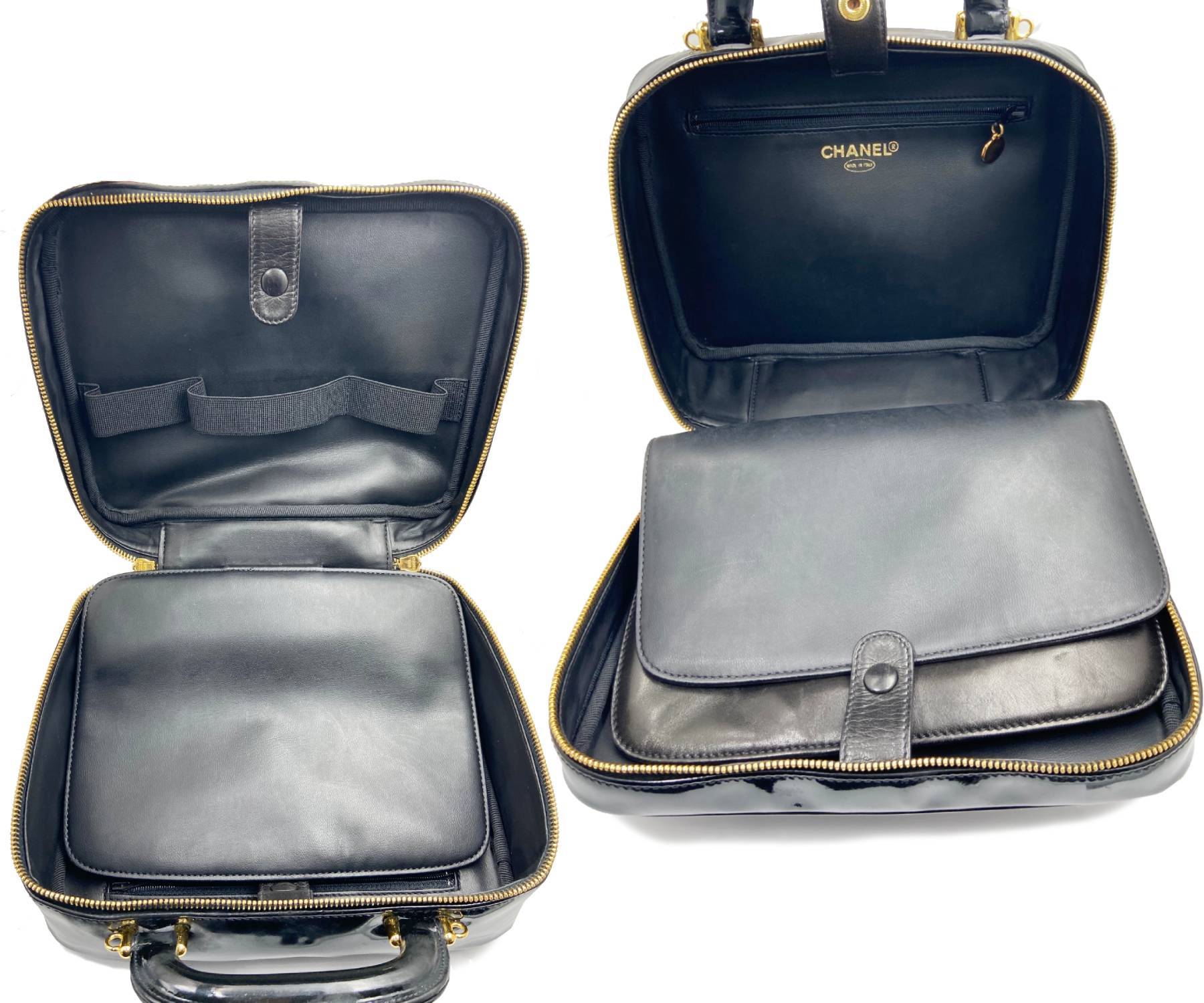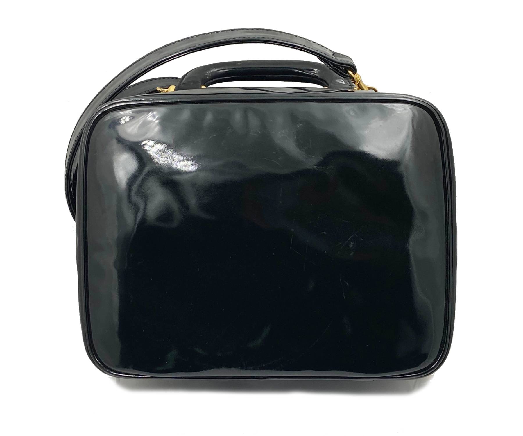 Chanel Vintage Black Patent Leather Vanity Case Shoulder Bag