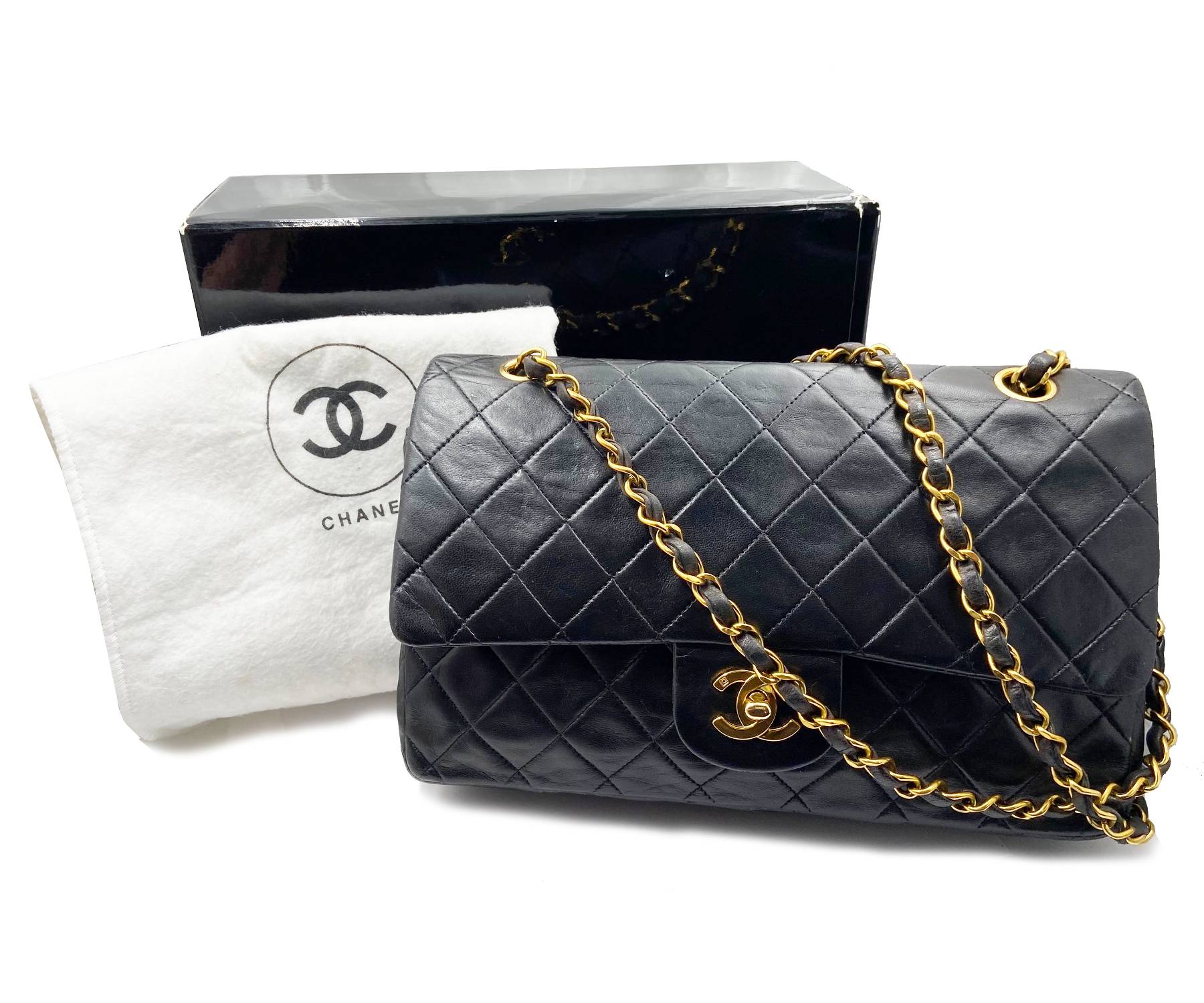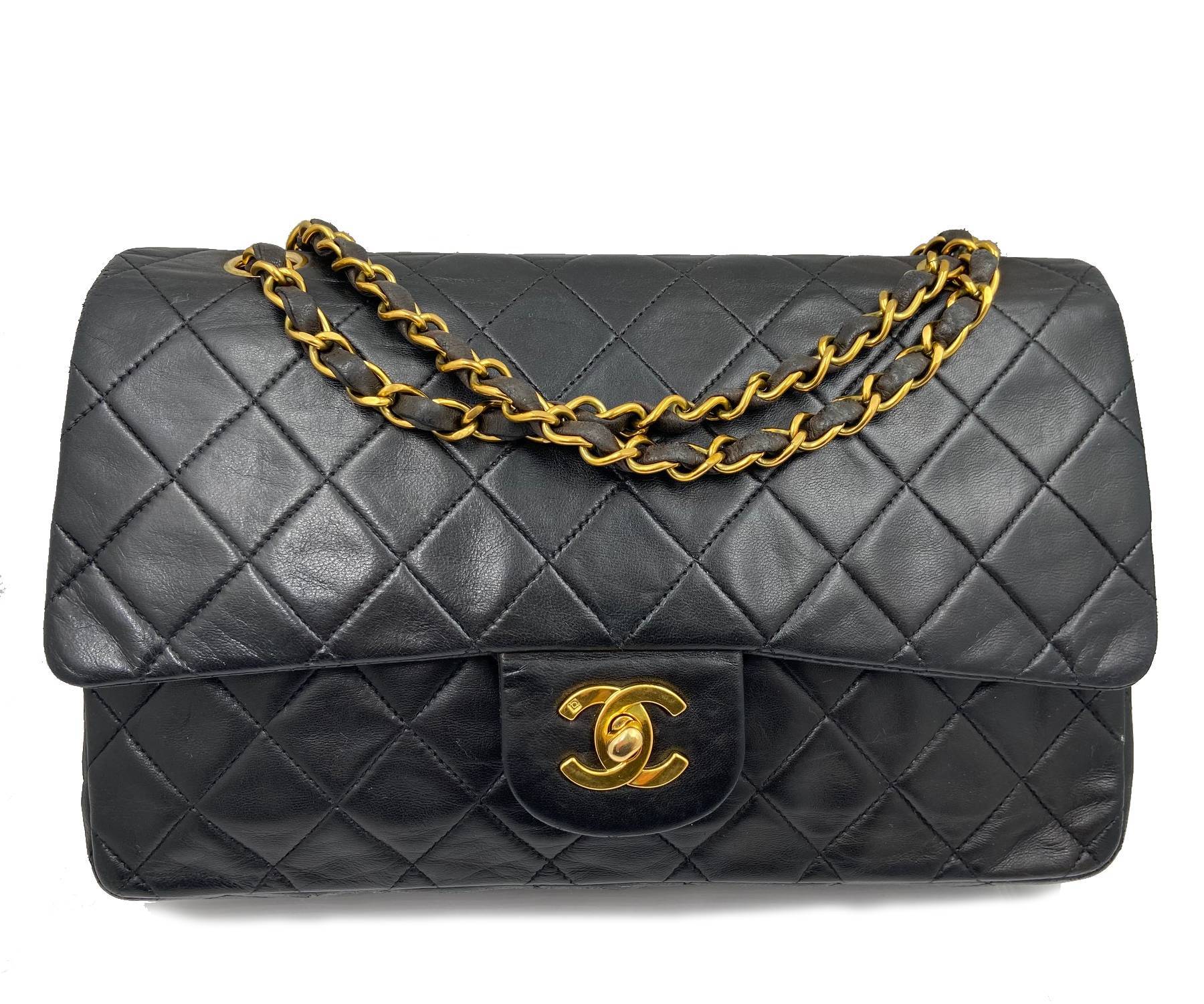 Chanel Vintage Classic Timeless Double Flap Lambskin 10″ Shoulder Bag