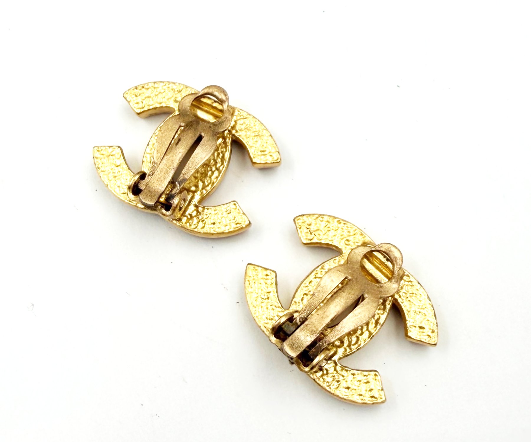 Chanel Vintage Gold Plated CC Black Crystal Clip on Earrings