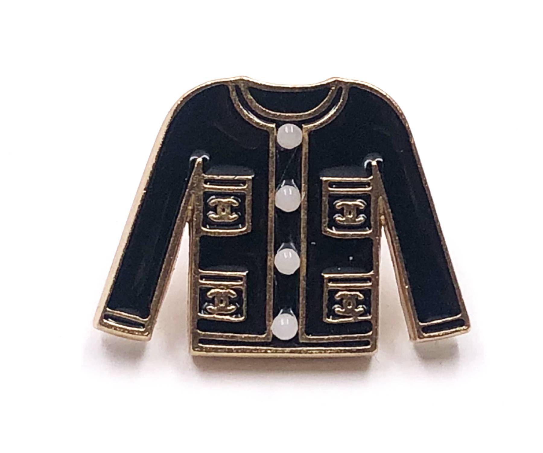 Chanel Vintage Gold Plated CC Black Enamel Jacket Pin