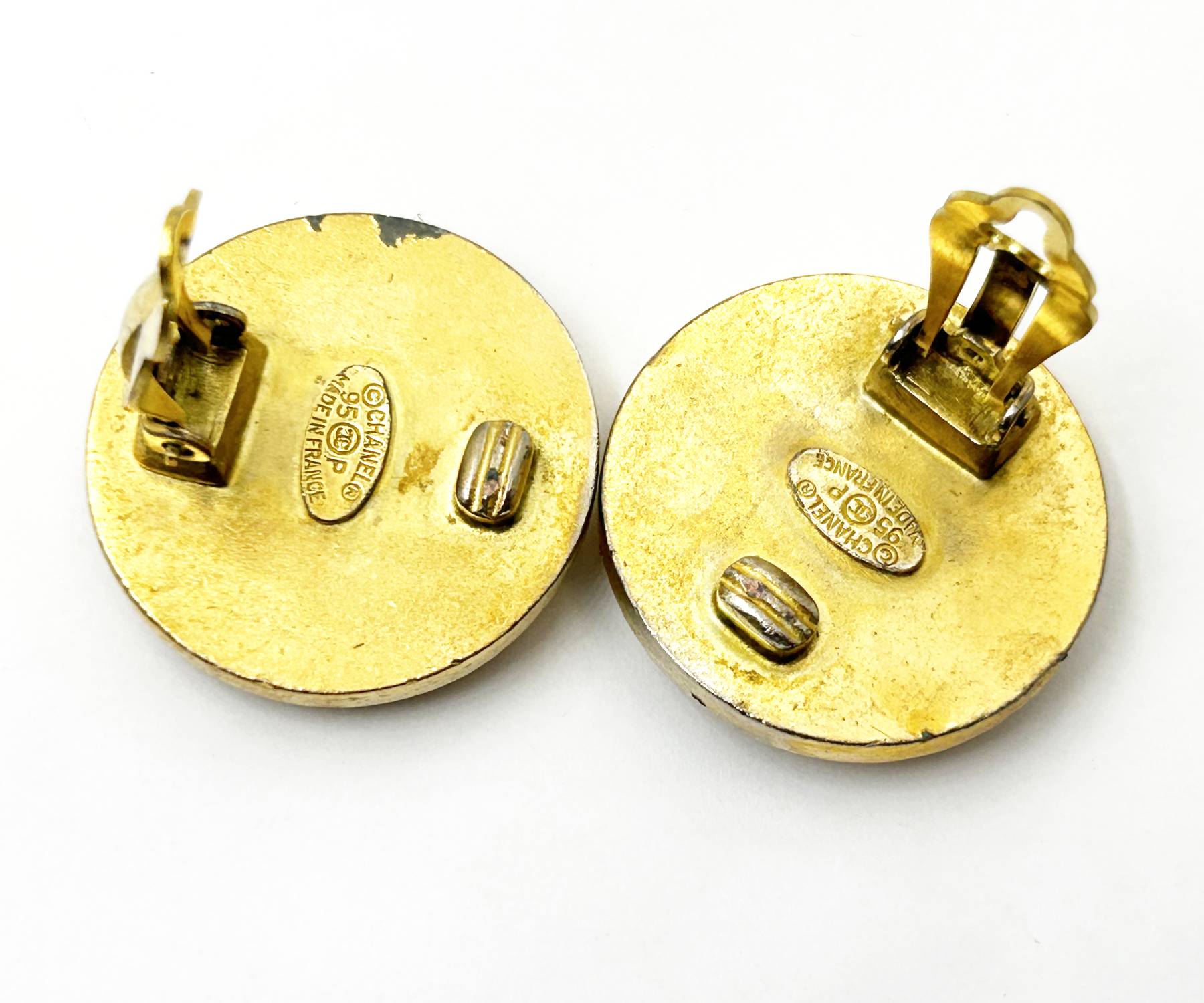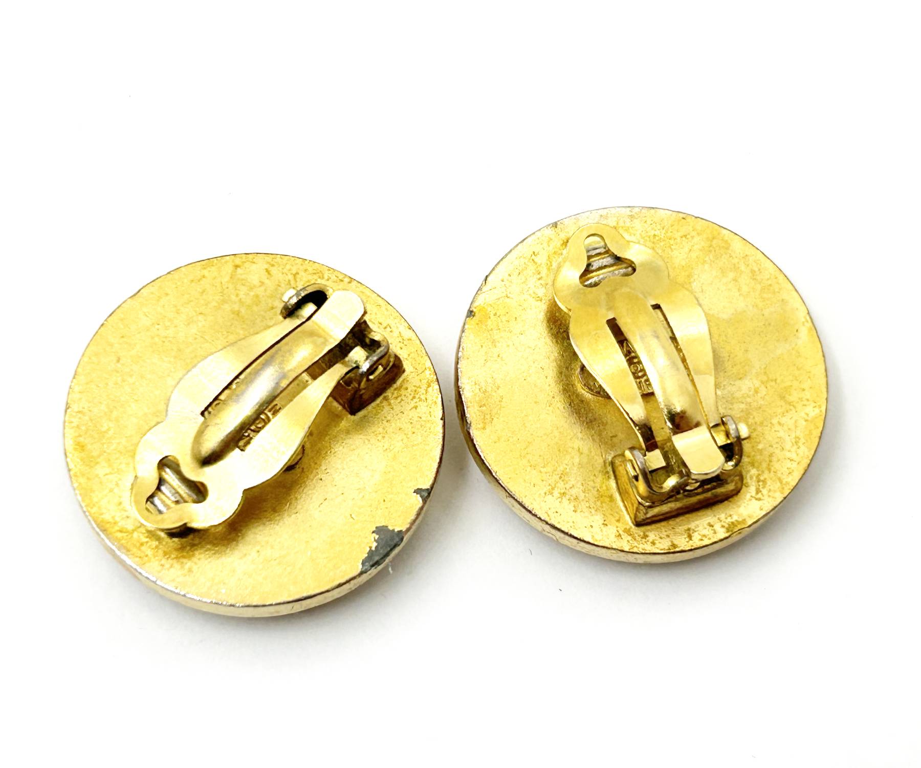 Chanel Vintage Gold Plated CC black Gold Rim Clip on Earrings As seen on Nicole Richie