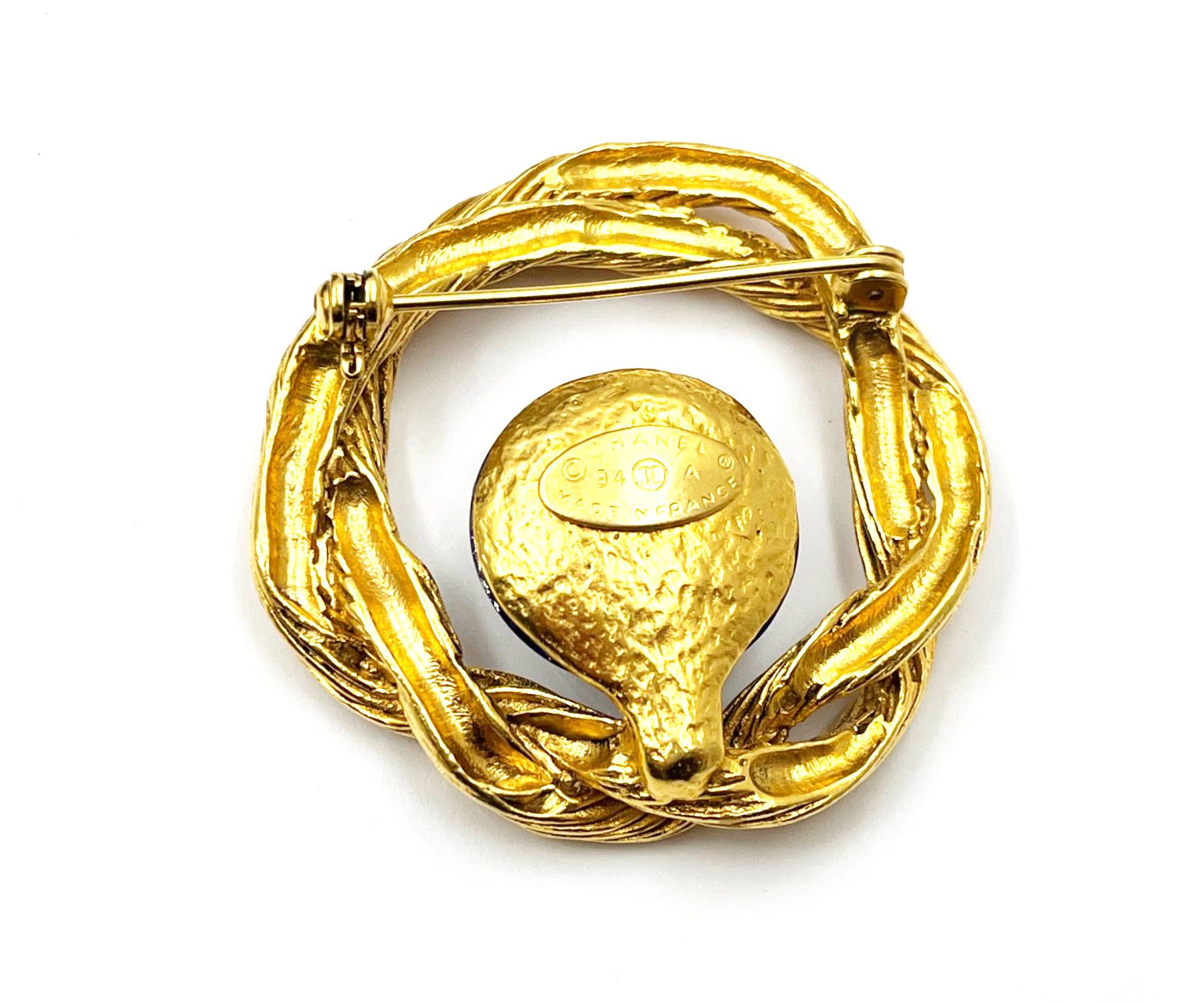 Chanel Vintage Gold Plated CC Blue Stone Rope Wreath Brooch