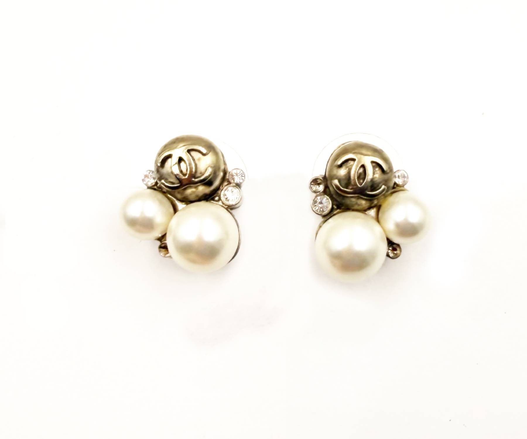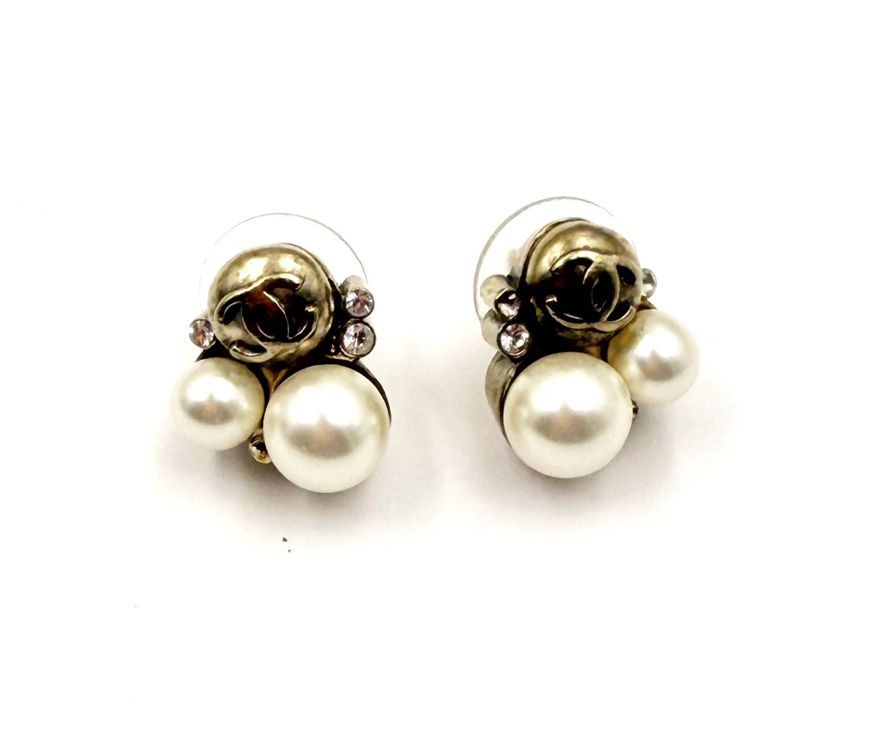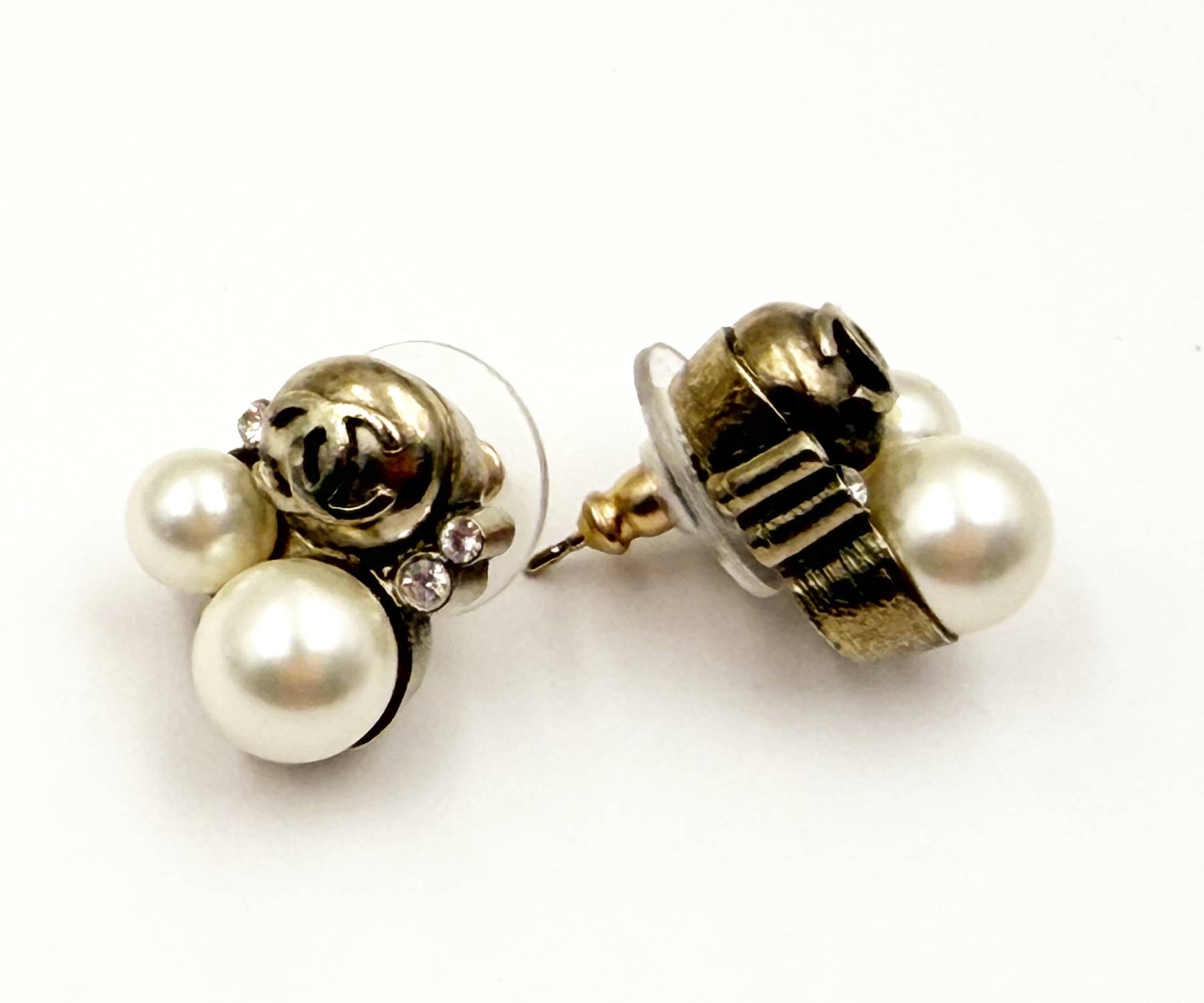 Chanel Vintage Gold Plated CC Bubble Pearl Small Piercing Earrings