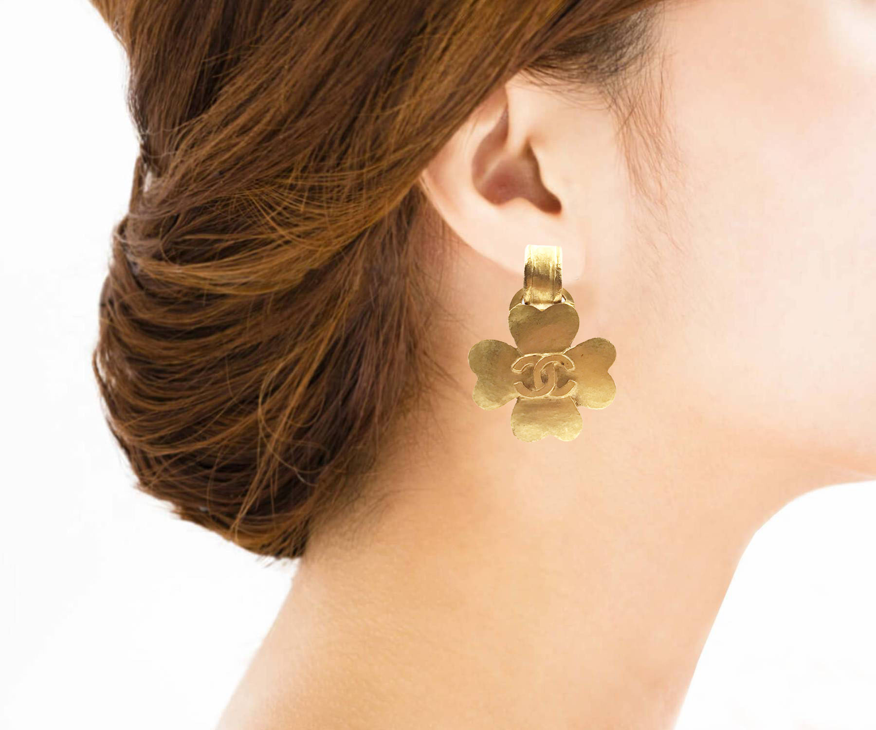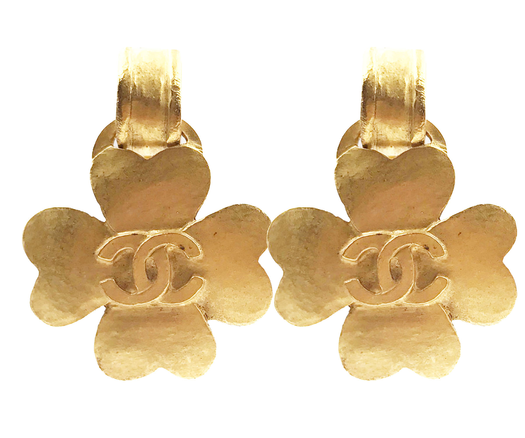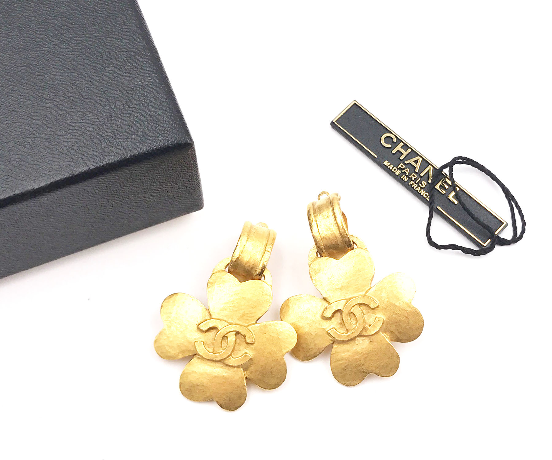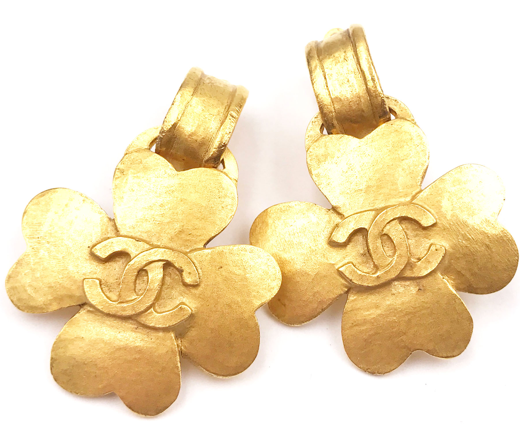Chanel Vintage Gold Plated CC Clover Clip on Earrings