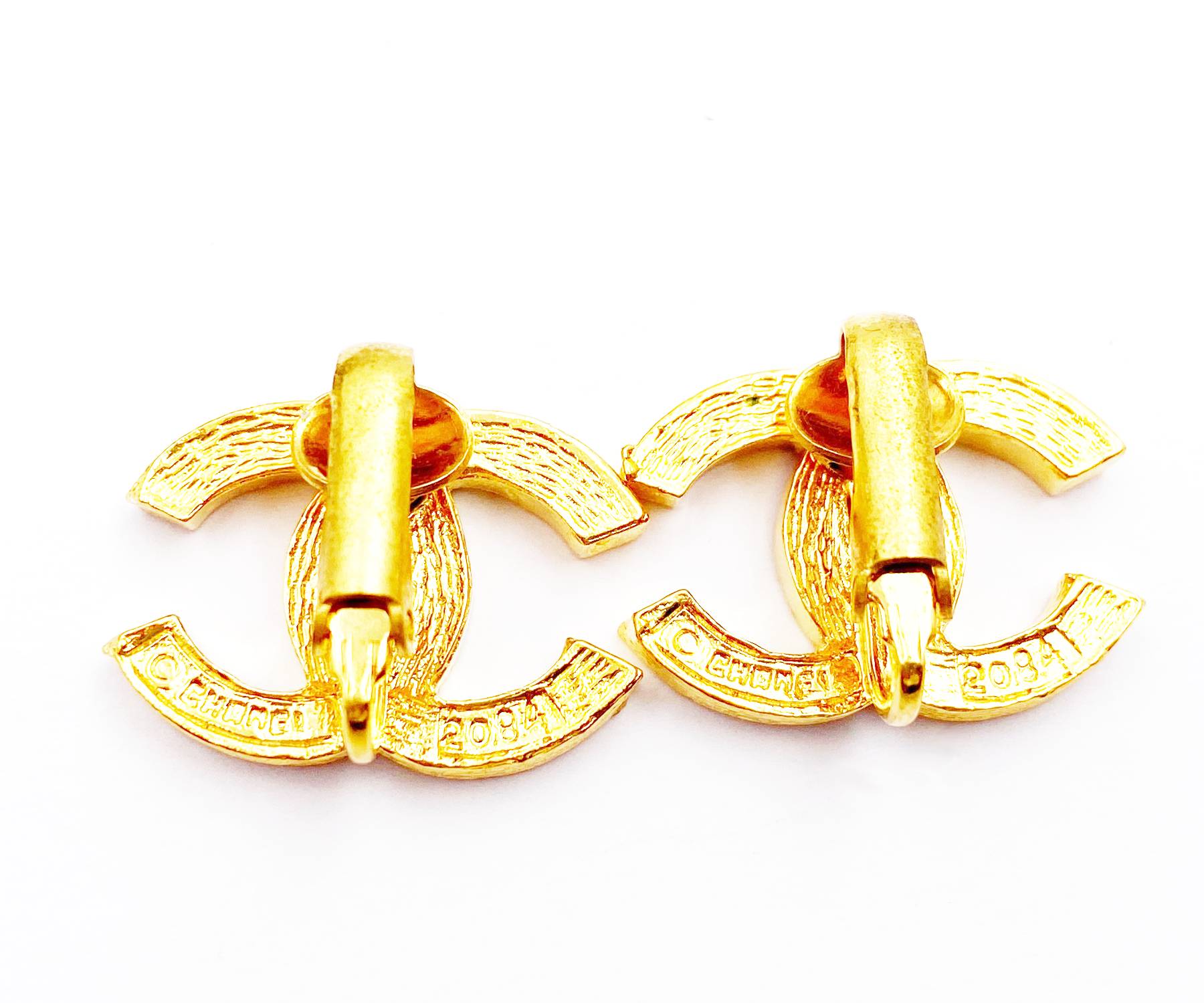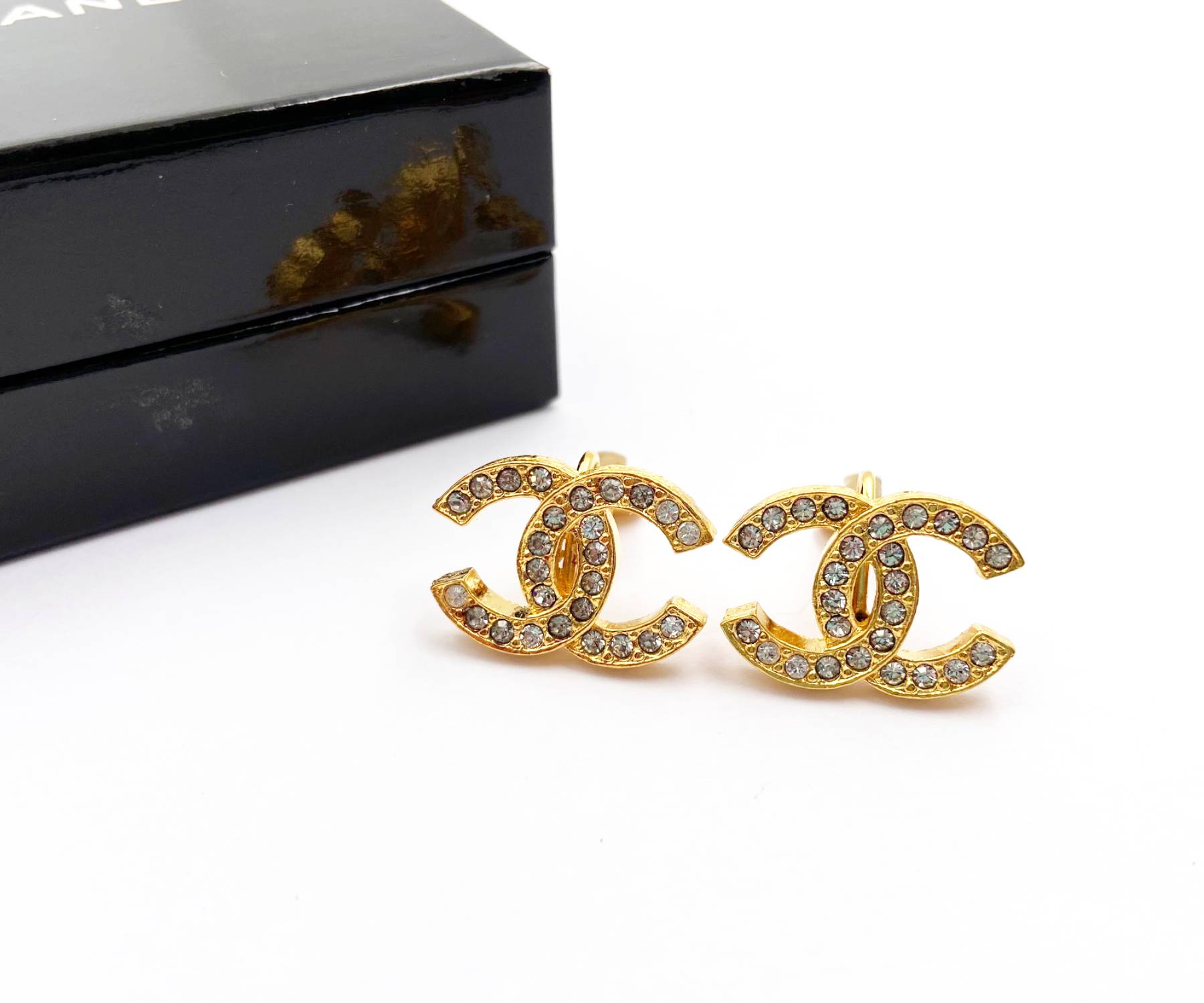 Chanel Vintage Gold Plated CC Crystal Clip on Earrings