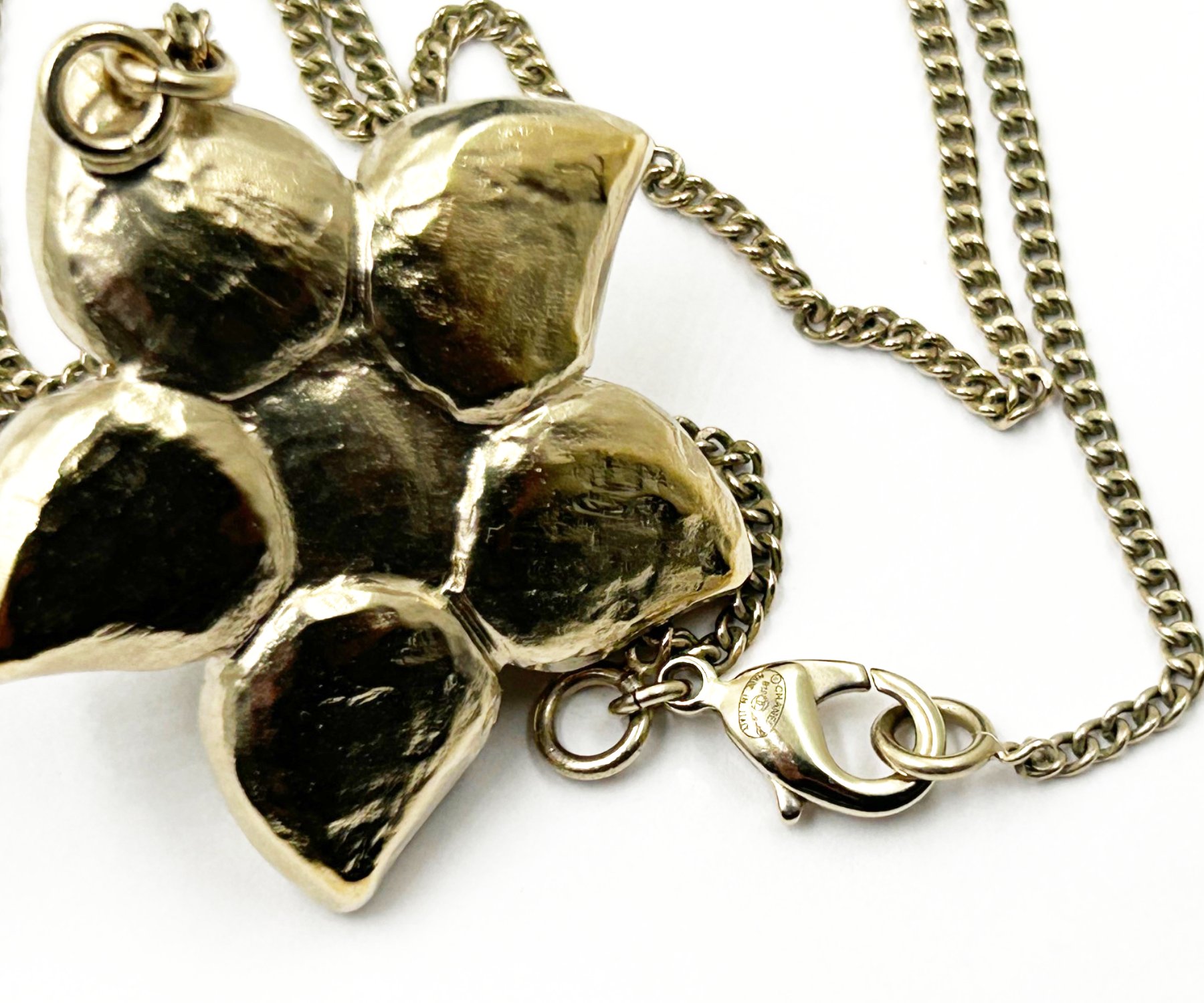 Chanel Vintage Gold Plated CC Crystal Flower Pendant Necklace