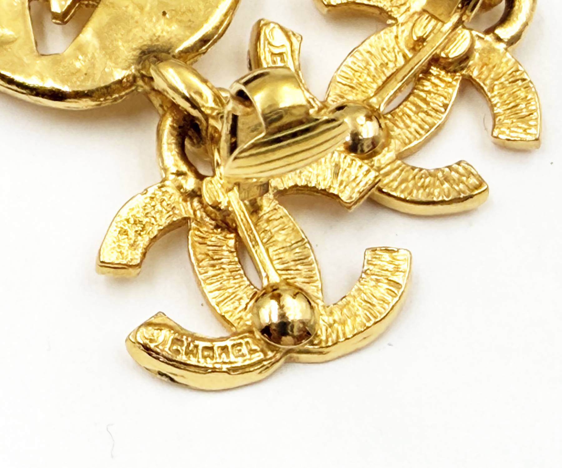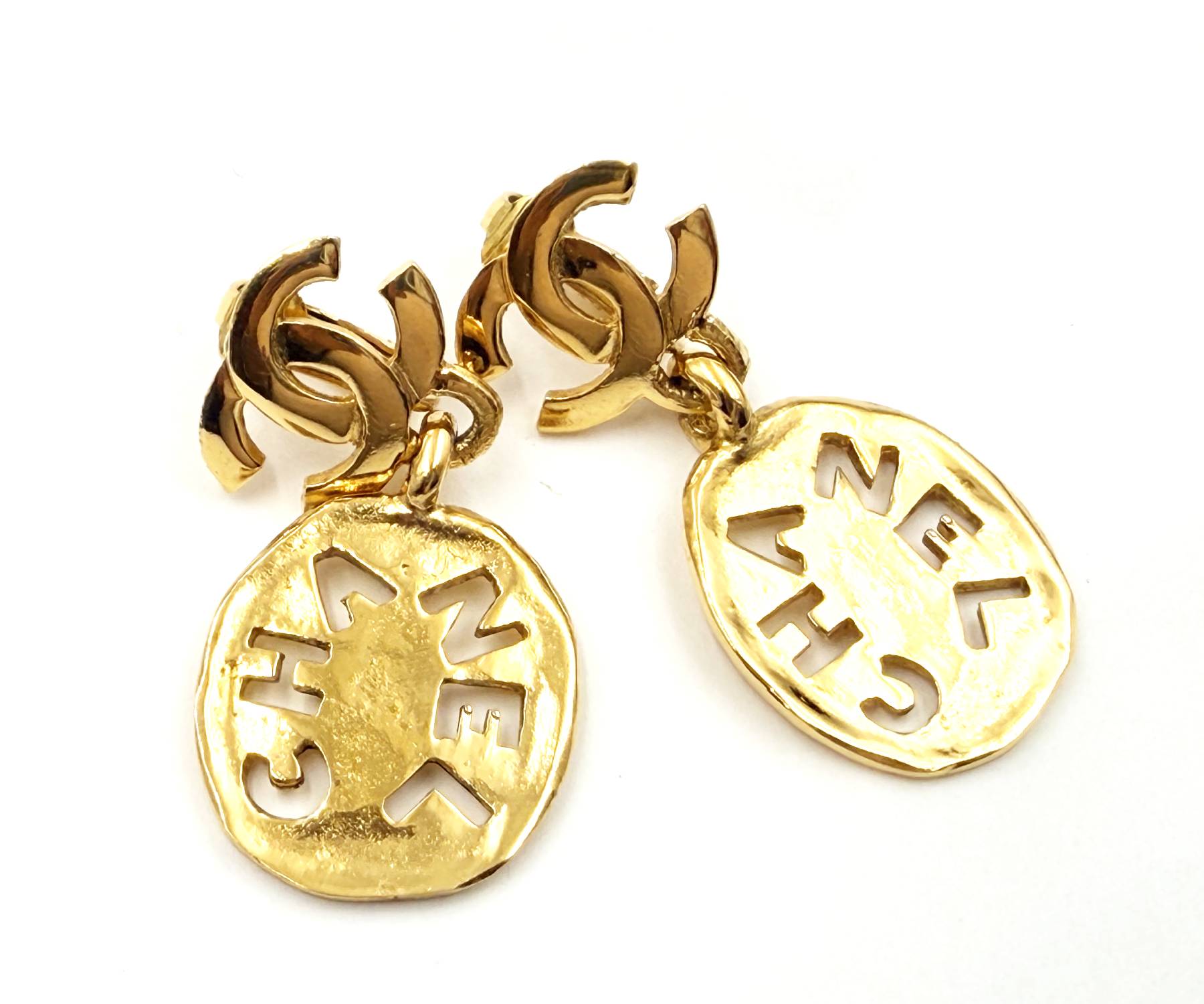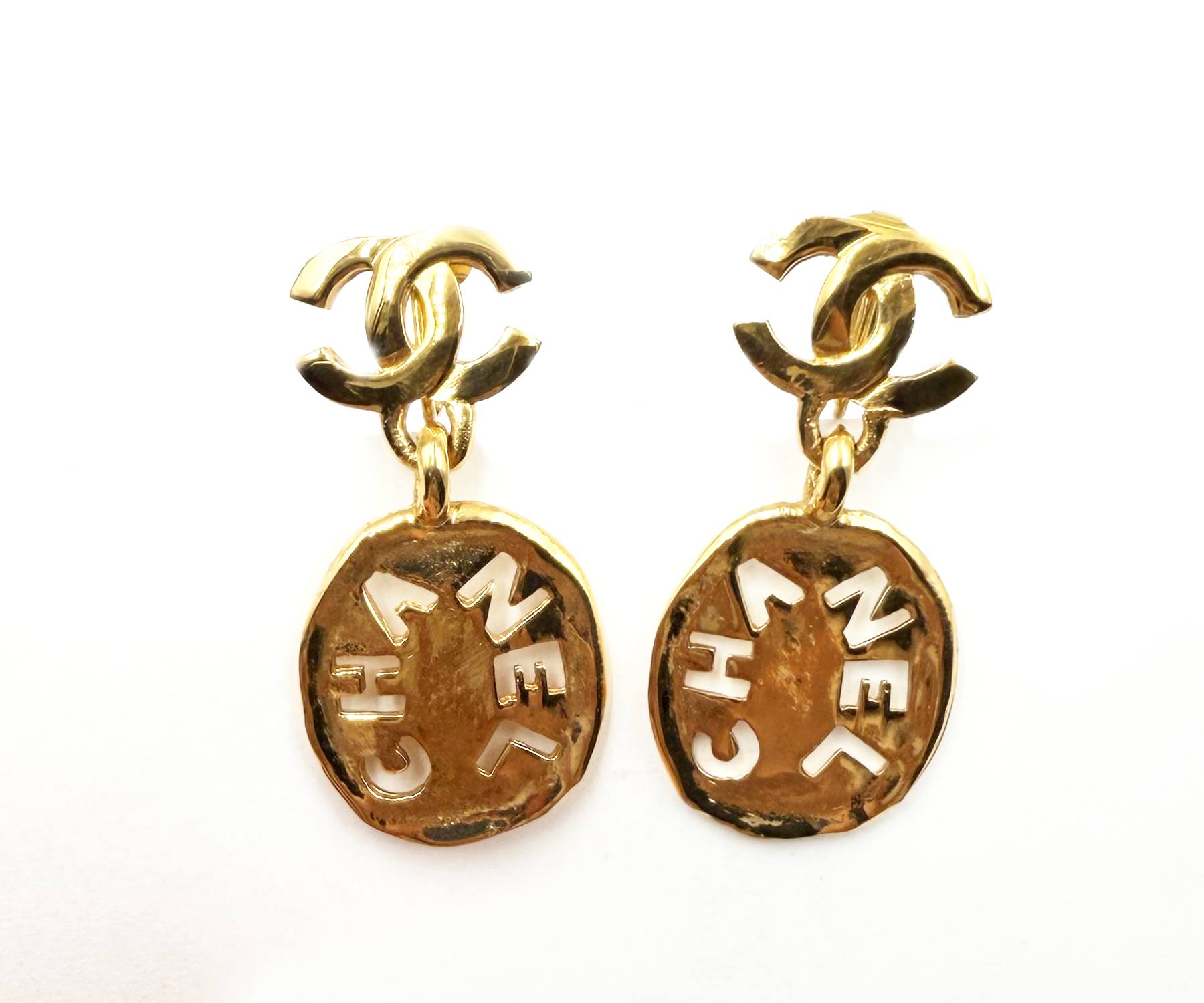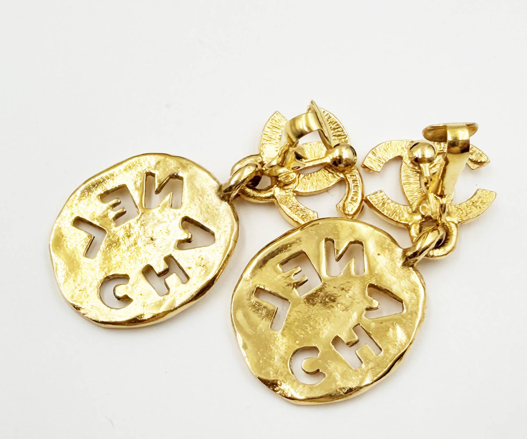 Chanel Vintage Gold Plated CC Cut out Dog Tag Clip on Earrings