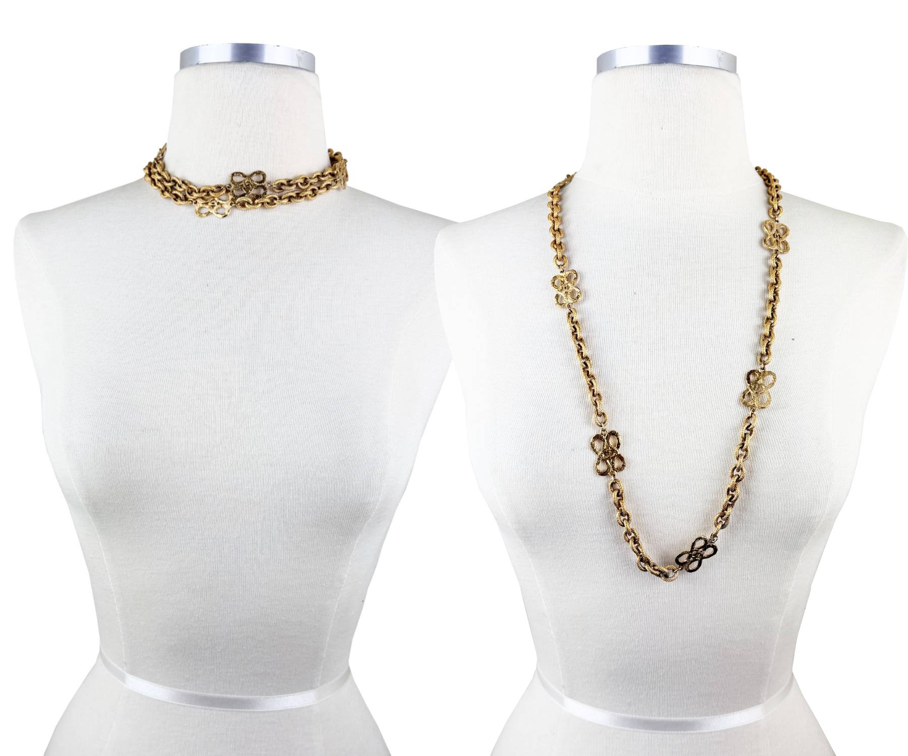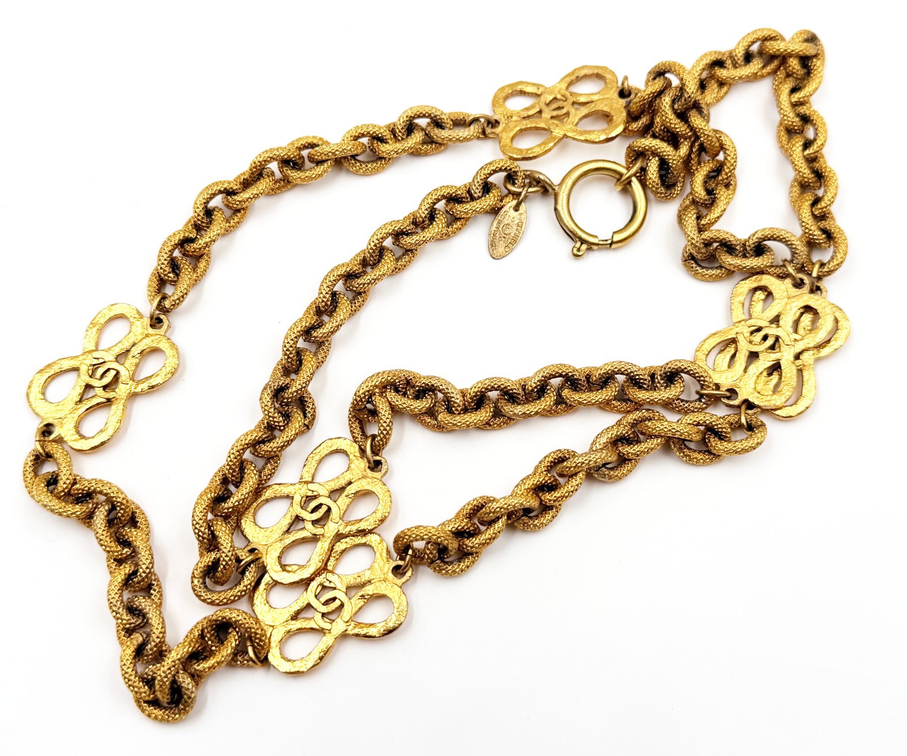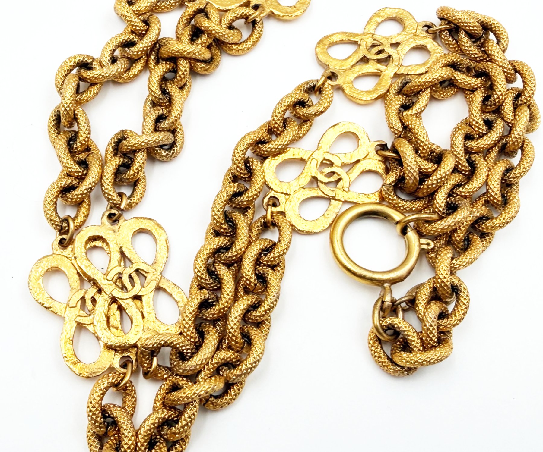 Chanel Vintage Gold Plated CC Filigree Pendant Spear Dangle Long Necklace