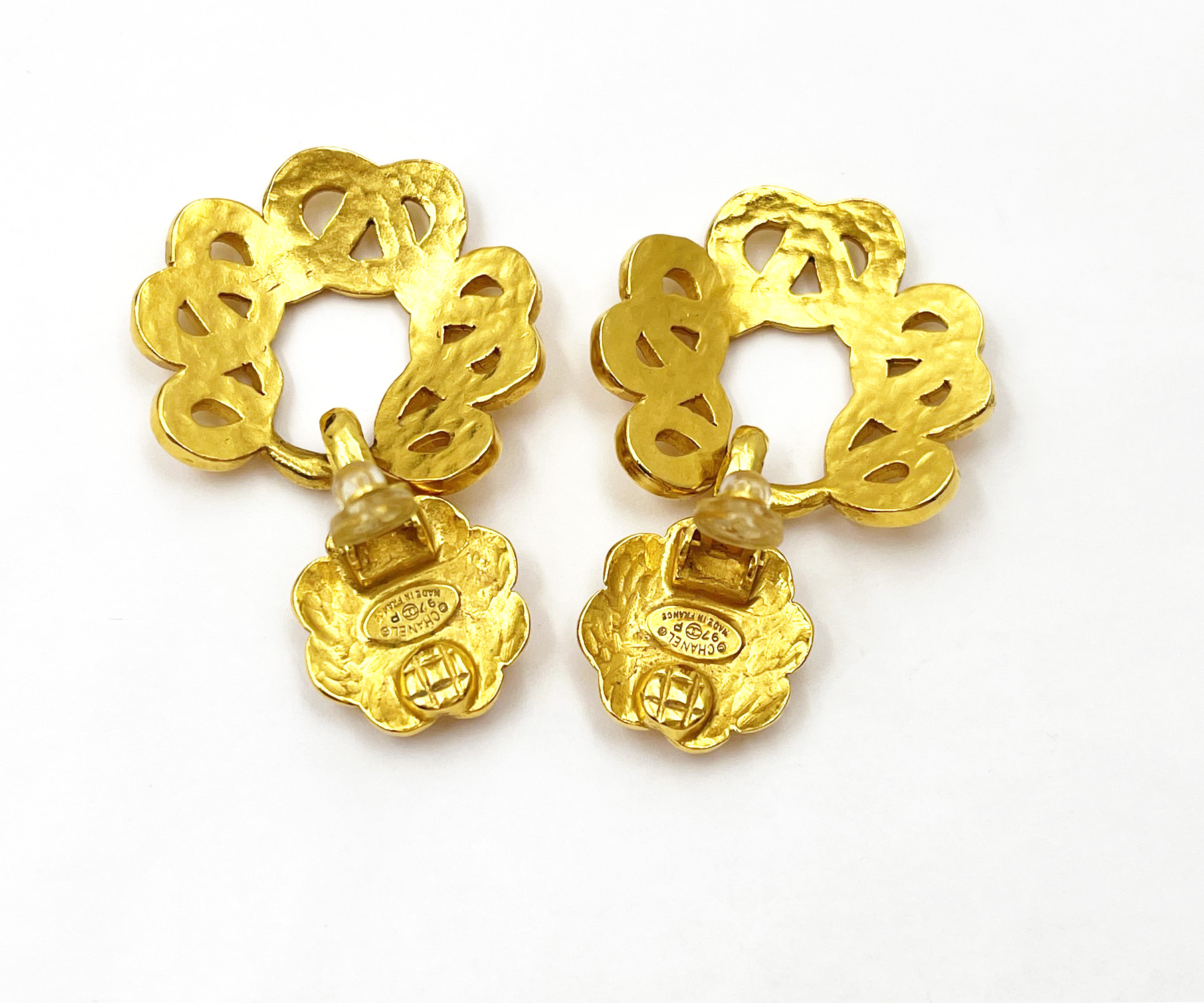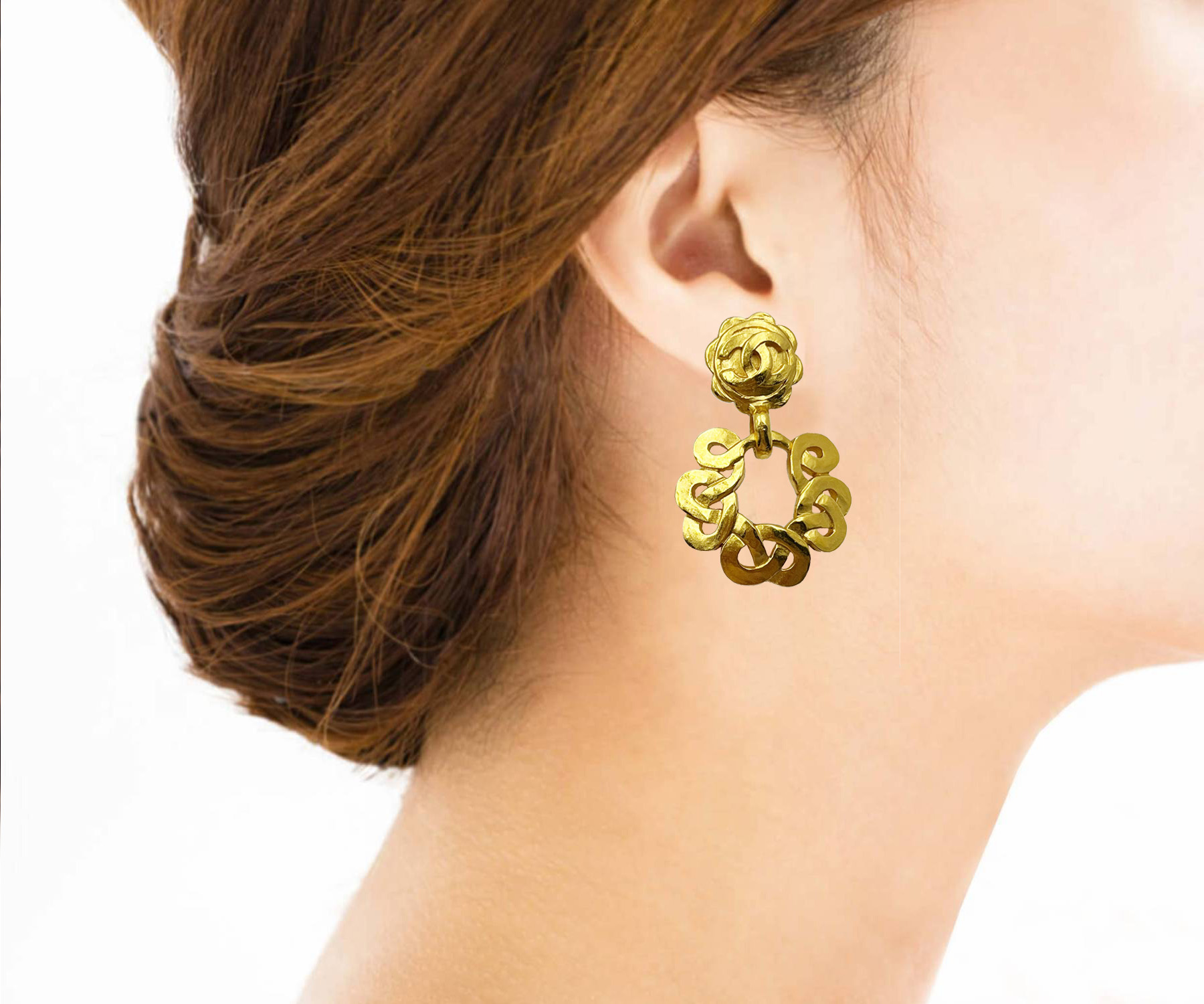 Chanel Vintage Gold Plated CC Flower Twisted Round Clip on Earrings