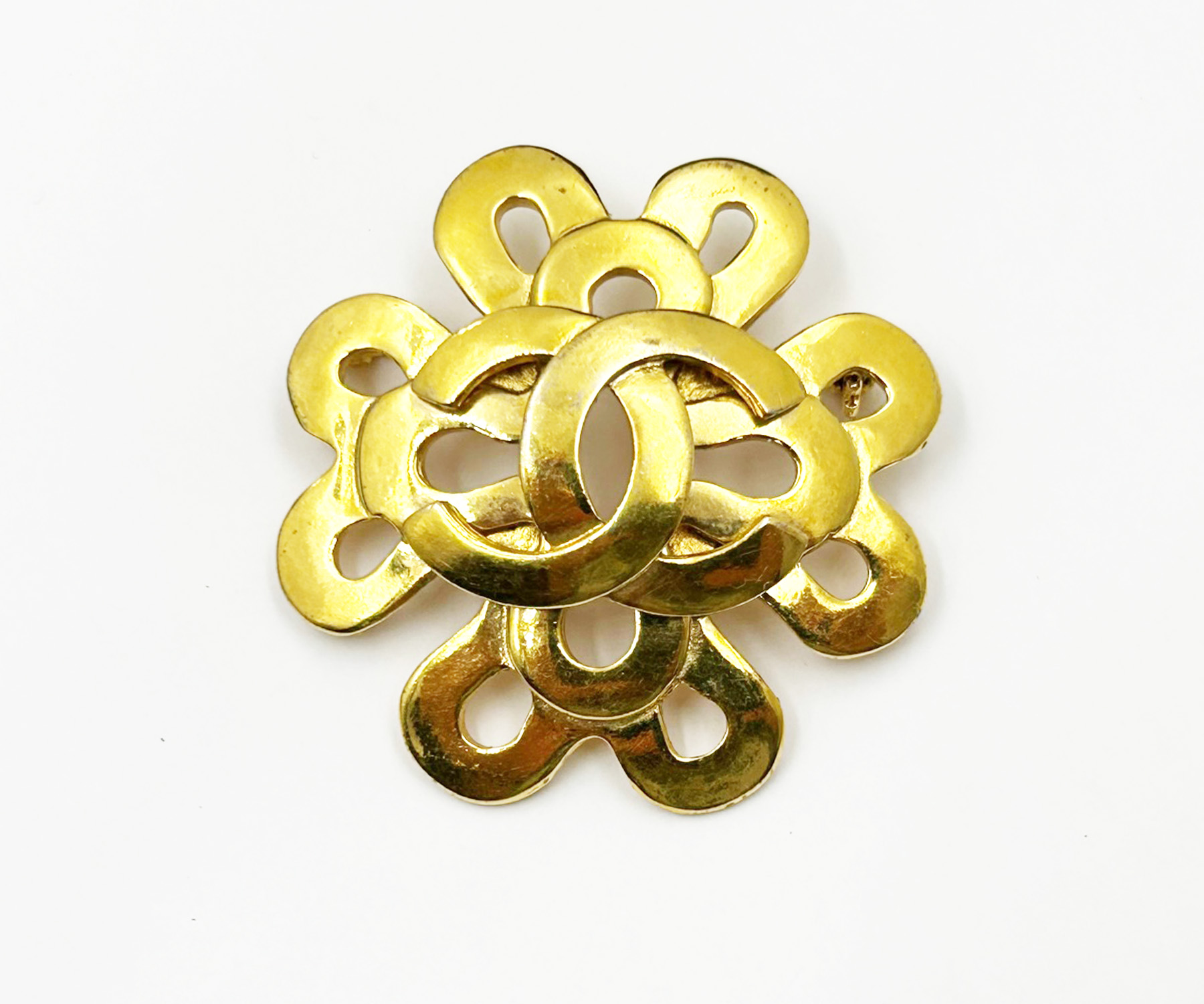 Chanel Vintage Gold Plated CC Twisted Flower Brooch