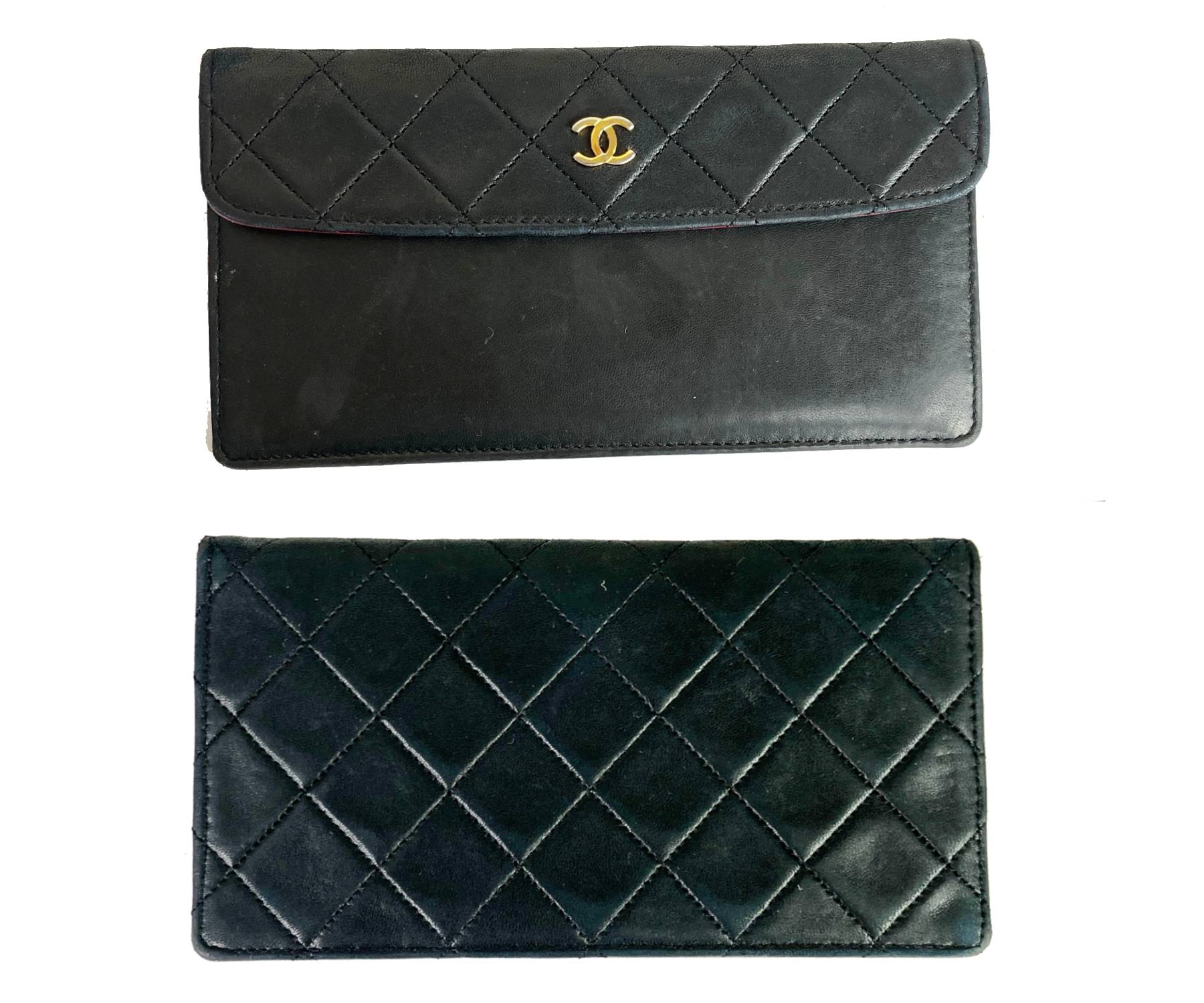 Chanel Vintage RARE Classic Flap Black Wallet Shoulder Bag Set