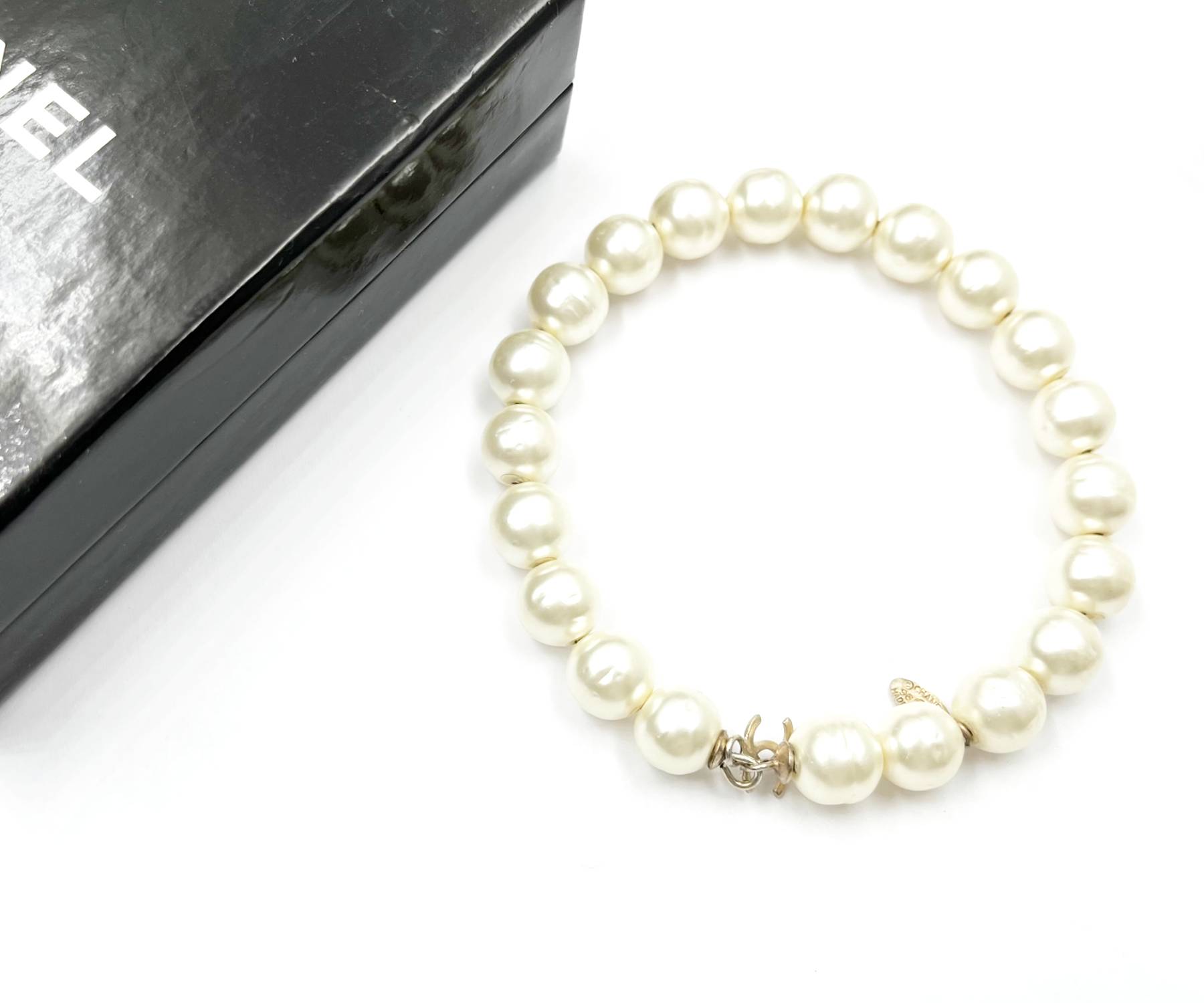Chanel Vintage Silver CC Baroque Pearl Bangle Bracelet