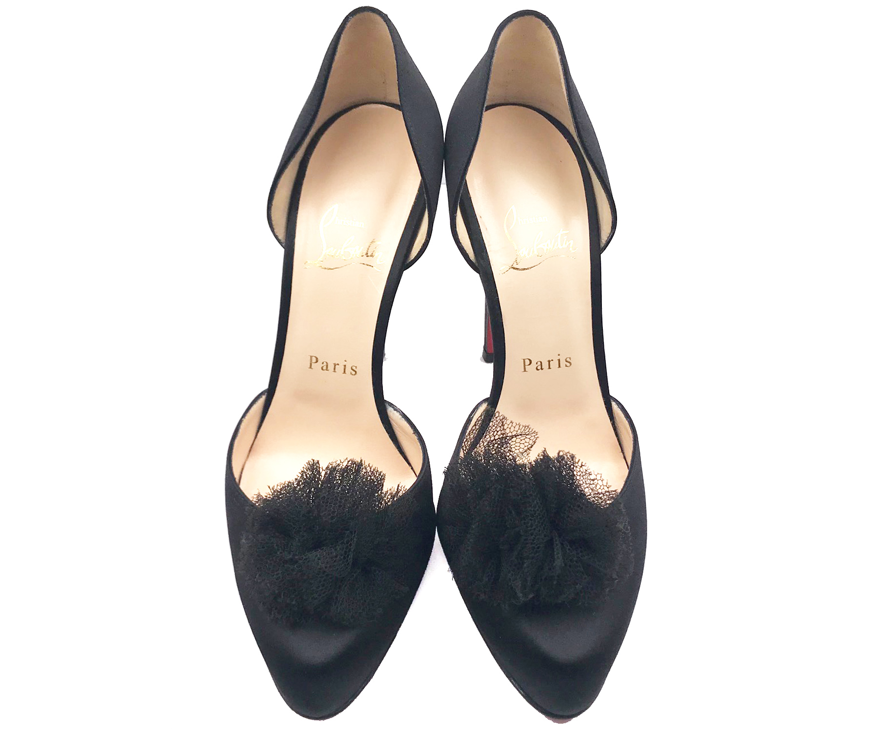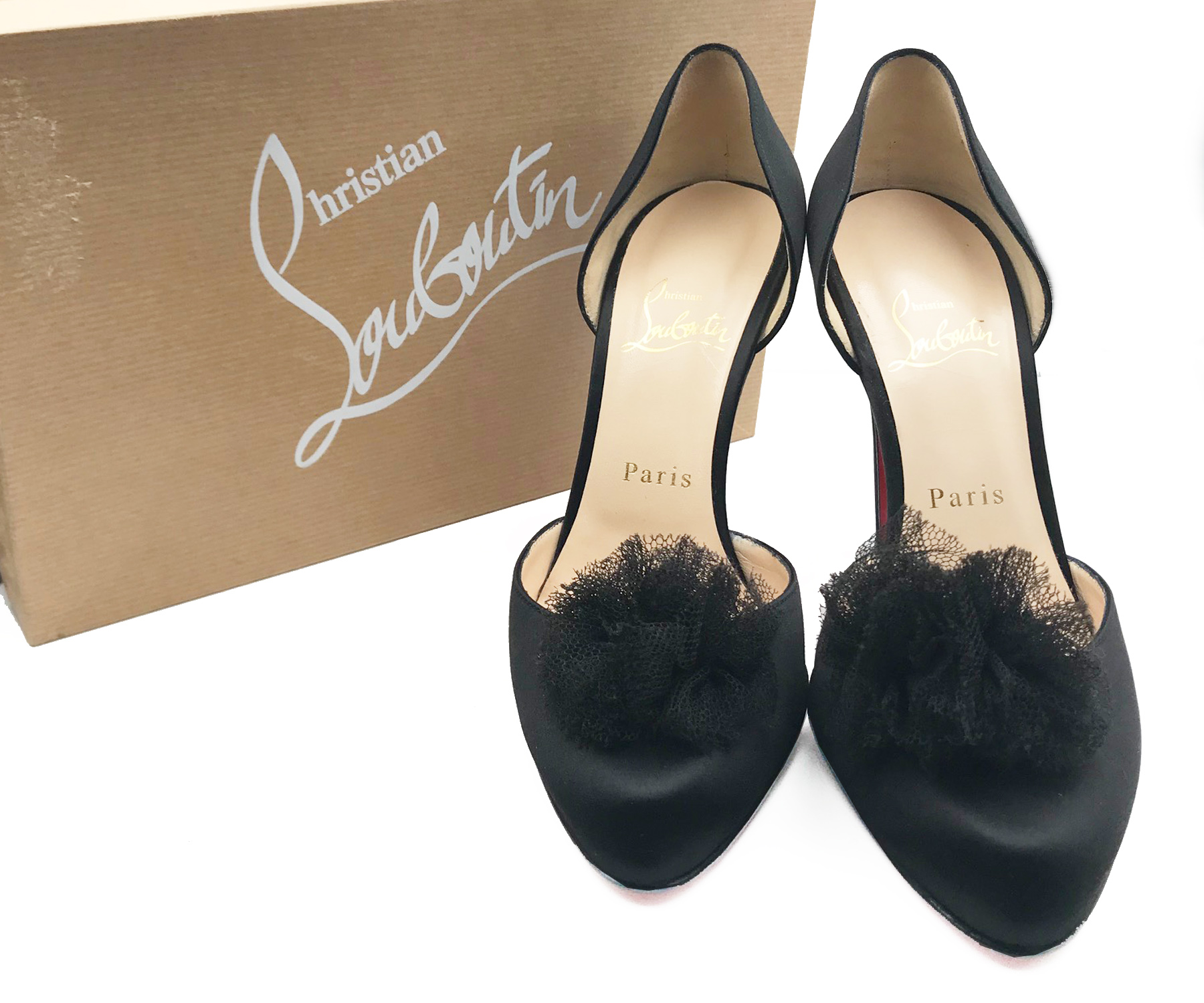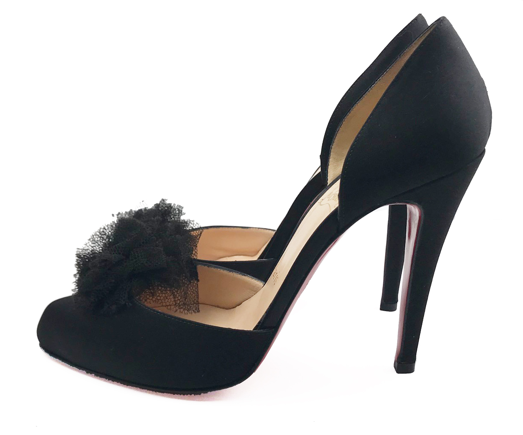 Christian Louboutin Black Silk Satin Pow Pow Pumps Heels