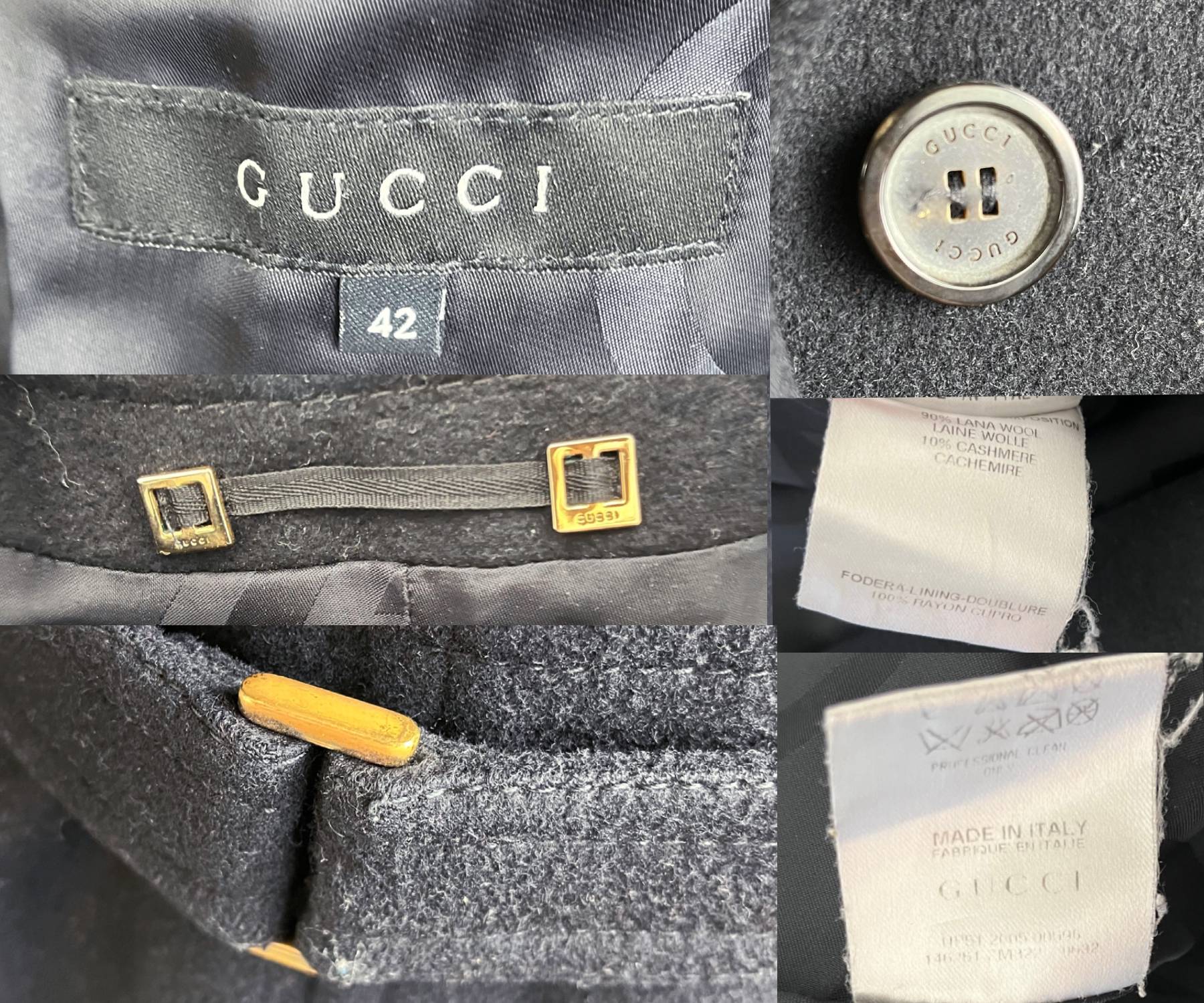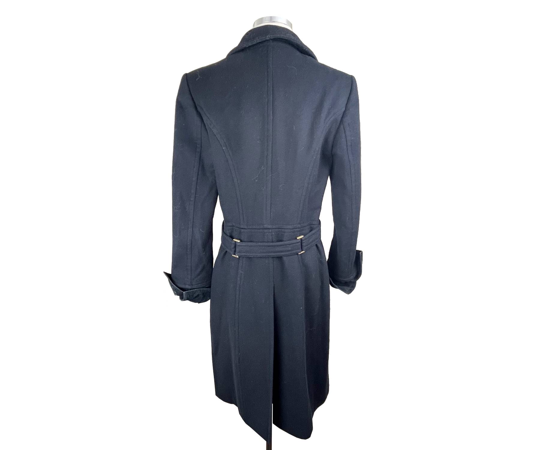 Gucci Black Wool Cashmere Leather Cuff Long Coat