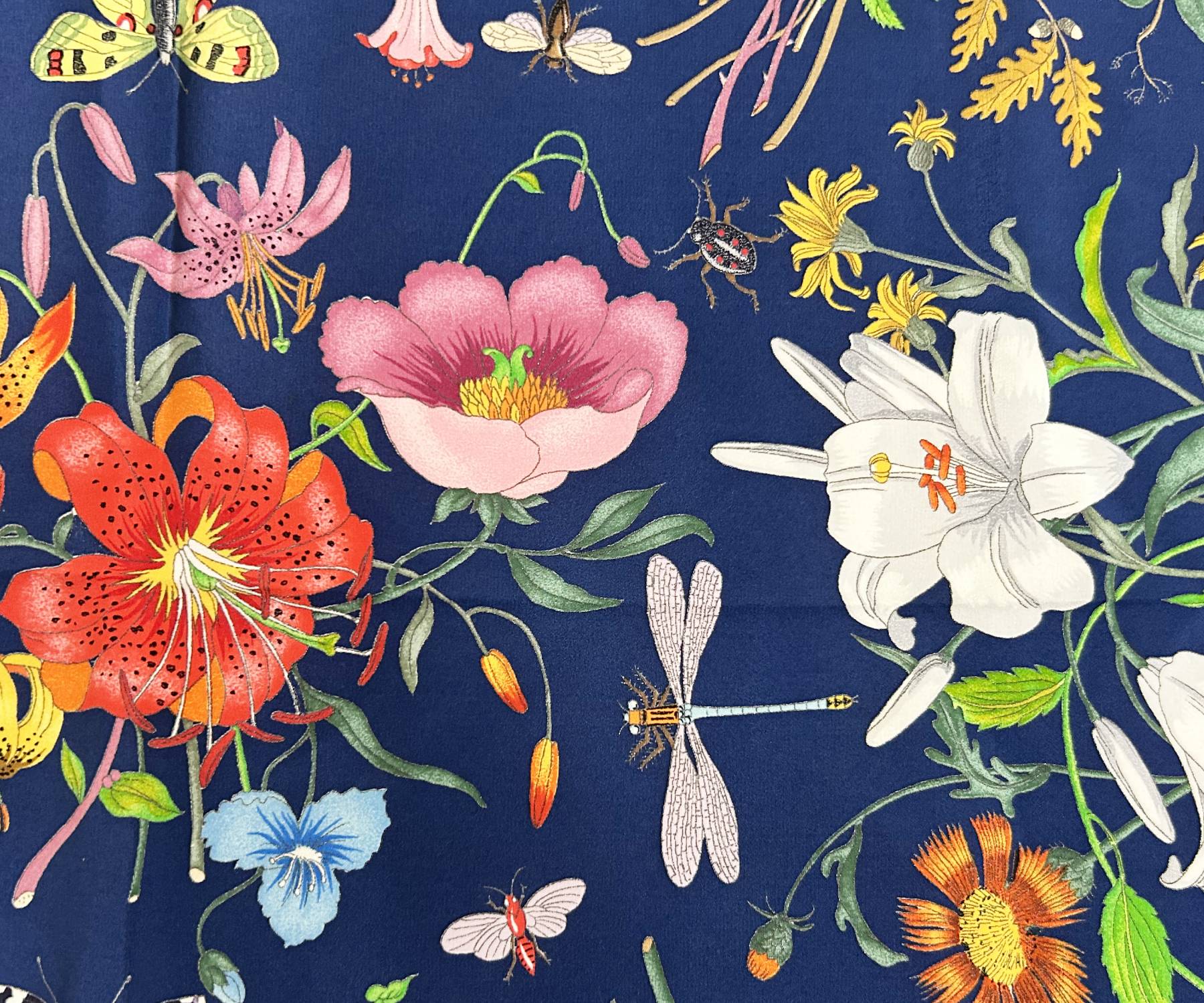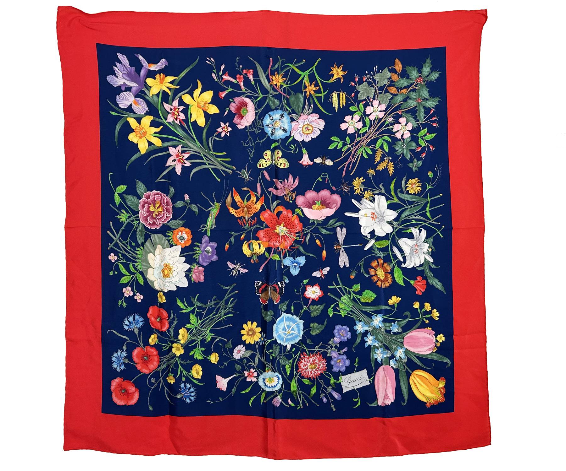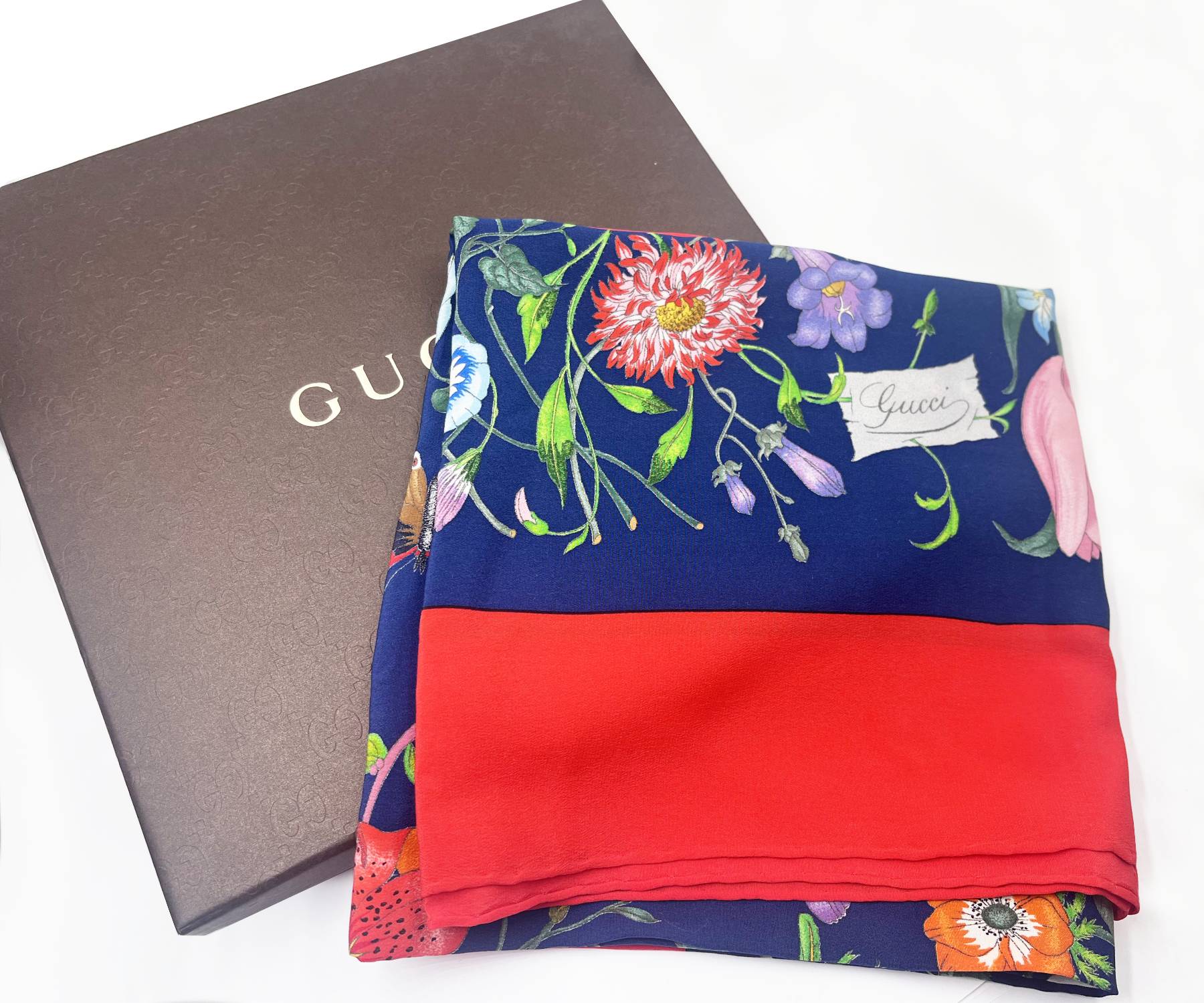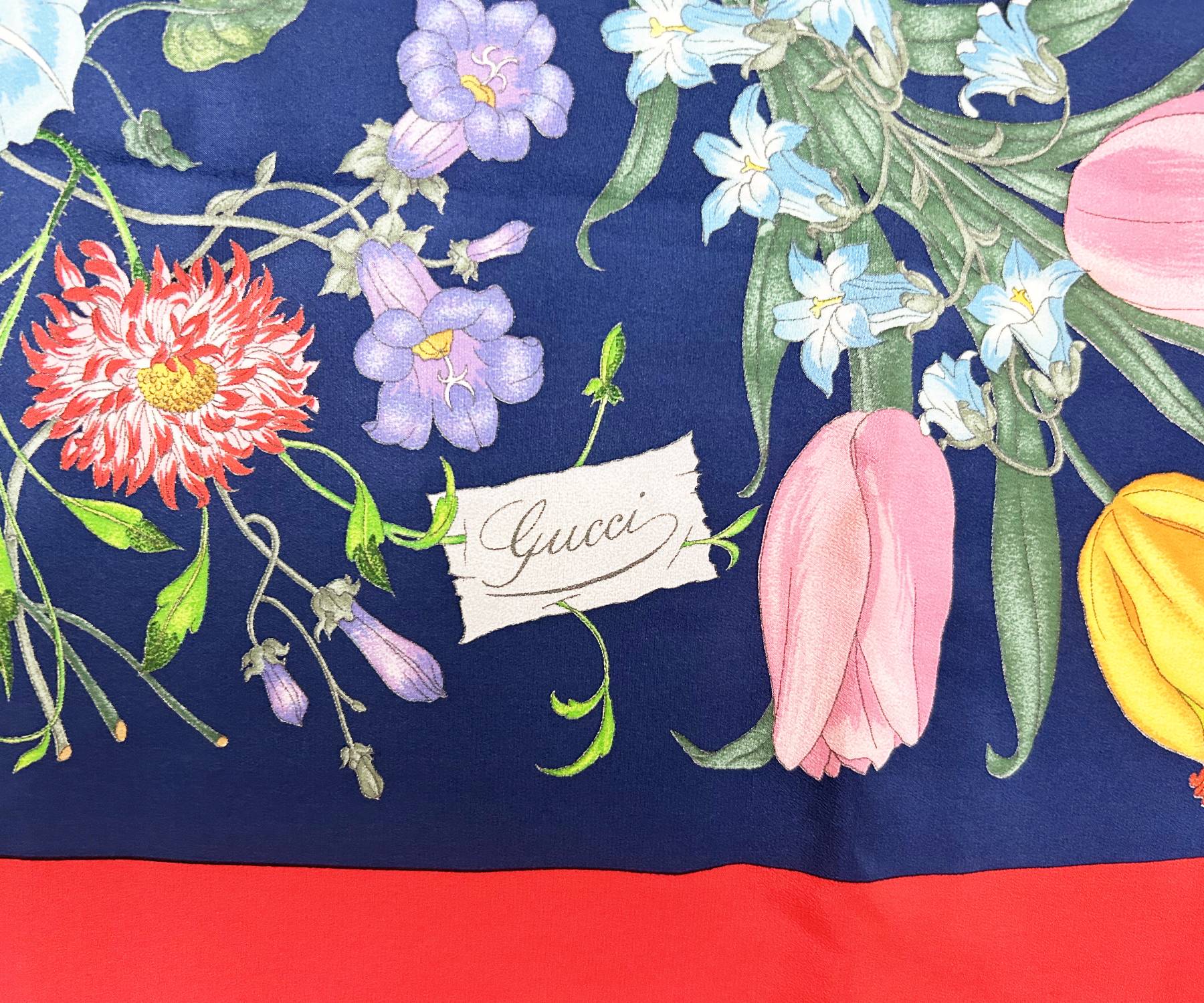 Gucci Red Navy Floral Silk Scarf