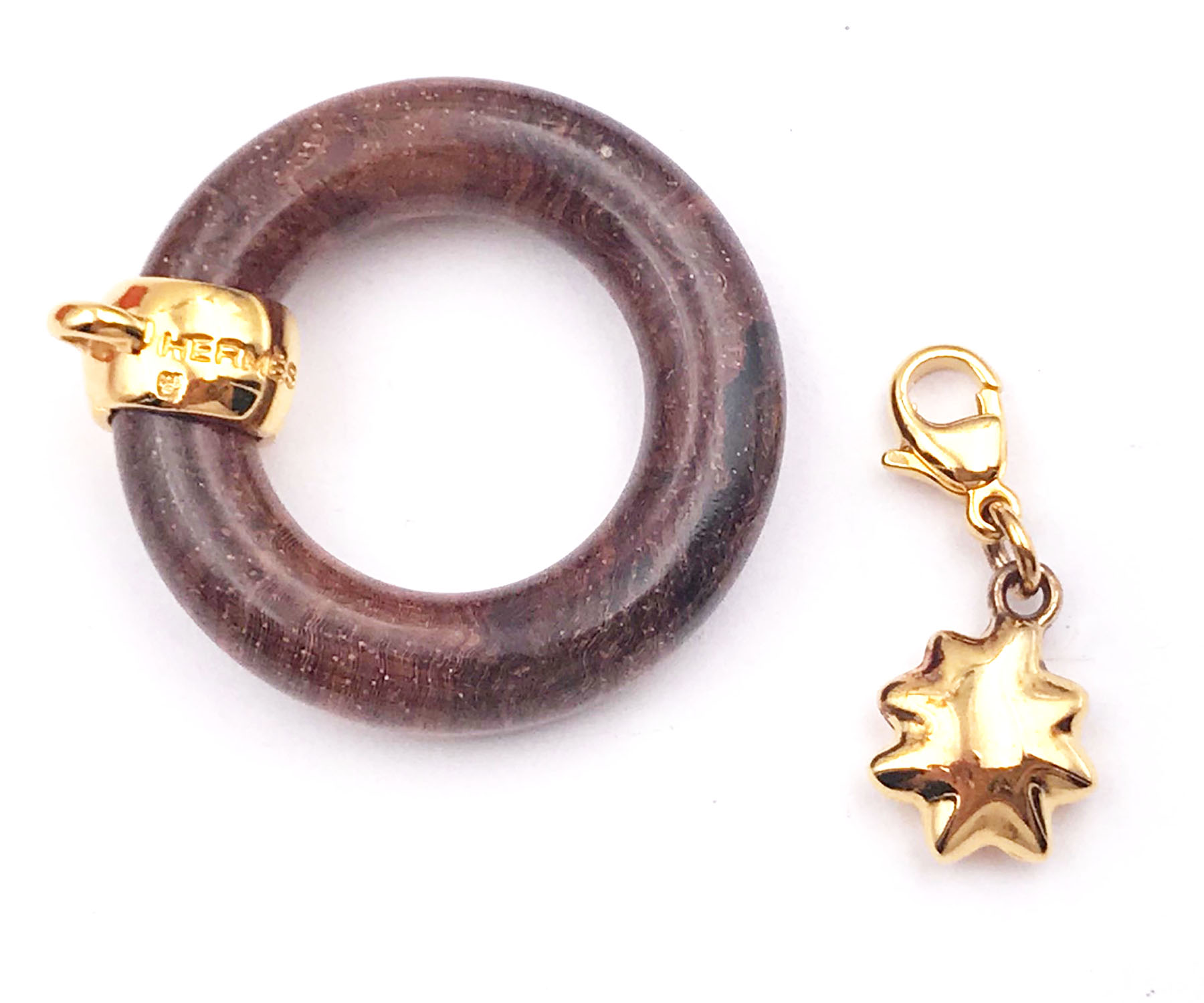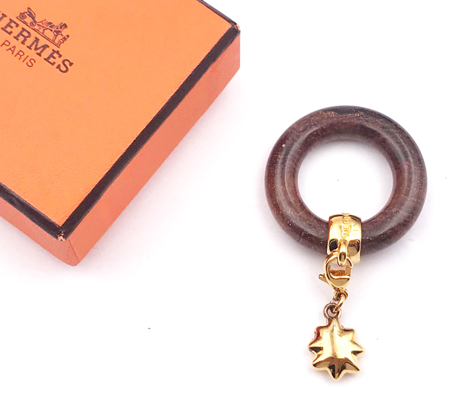 Hermes Gold Removable Dangle Wood Scarf Ring