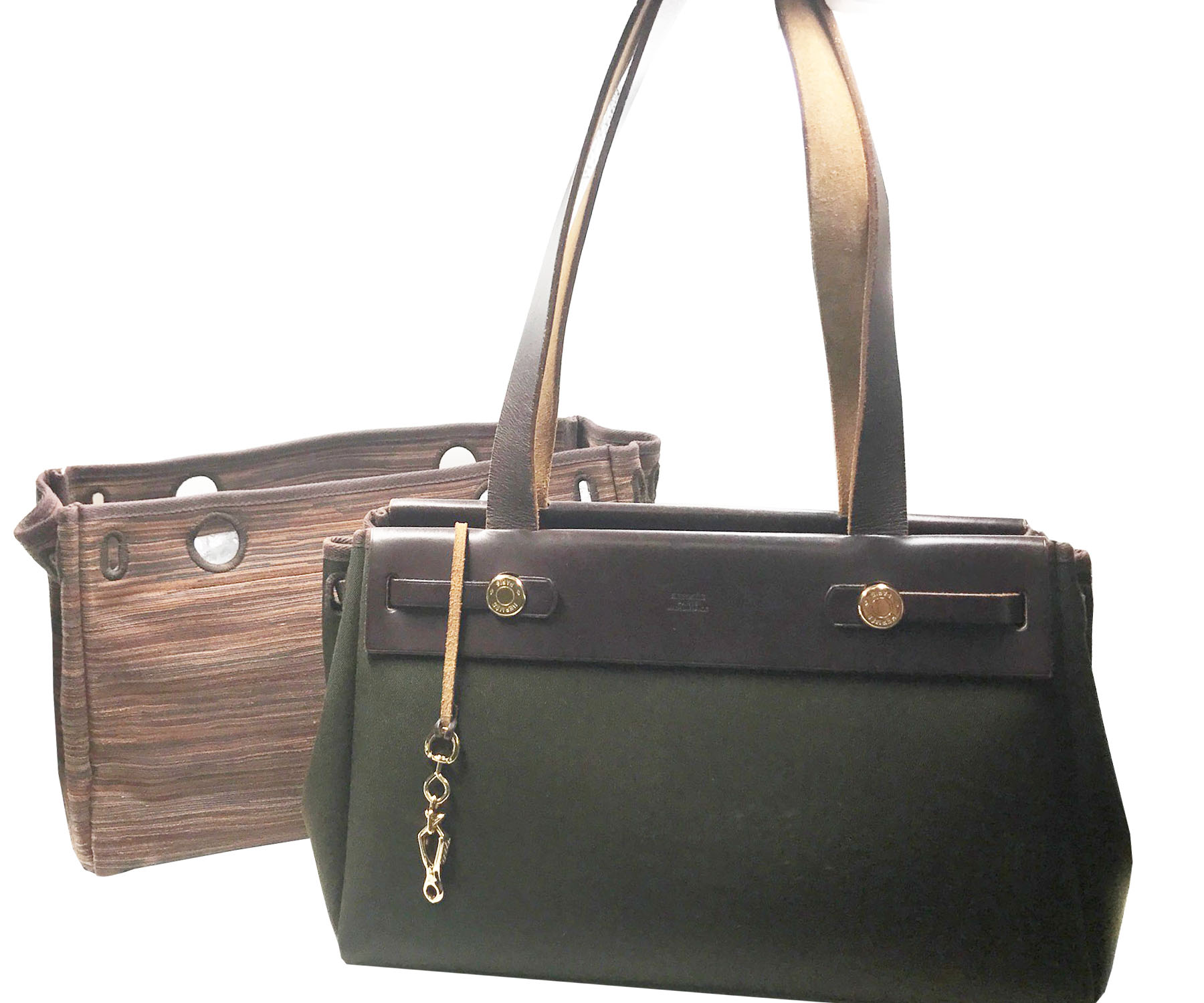 Hermes SUPER RARE Vibrato Leather Olive Her Bag 2 in 1 Shoulder Bag Tote