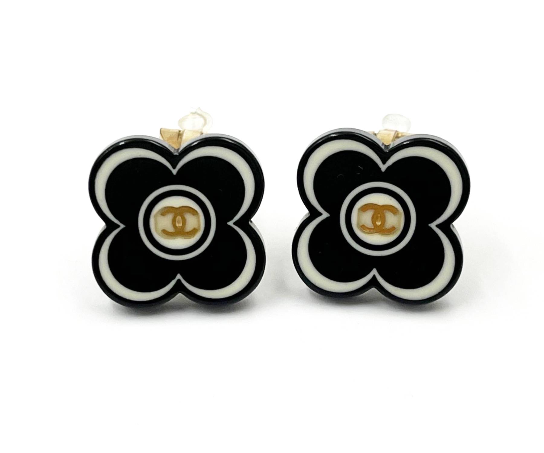 19. Chanel Gold CC Black Resin Flower Clip on Earrings/ 2012-44331