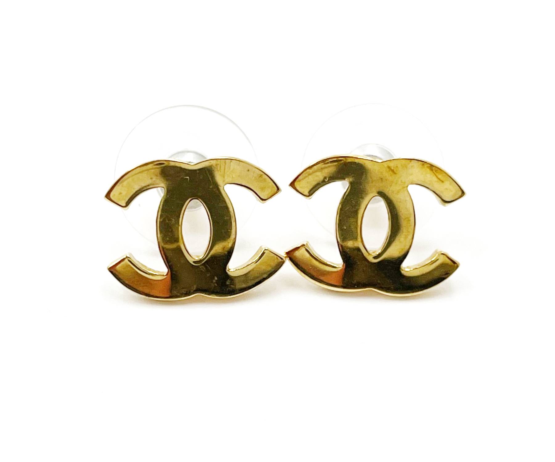 13. Chanel Classic Gold Plated CC Minimal Small Piercing Earrings/ AB2085-00235