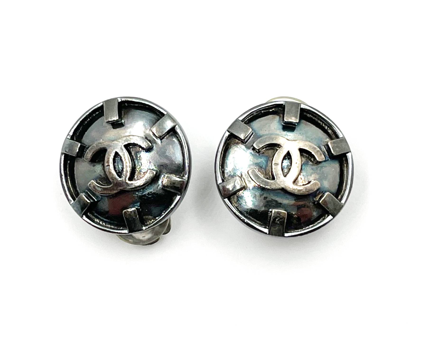 14. Chanel Gunmetal CC Round Clip on Earrings/ AB1985-00236