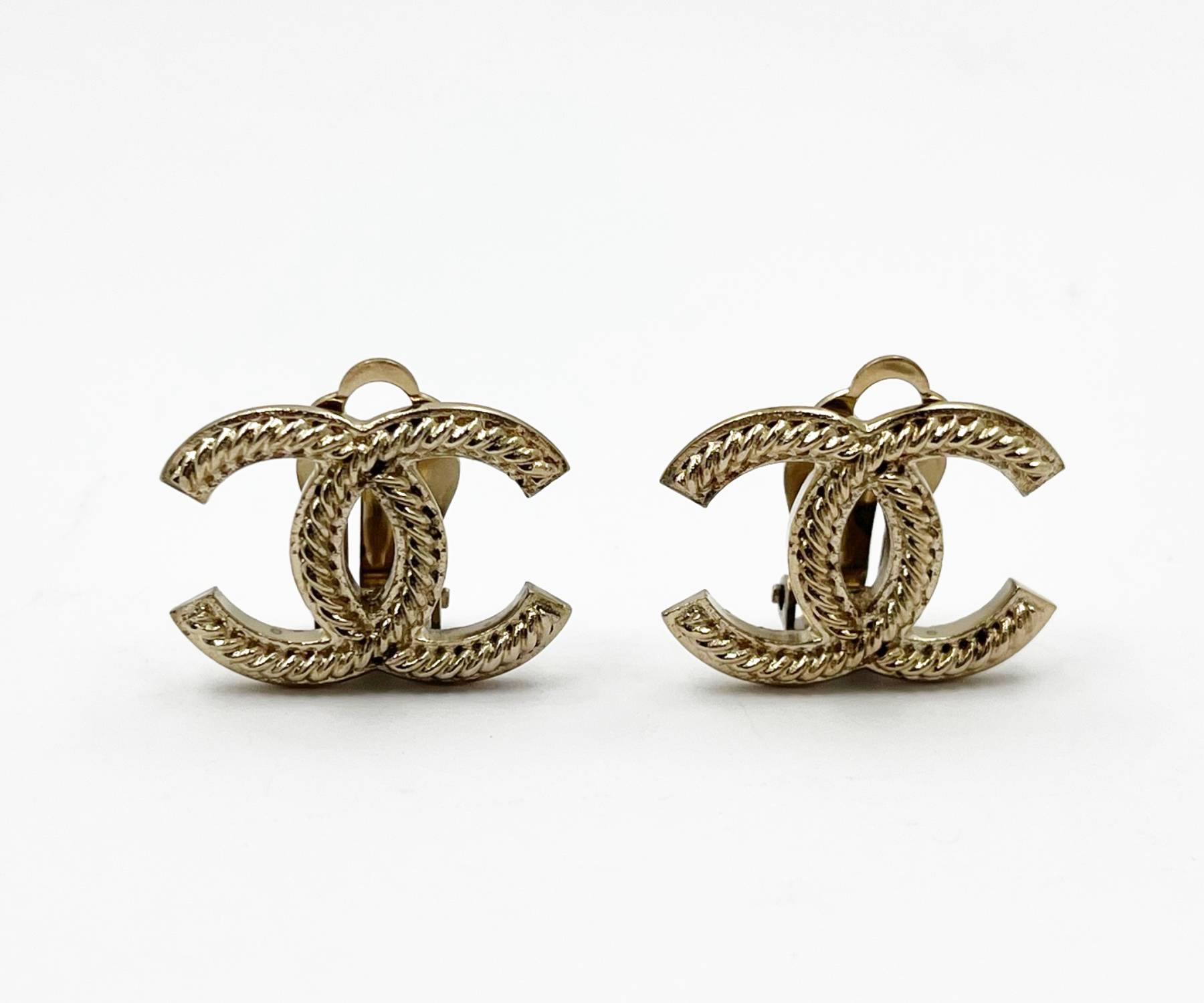 1. Chanel Light Gold Rope Large Clip on Earrings/ AB2113-00227