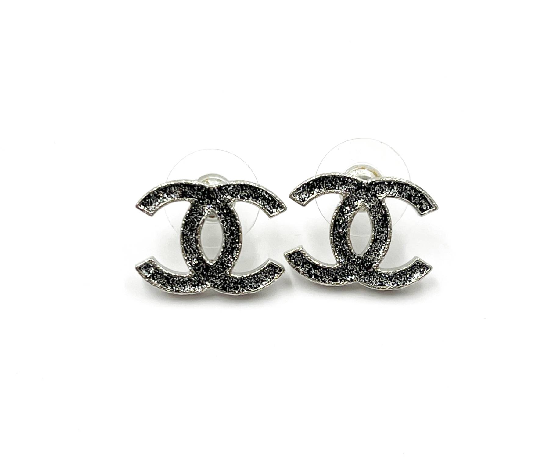 11. Chanel Silver CC Black Glitter Piercing Earrings/ AB8100-00234