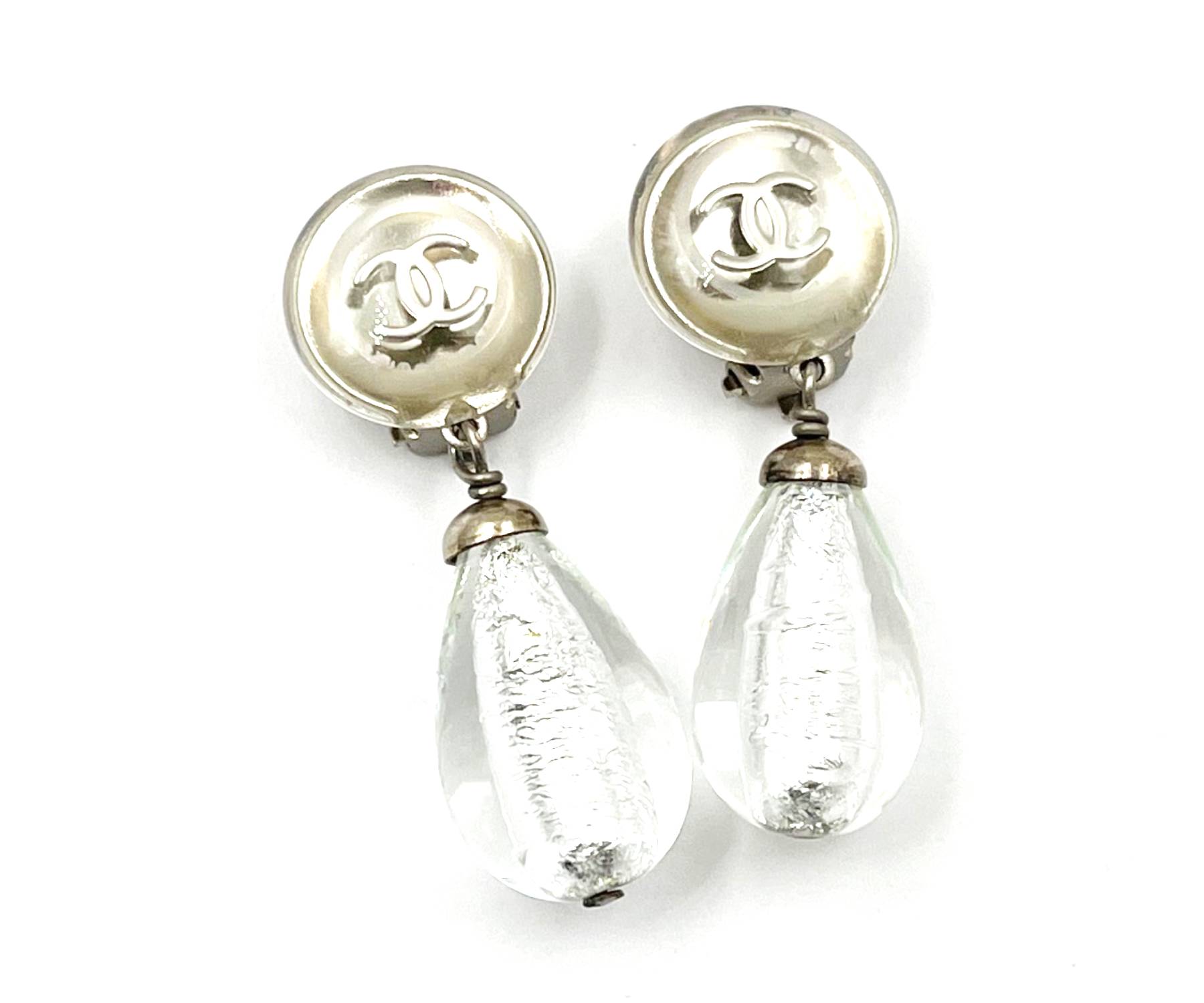 8. Chanel Vintage Silver CC Cloudy Ice Drop Dangle Clip on Earrings/ AB1989-00224