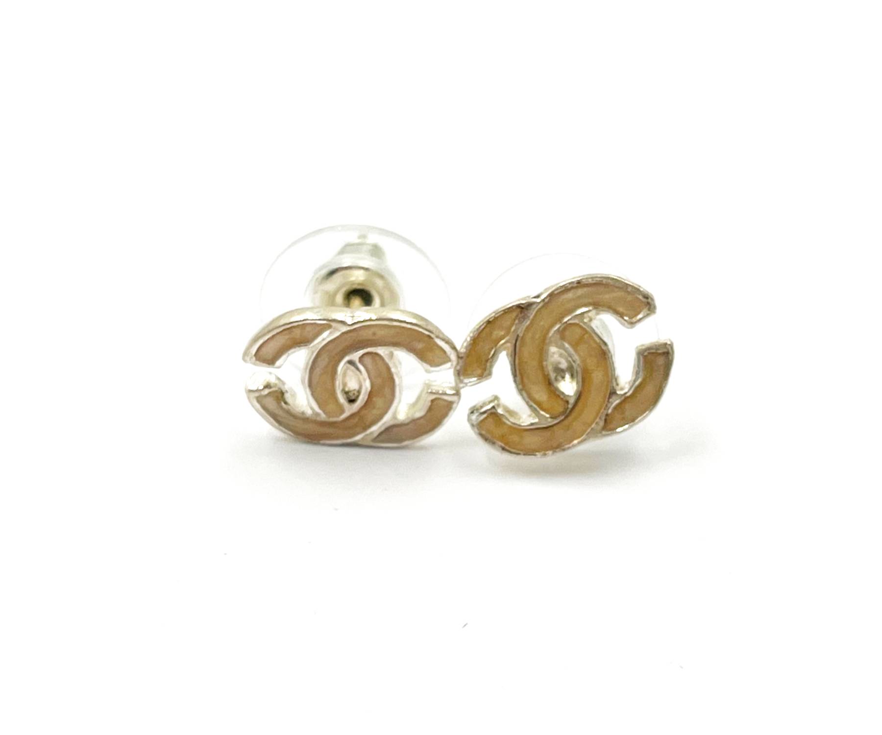 15. Chanel Silver CC Pink Enamel Small Piercing Earrings / 1000-44330
