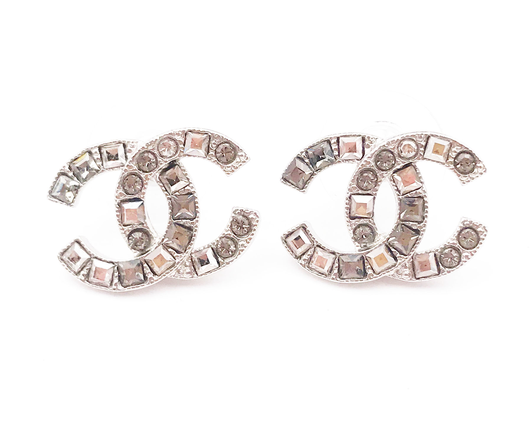 3. Chanel Silver CC Rim Crystal Clip on Earrings/ AB2142-00228