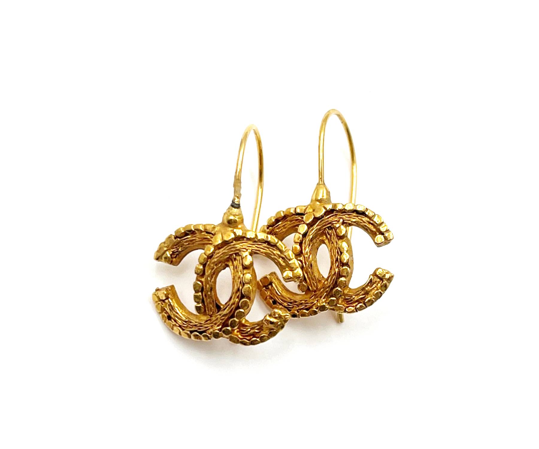 7. Chanel Vintage Gold Plated CC Plaid Hoop Earrings / AB1060-00231