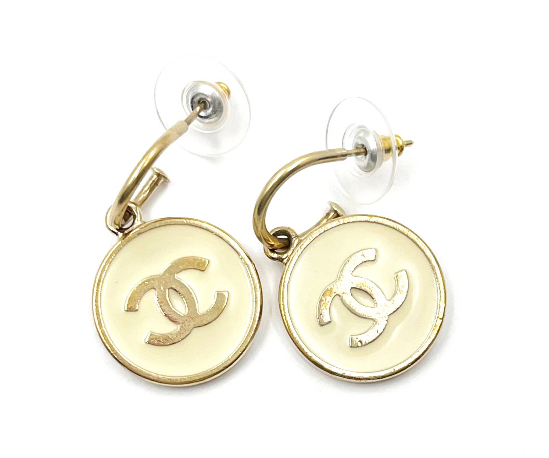 20. Chanel Vintage Gold Plated CC Ivory Round Coin Hoop Earrings/ AB1087-00239
