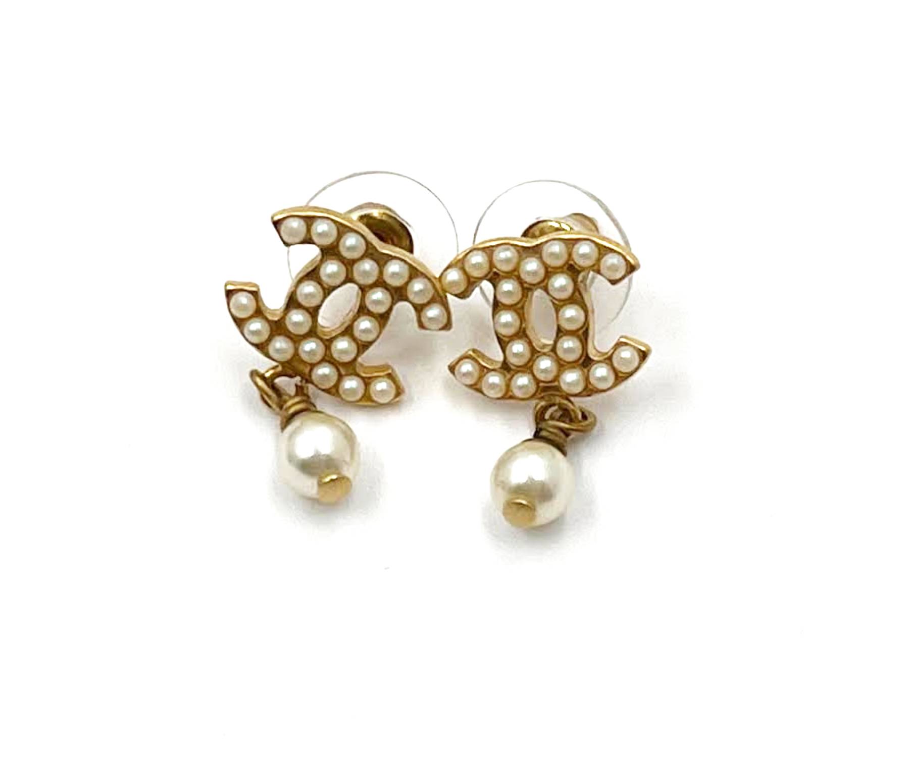 18. Chanel Vintage Gold Plated CC Pearl Tear Drop Pearl Clip on Earrings/ AB2963-00238