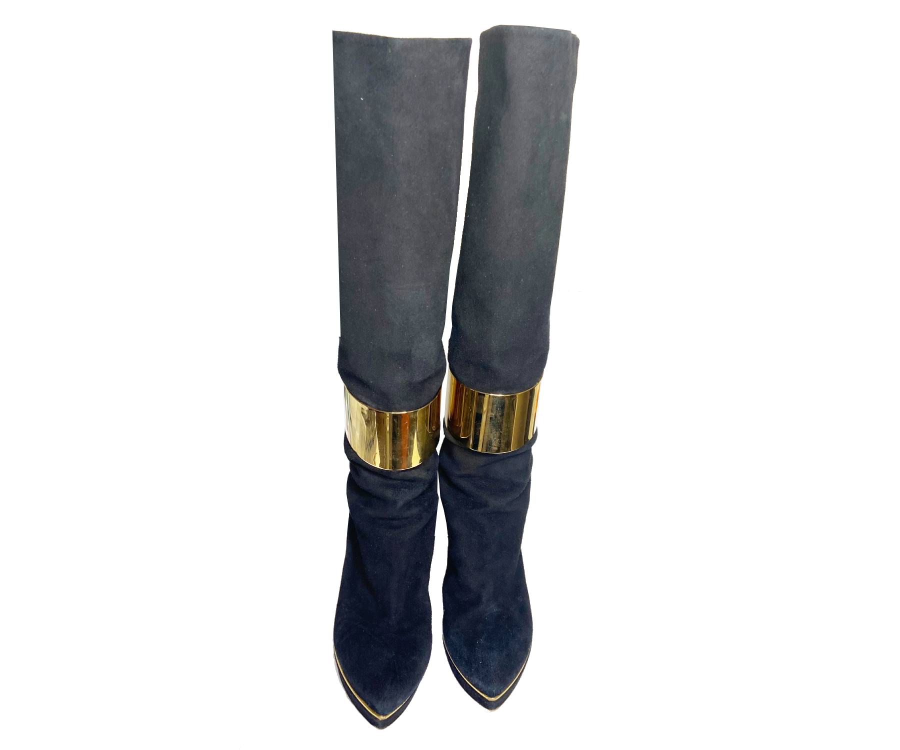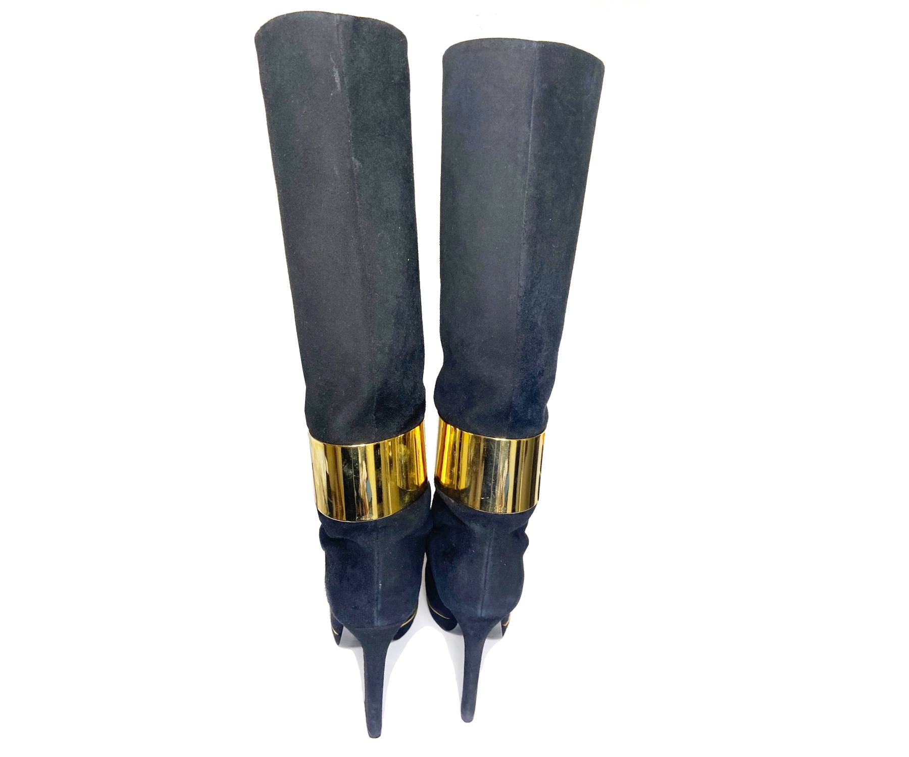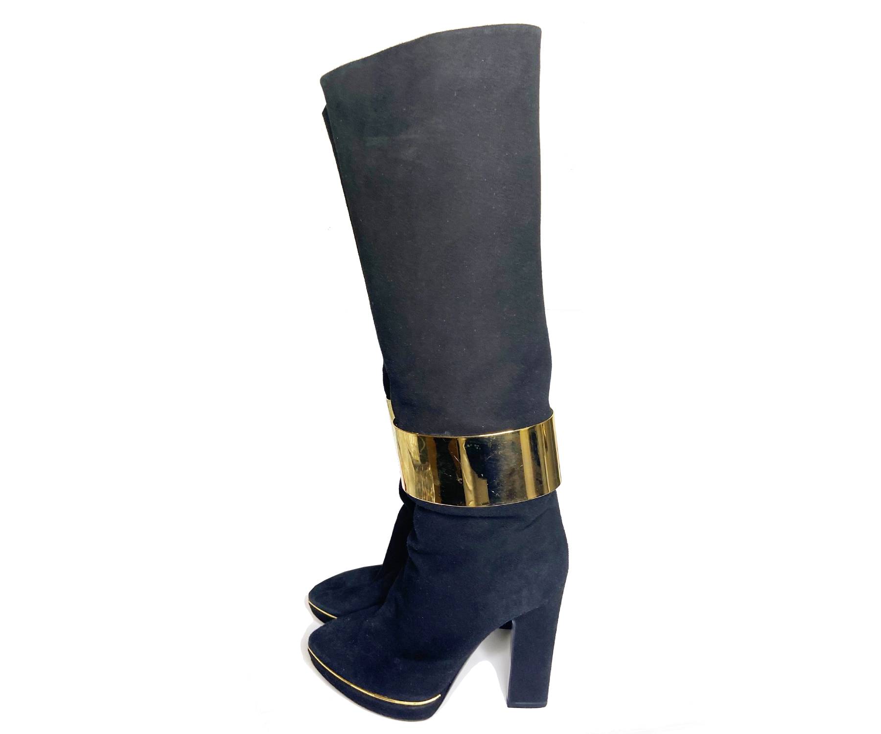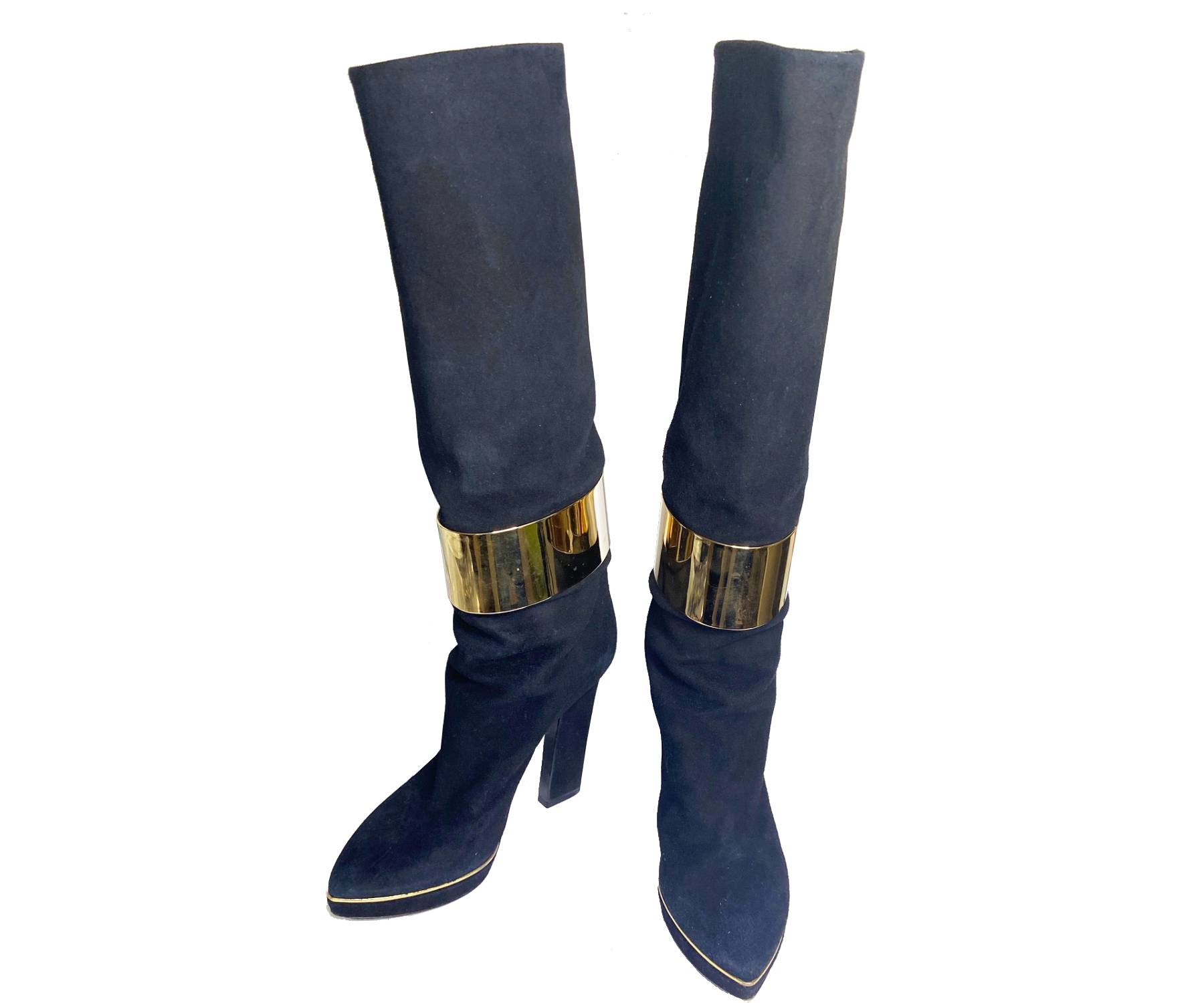 Sergio Rossi Gold Band Black Leather long Boots