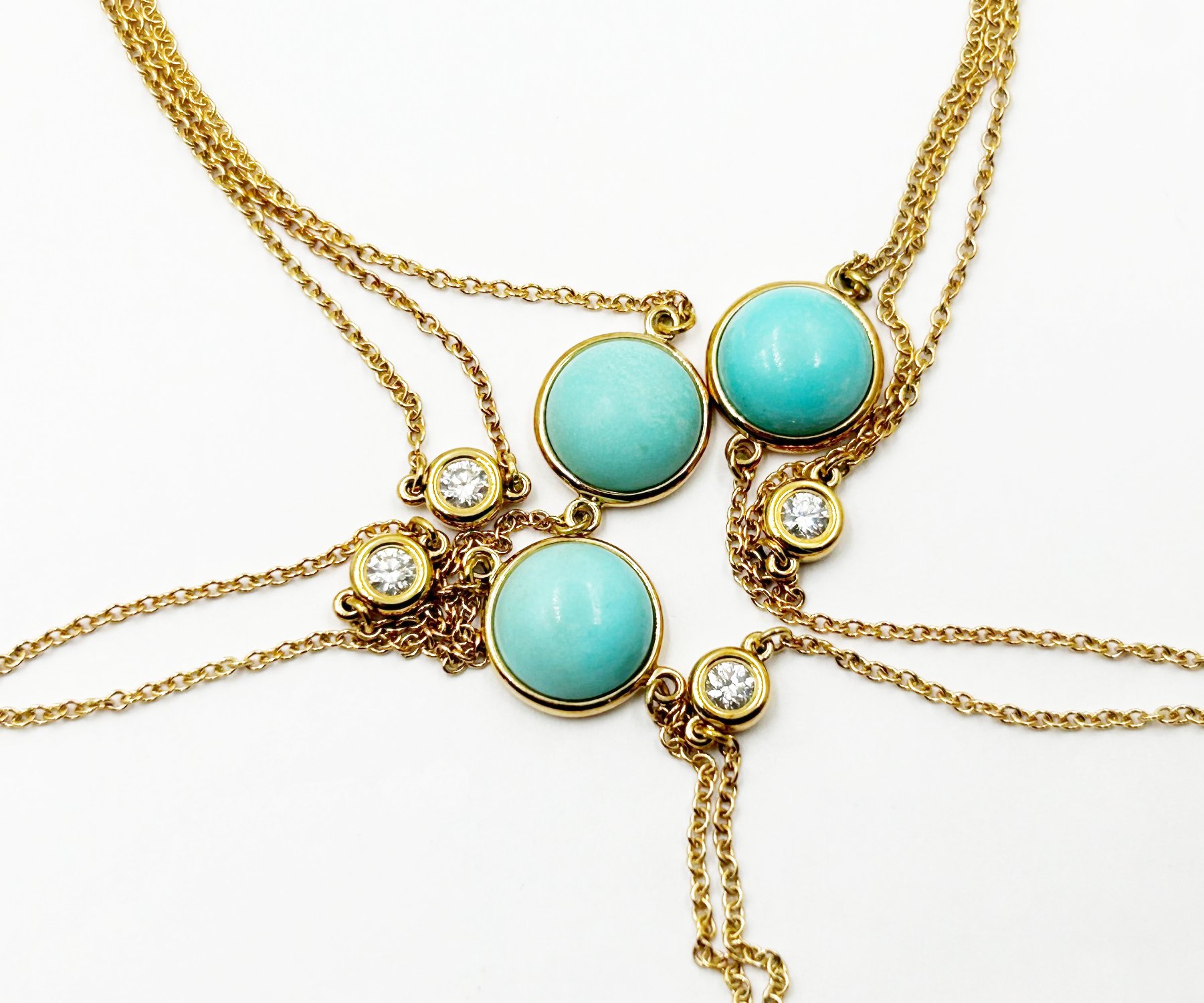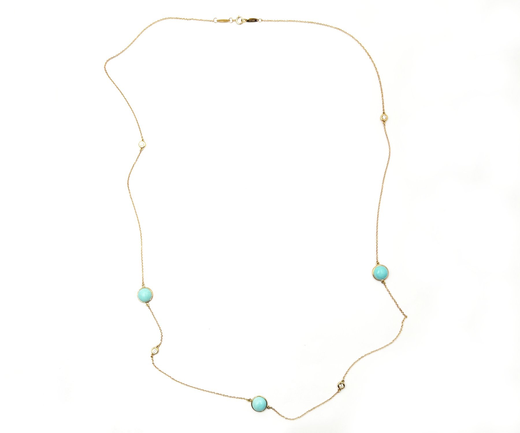Tiffany &Co Color by the Yard Sprinkle Turquoise Diamond 750 Solid Gold Long Necklace