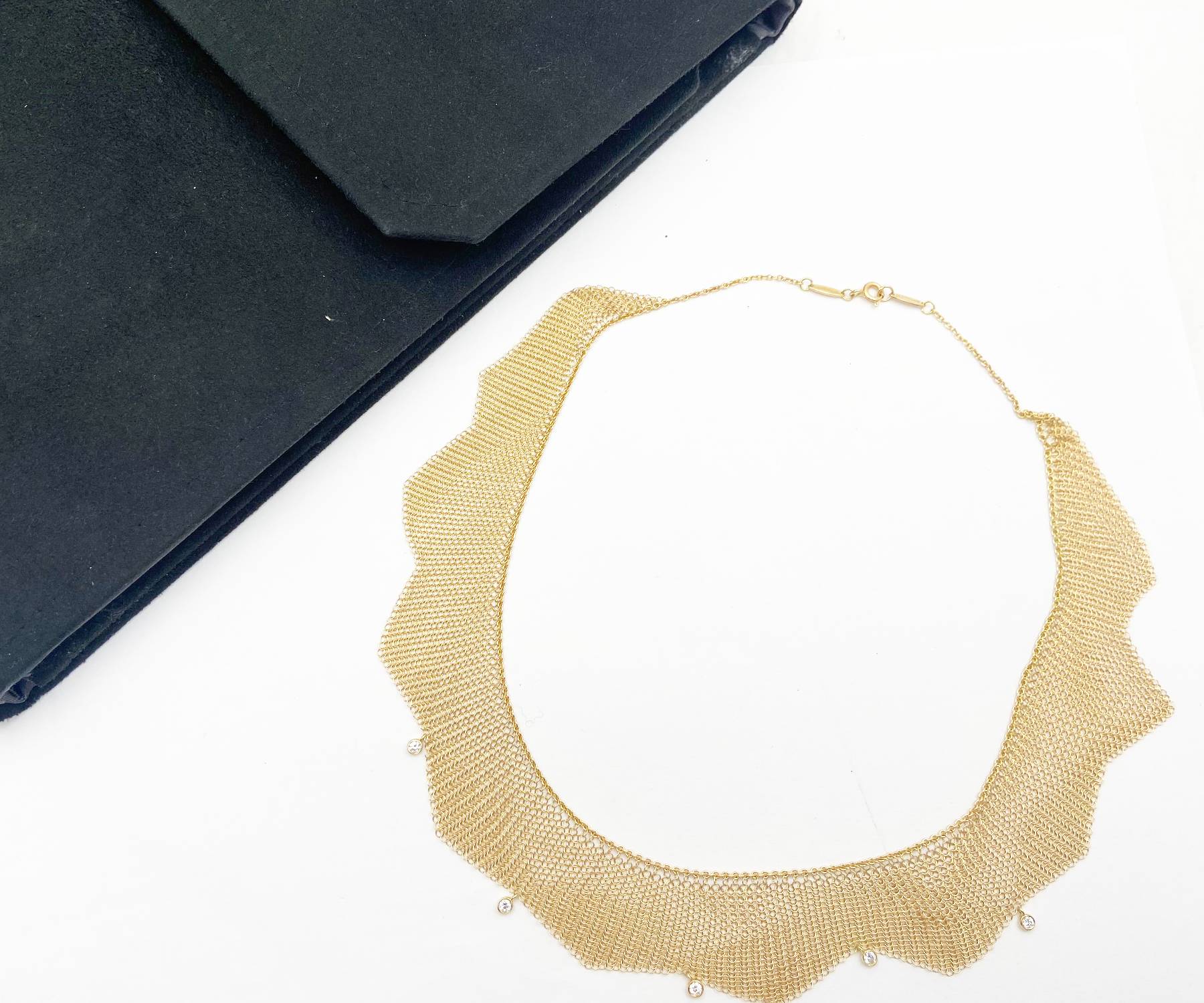 Tiffany & Co Elsa Peretti 18k 750 Gold Mesh Diamond Necklace