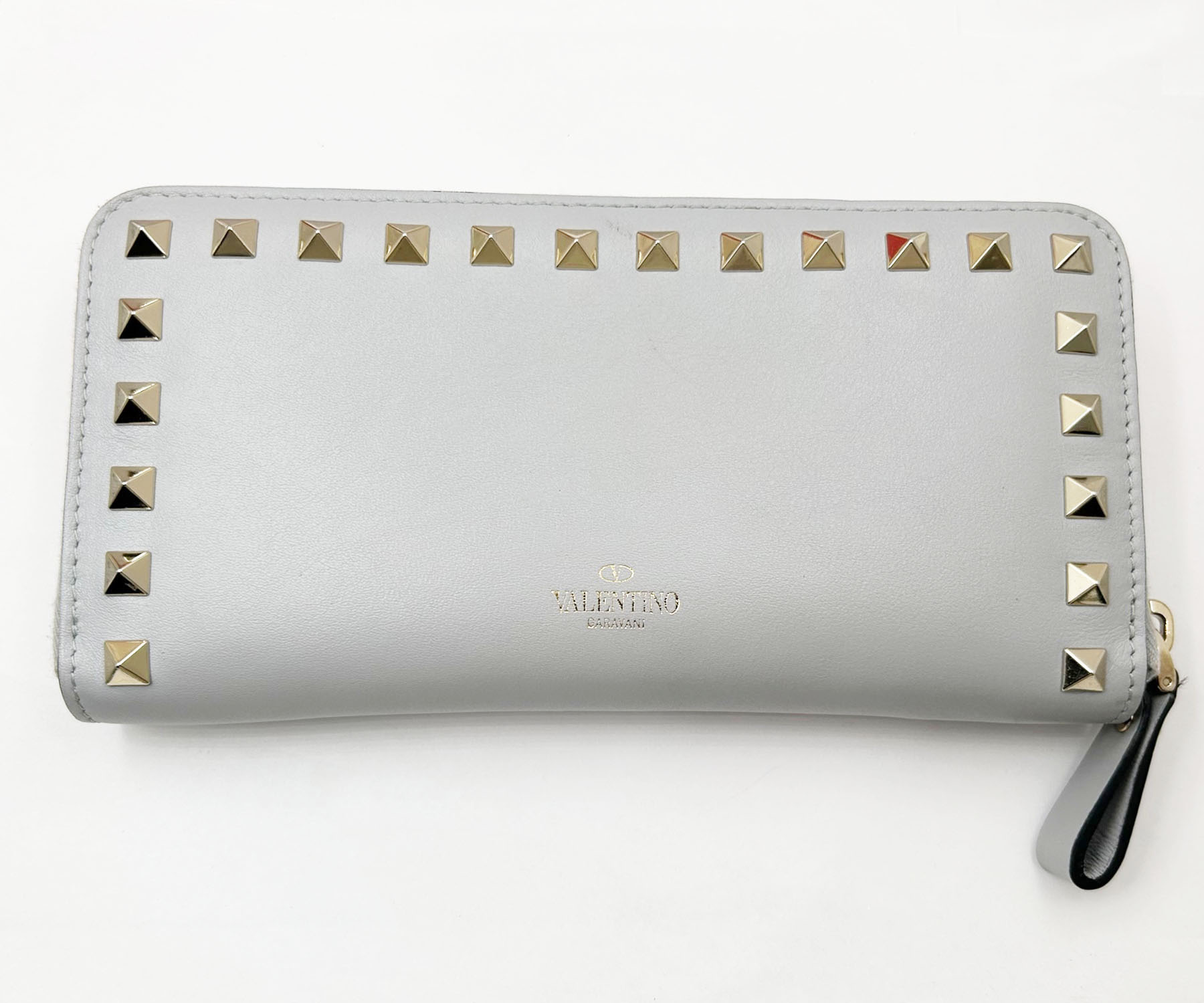 Valentino Brand New Grey Continental Rockstud Zipped Long Wallet